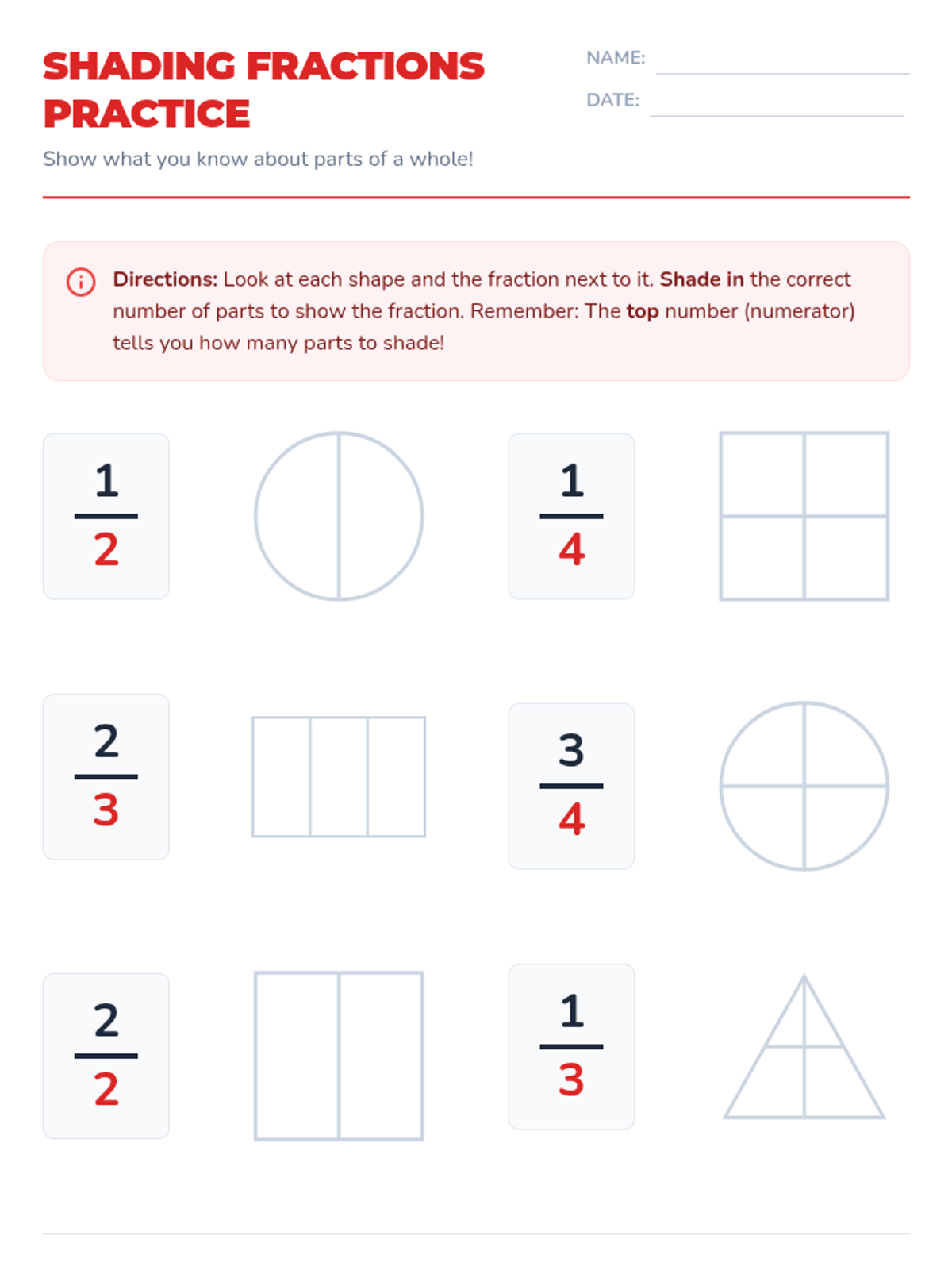 A first-grade lesson focused on partitioning shapes and identifying equal parts as halves and fourths (quarters). Students will practice shading partitioned shapes and completing descriptive sentences using fraction vocabulary.