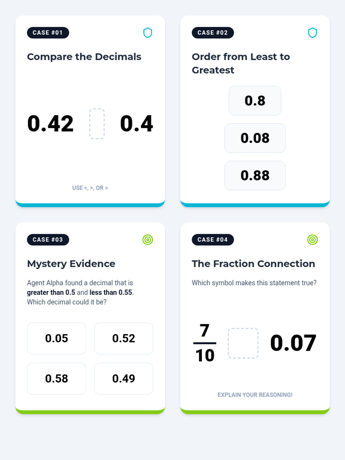 Students explore decimals to the hundredths place, visualizing them on number lines and comparing values while investigating their relationship to fractions.