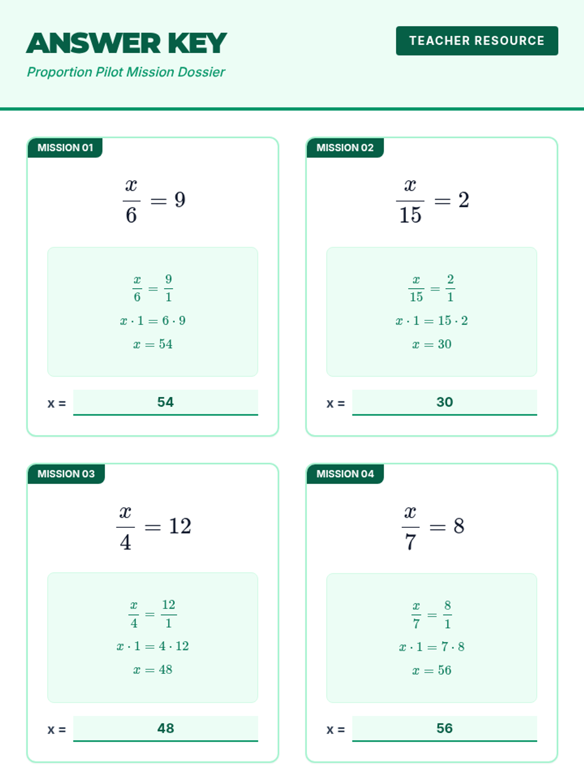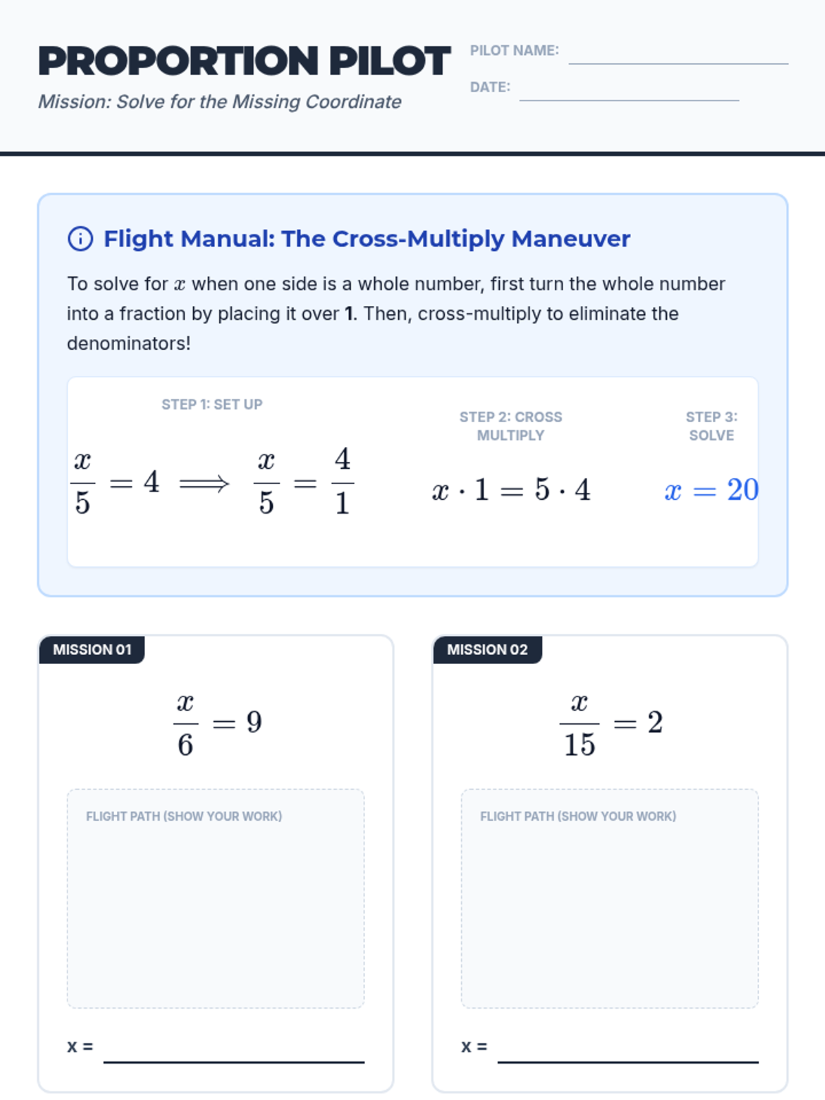 A focused lesson on using cross-multiplication to solve algebraic proportions where one side is a whole number.