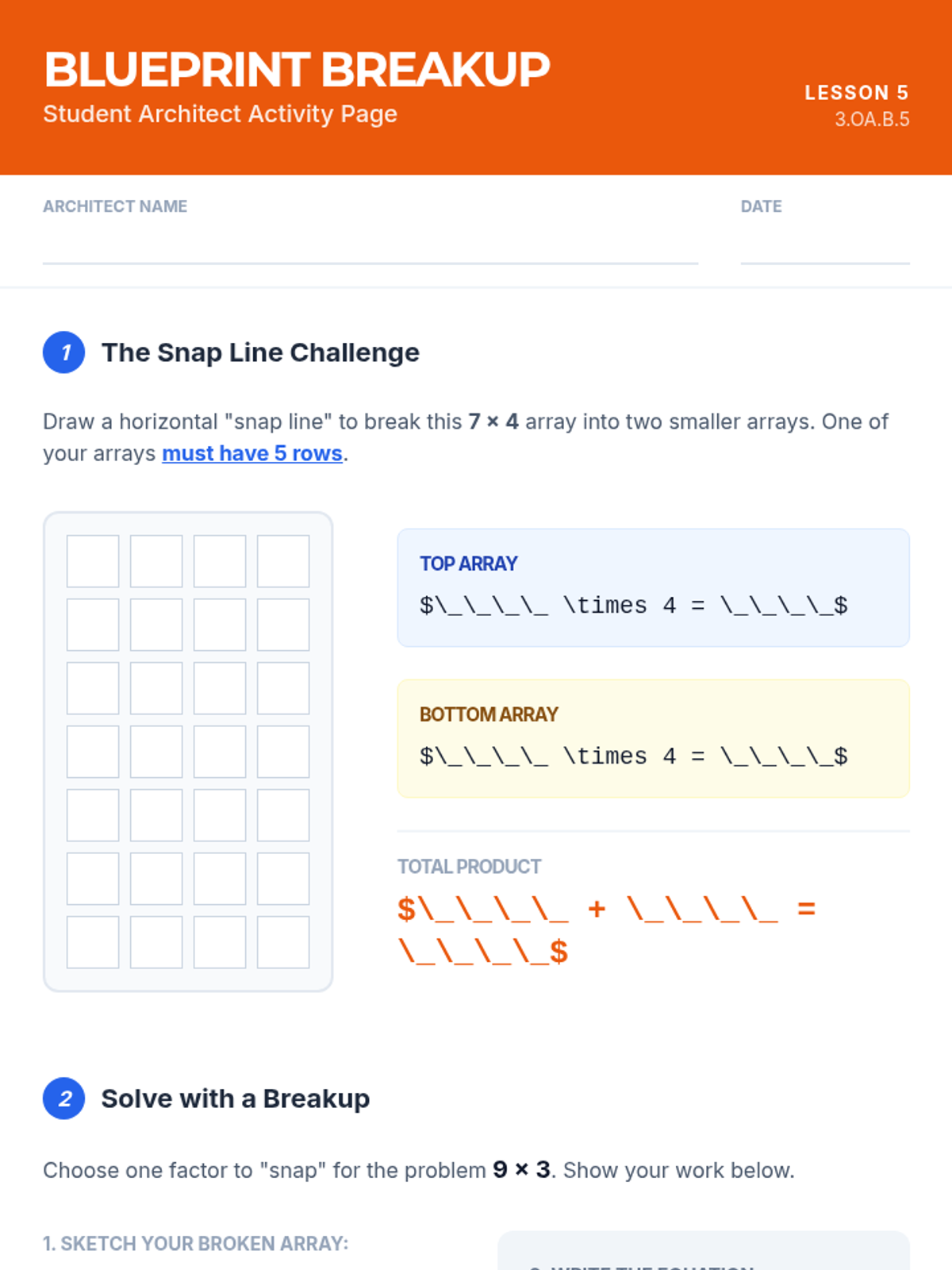 Using area models to visually break apart complex arrays into two smaller, easier-to-manage arrays.