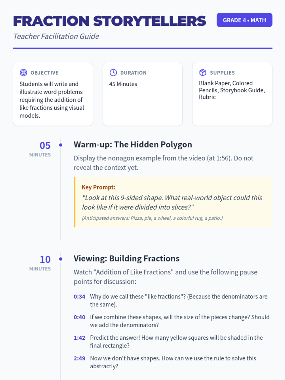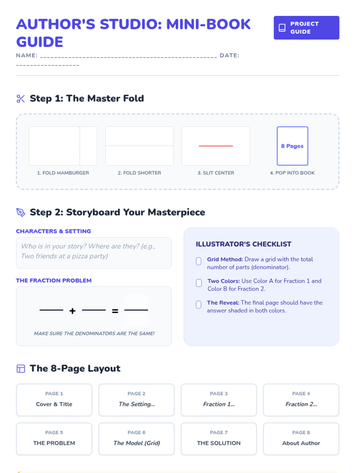 Students become authors and illustrators as they create mini-storybooks featuring real-world word problems that require adding fractions with like denominators. The lesson uses visual models to bridge the gap between concrete shapes and abstract addition.