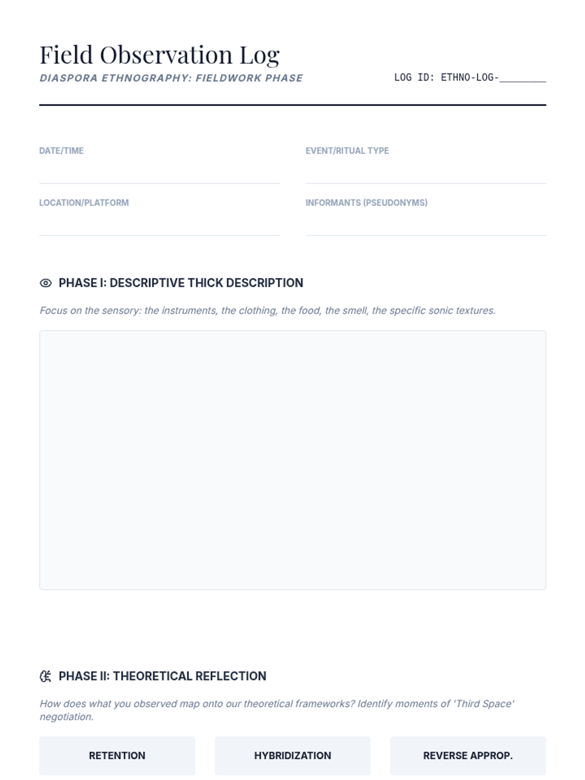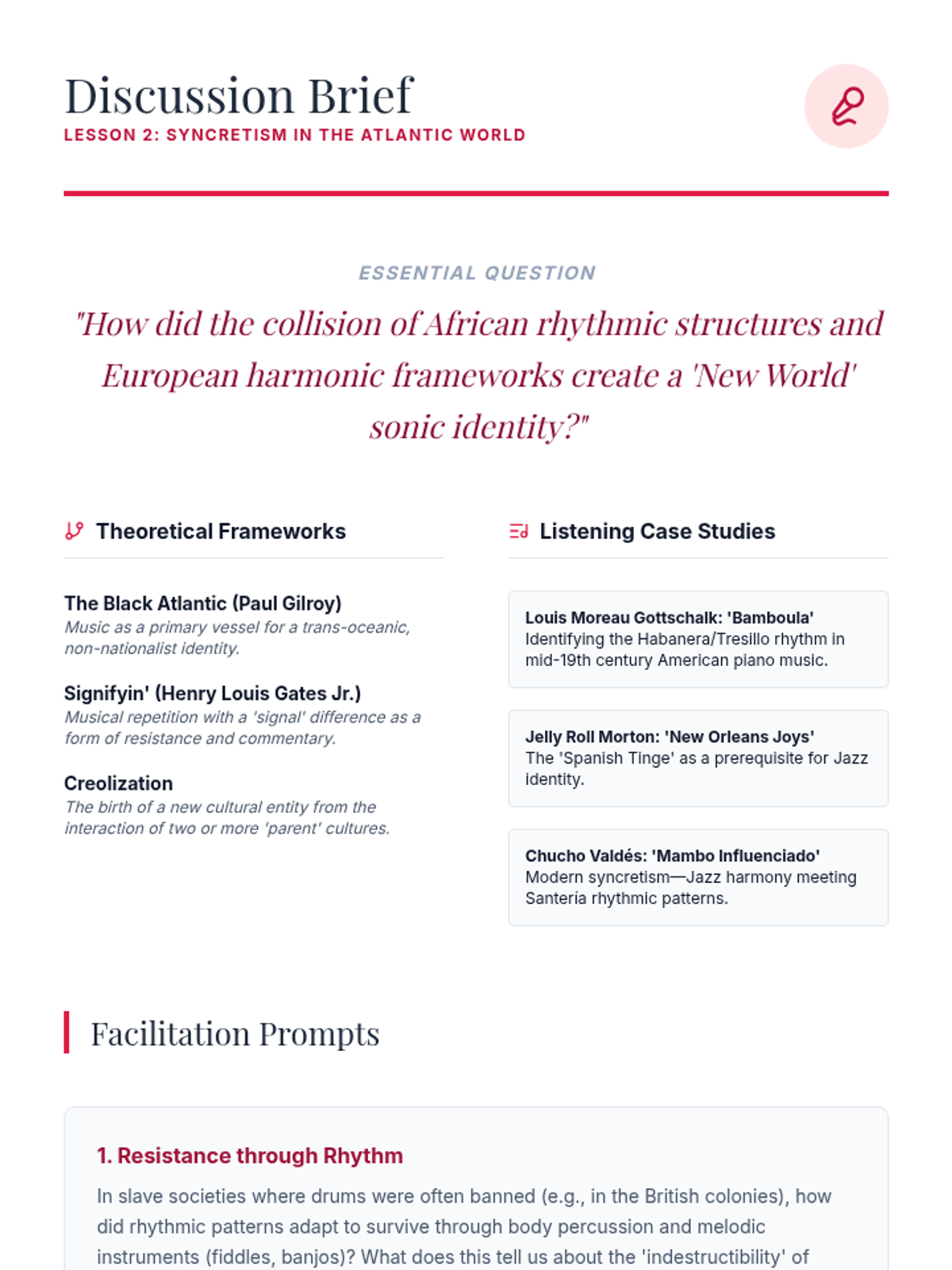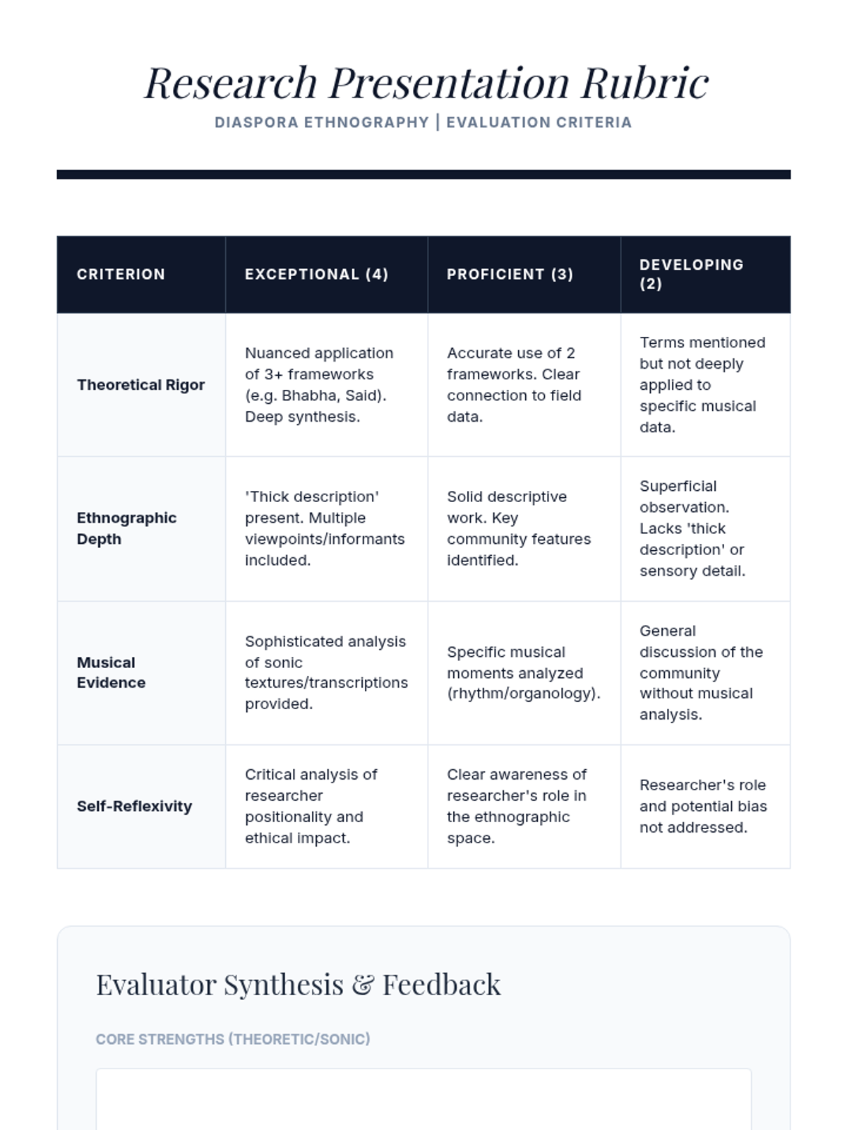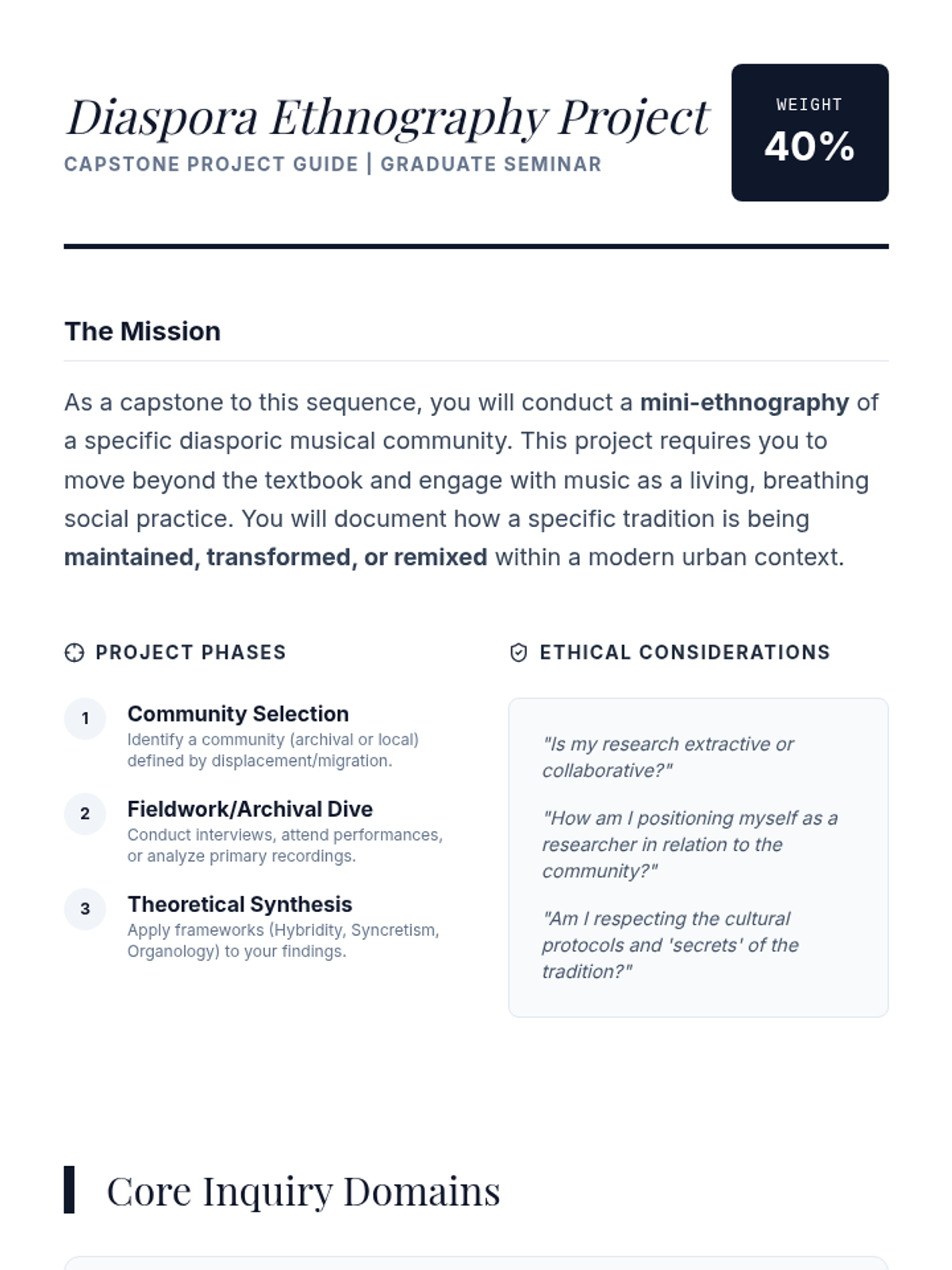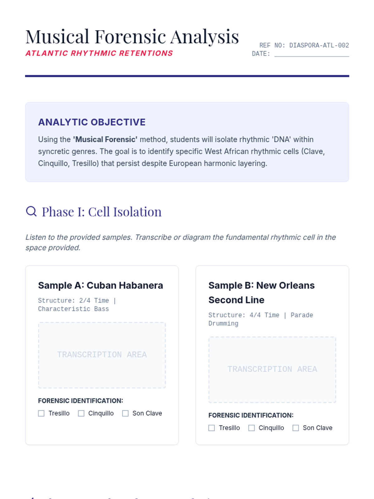 A project-based lesson where students design and conduct a mini-ethnography of a diasporic musical community, synthesizing theoretical frameworks into a research presentation.