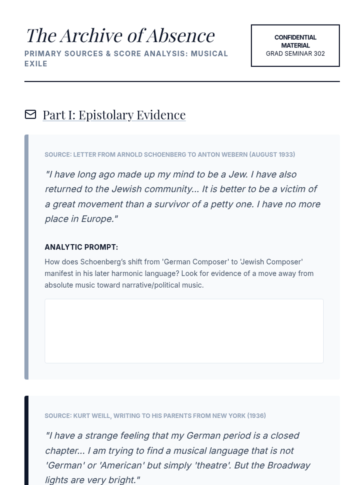 Investigating the impact of political displacement on 20th-century composers, examining how exile and the search for 'homeland' manifest in musical style and creative output.
