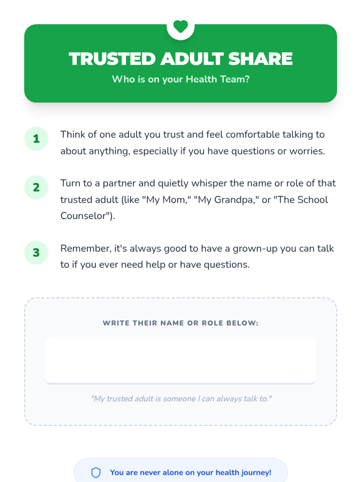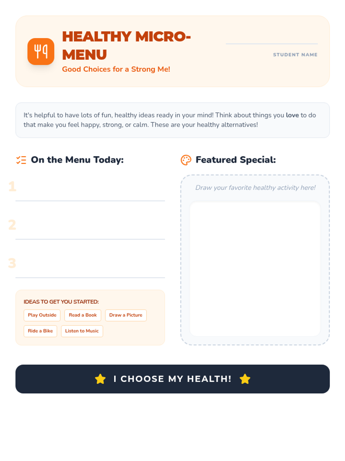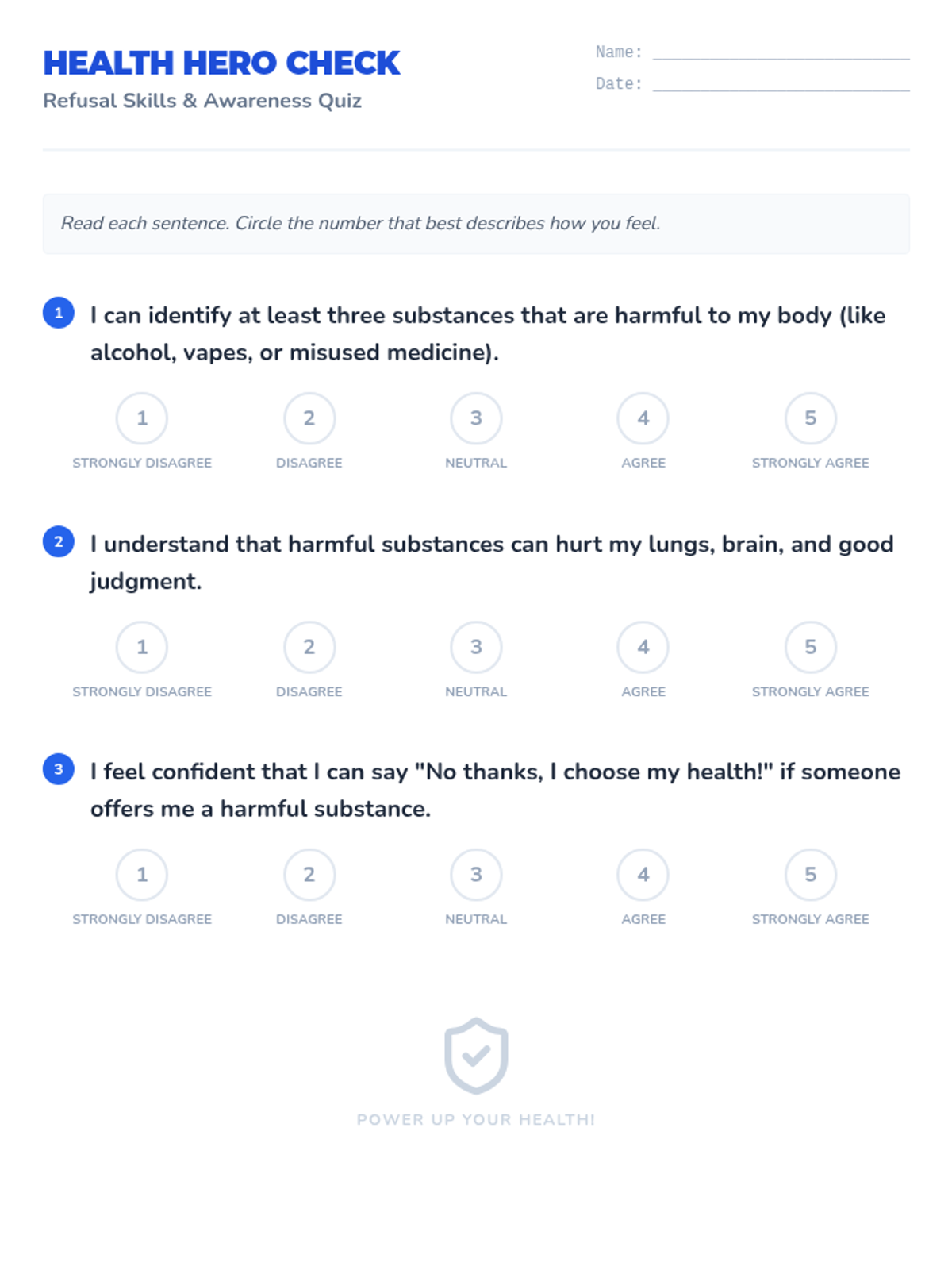 A fast-paced, one-minute micro-lesson designed for 3rd graders to identify harmful substances, practice refusal skills, and choose healthy alternatives. Students build confidence through choral practice and peer sharing.
