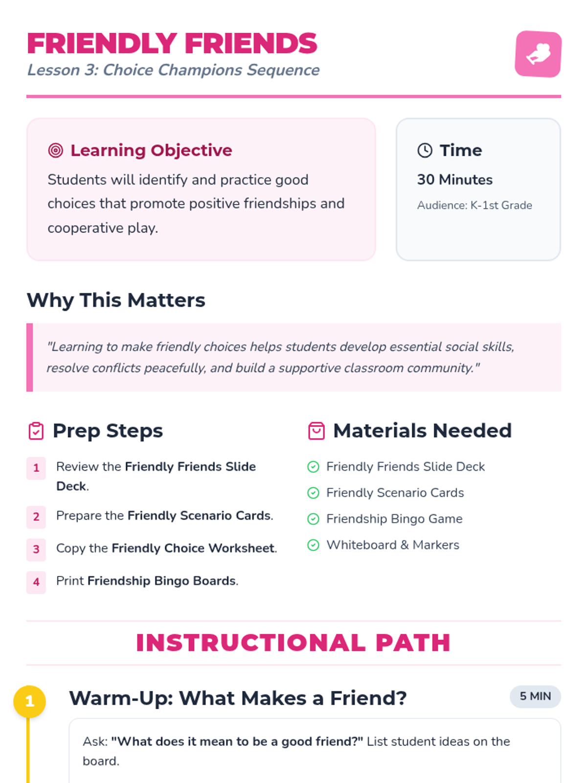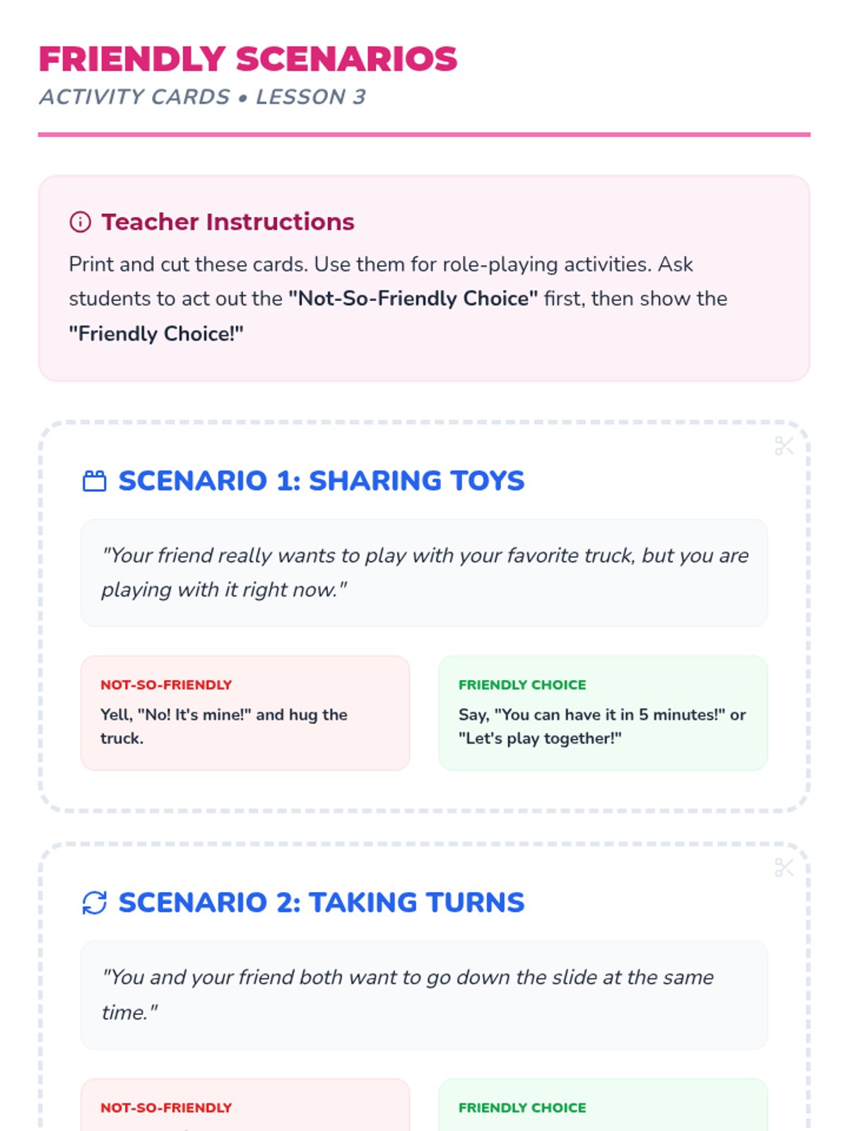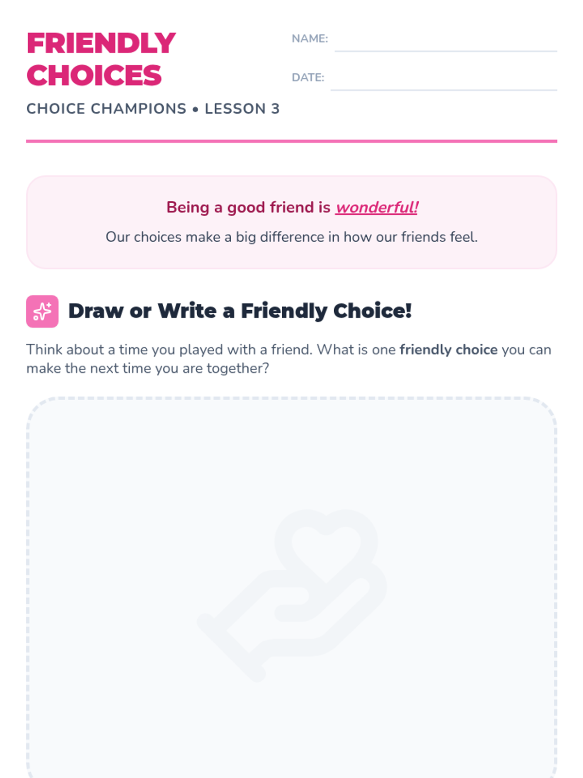 Students will identify and practice good choices that promote positive friendships and cooperative play.
