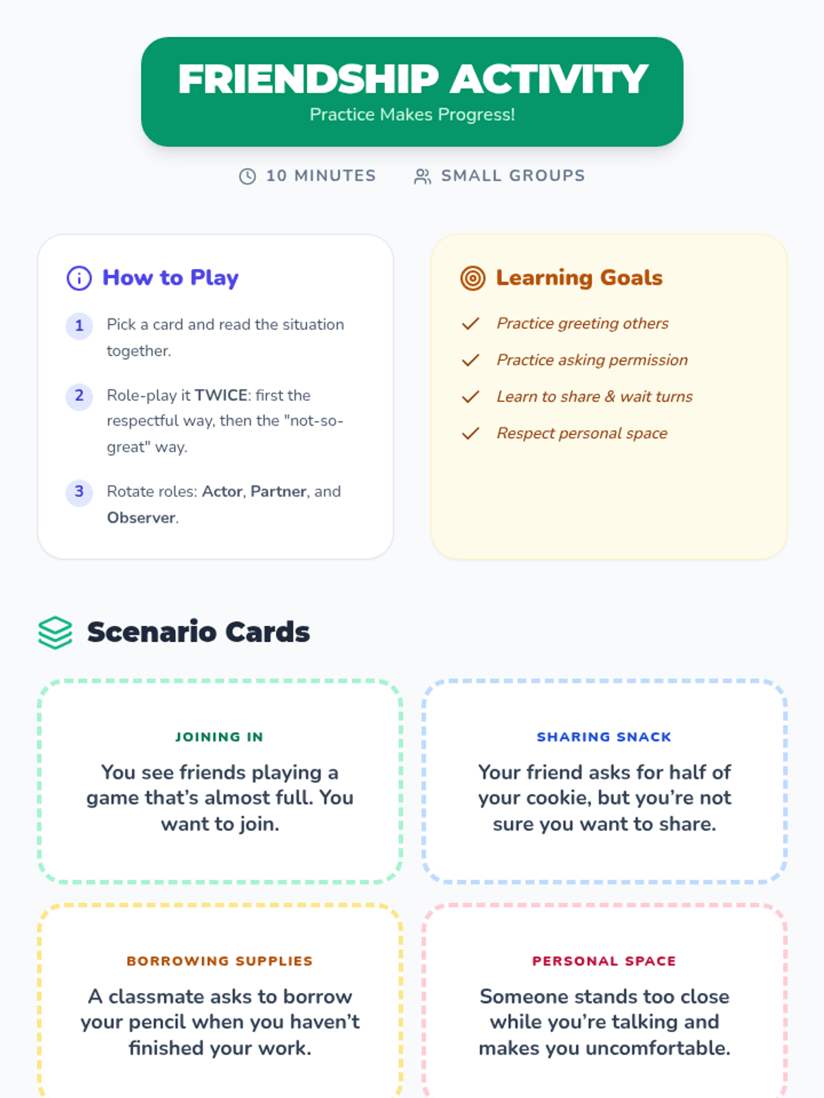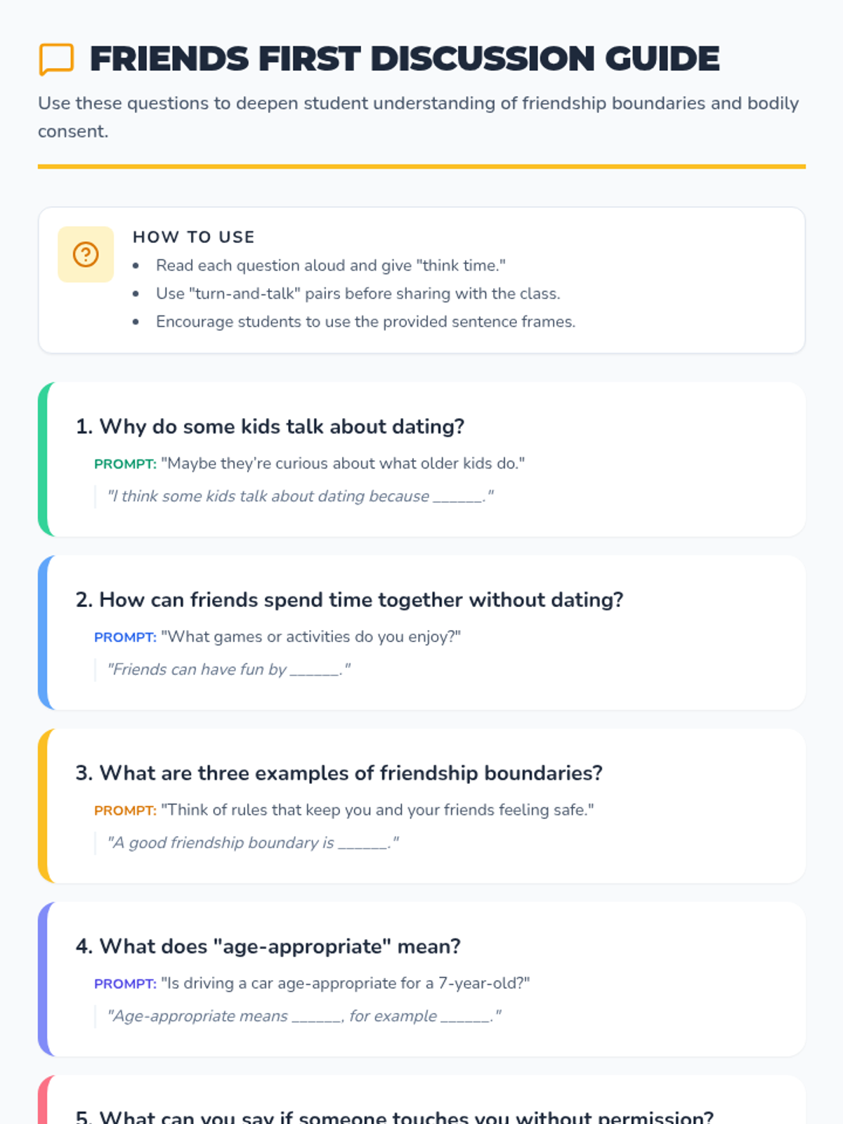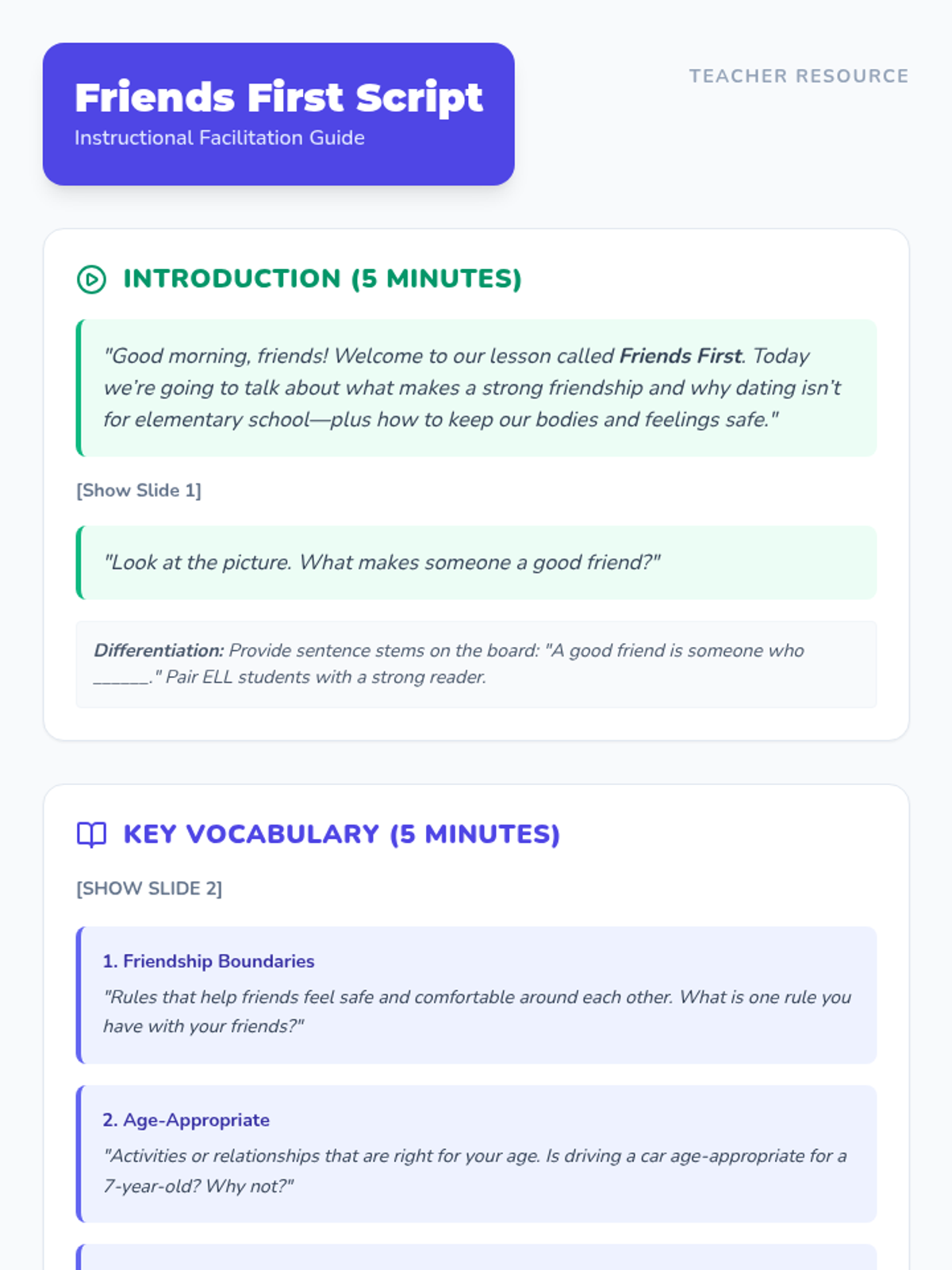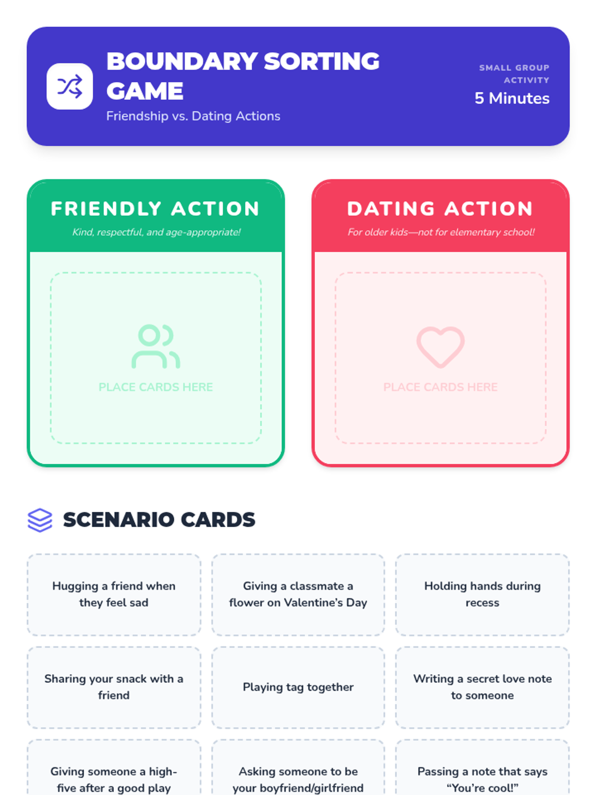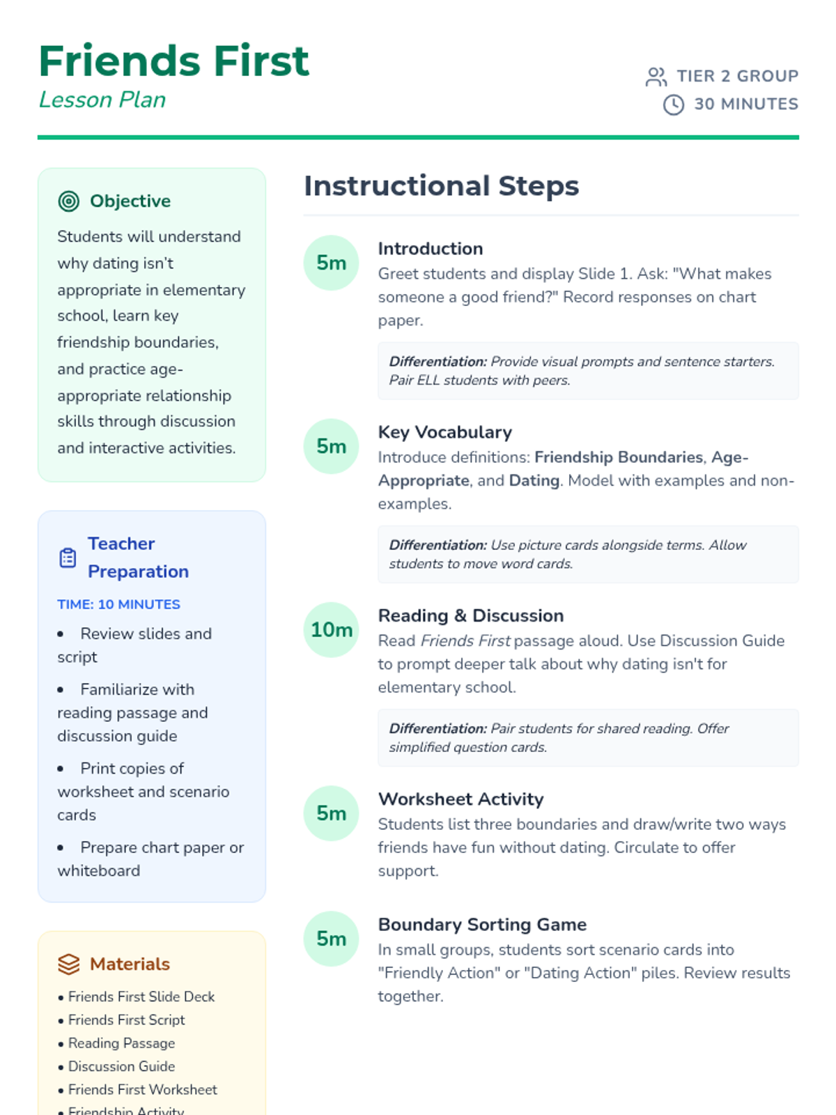 A 30-minute Tier 2 group lesson for 2nd-4th graders exploring friendship boundaries, age-appropriate relationships, and why dating isn't for elementary school.
