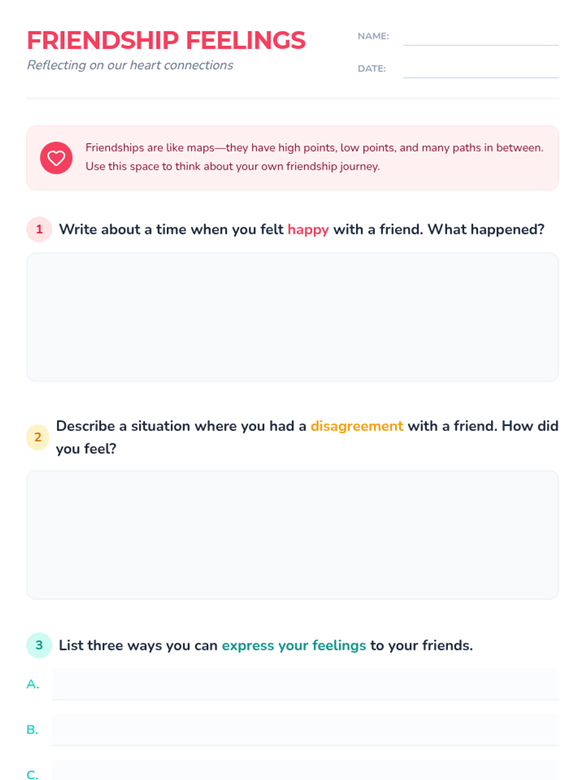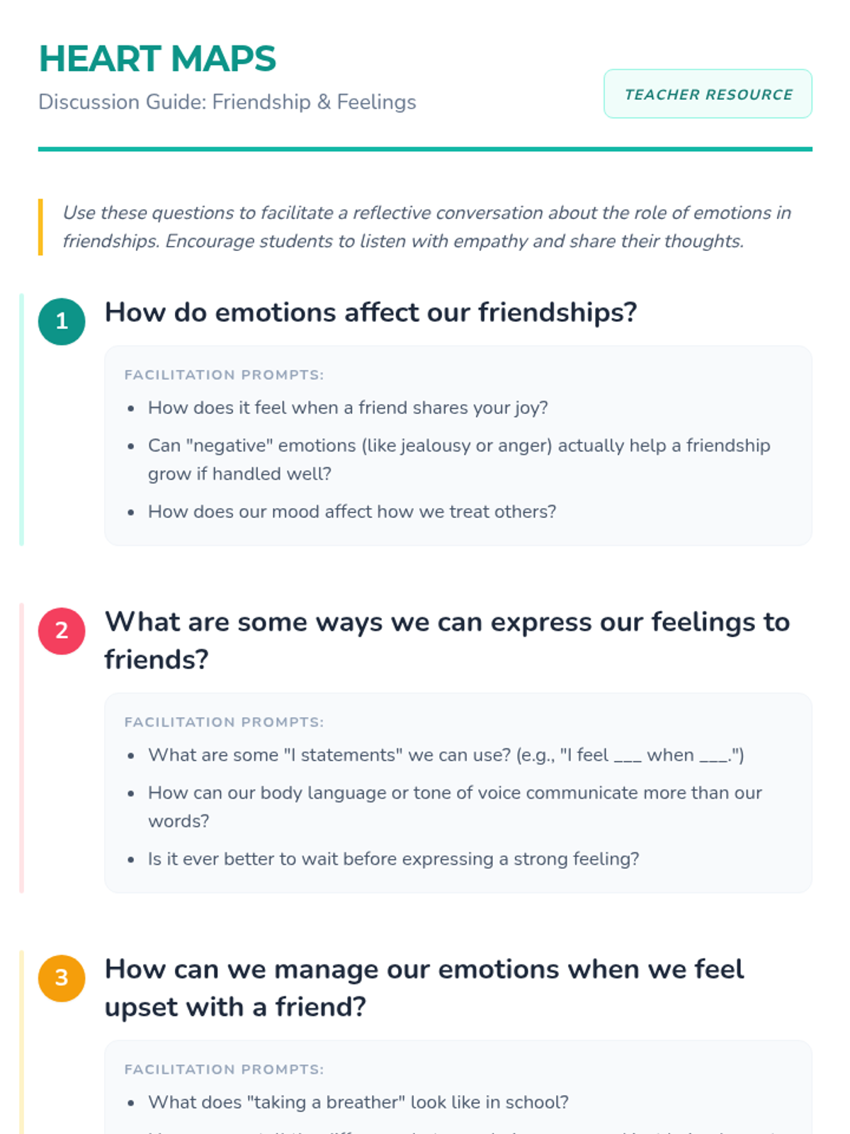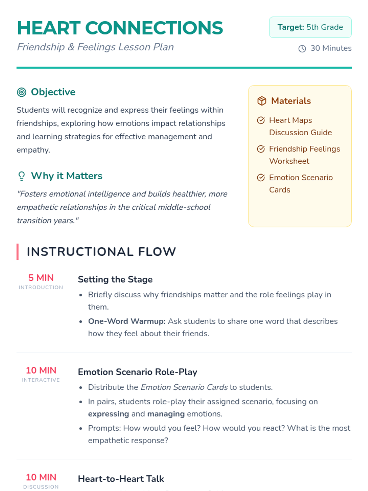 A 5th-grade lesson on recognizing and expressing emotions within friendships to build empathy and emotional intelligence.