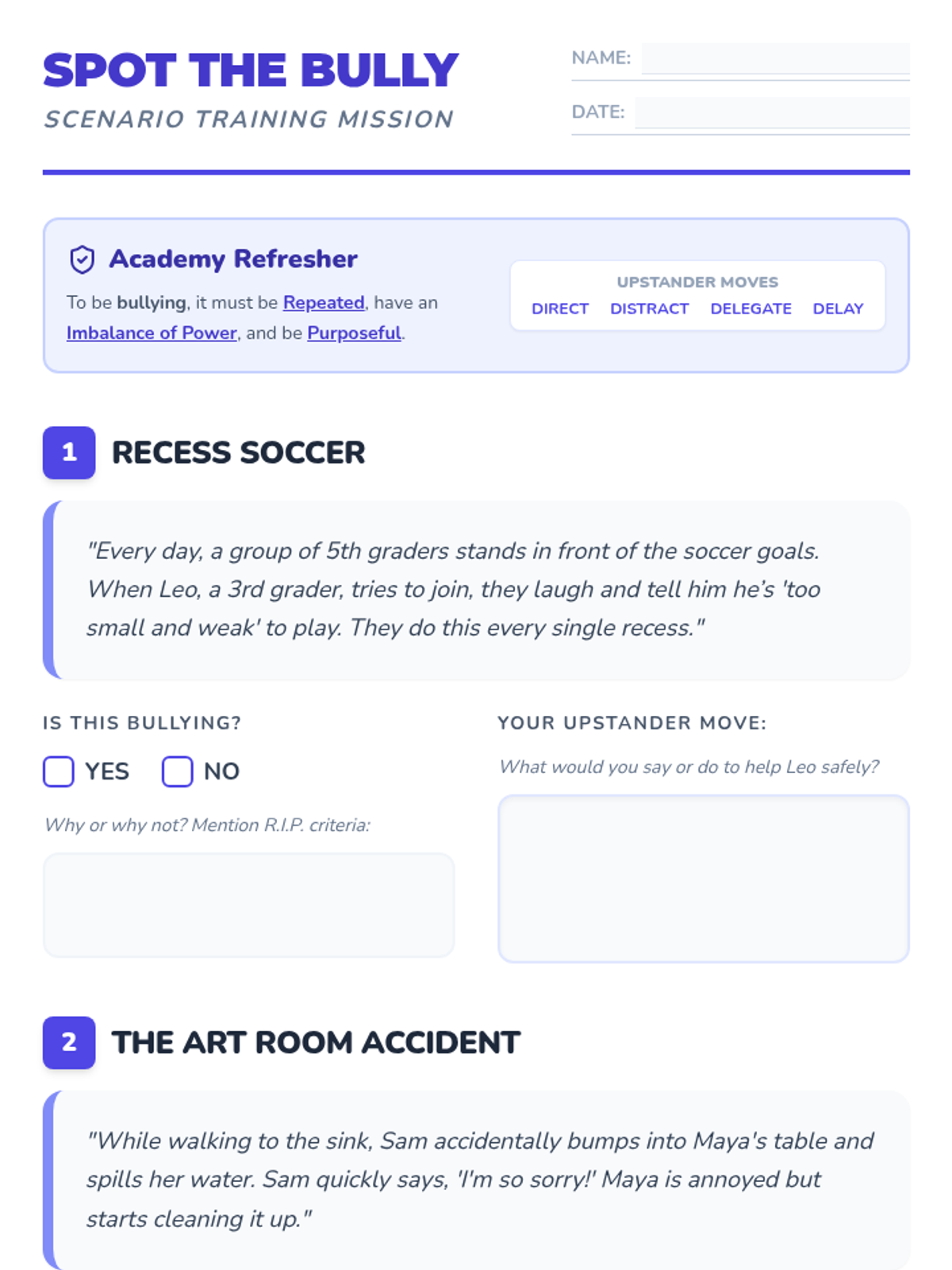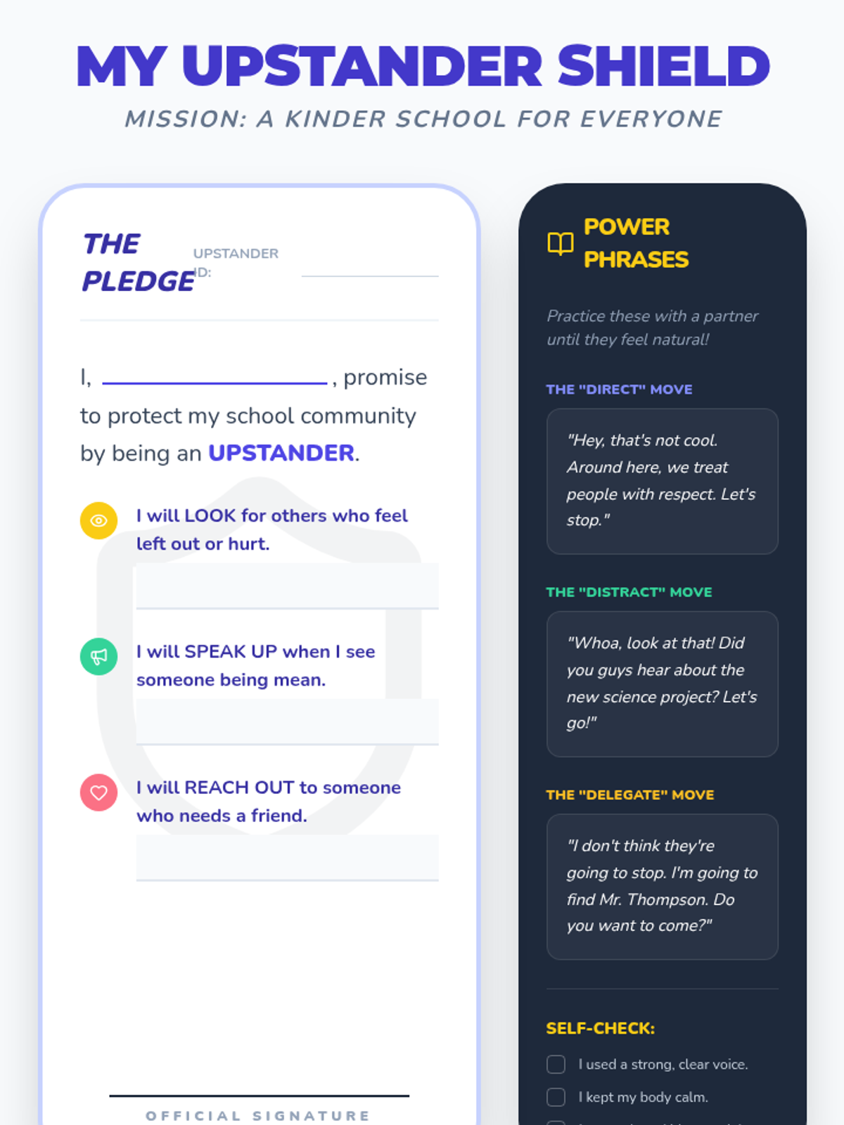 A comprehensive lesson for 3rd-5th graders on identifying bullying, understanding the role of an upstander, and practicing safe intervention strategies. Aligned with Massachusetts SEL standards for social awareness and relationship skills.