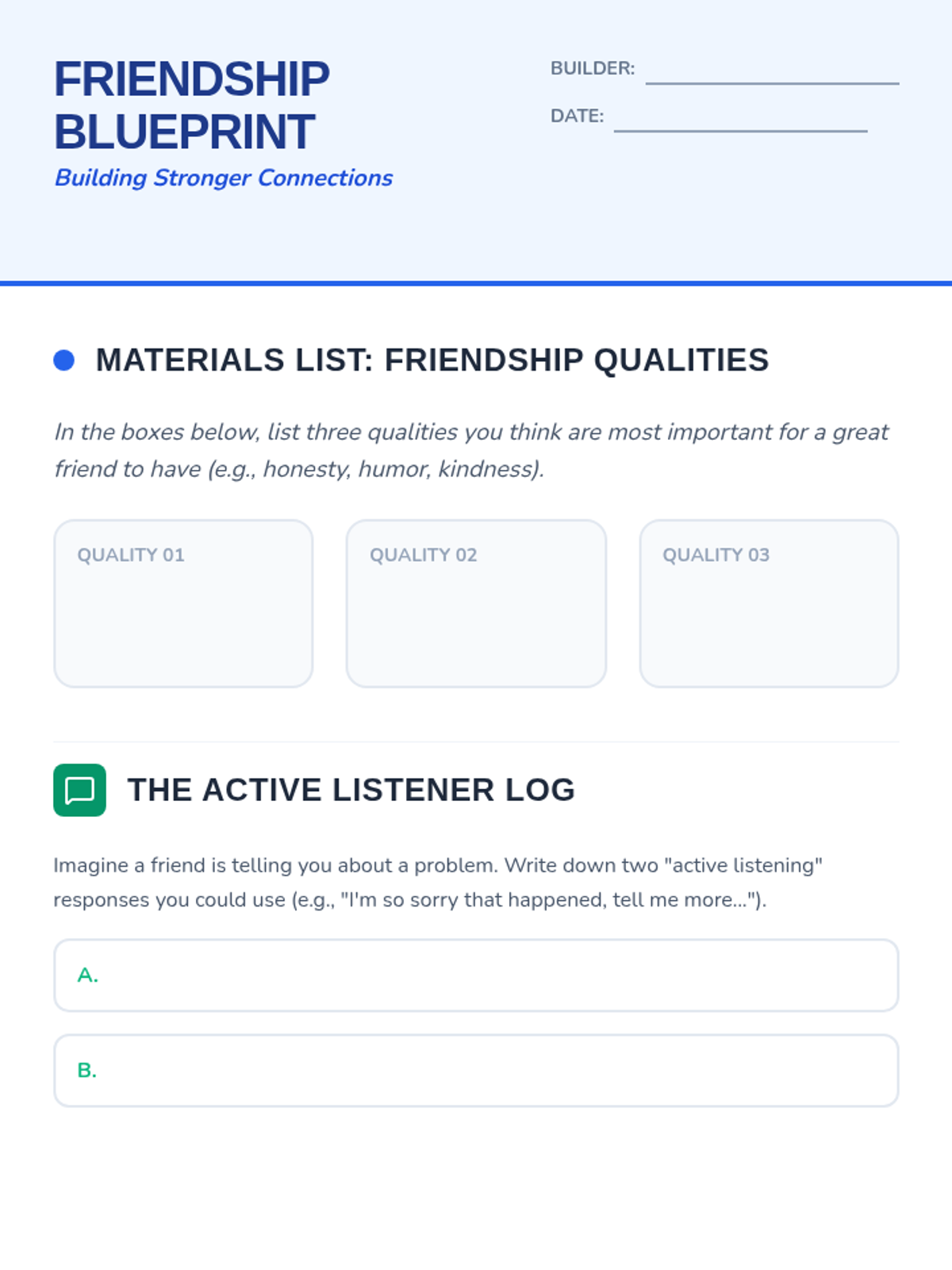 A lesson for 5th graders on the core values of friendship, focusing on communication, empathy, and conflict resolution through a blueprint-themed instructional approach.