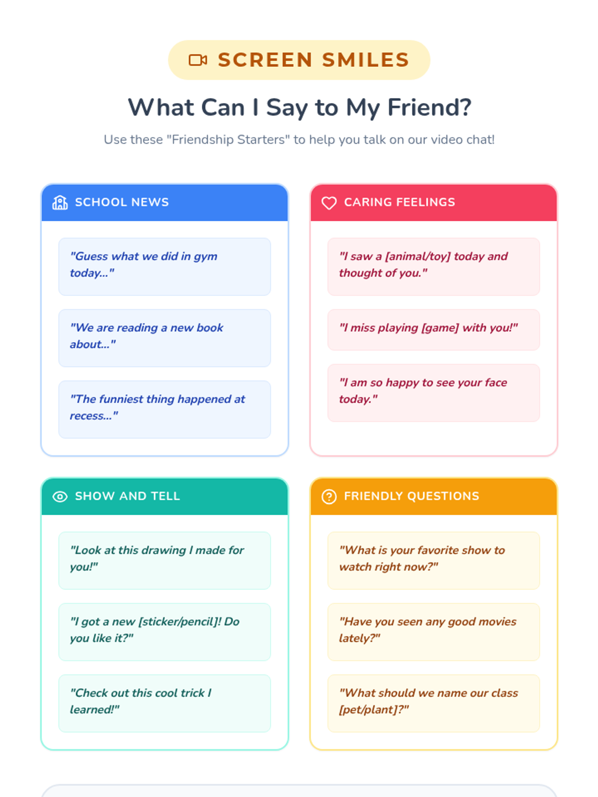 A support circle guide designed to help 2nd-grade teachers facilitate sensitive conversations about a classmate who is away due to illness. The lesson focuses on emotional support, privacy, and maintaining connection through video chats.