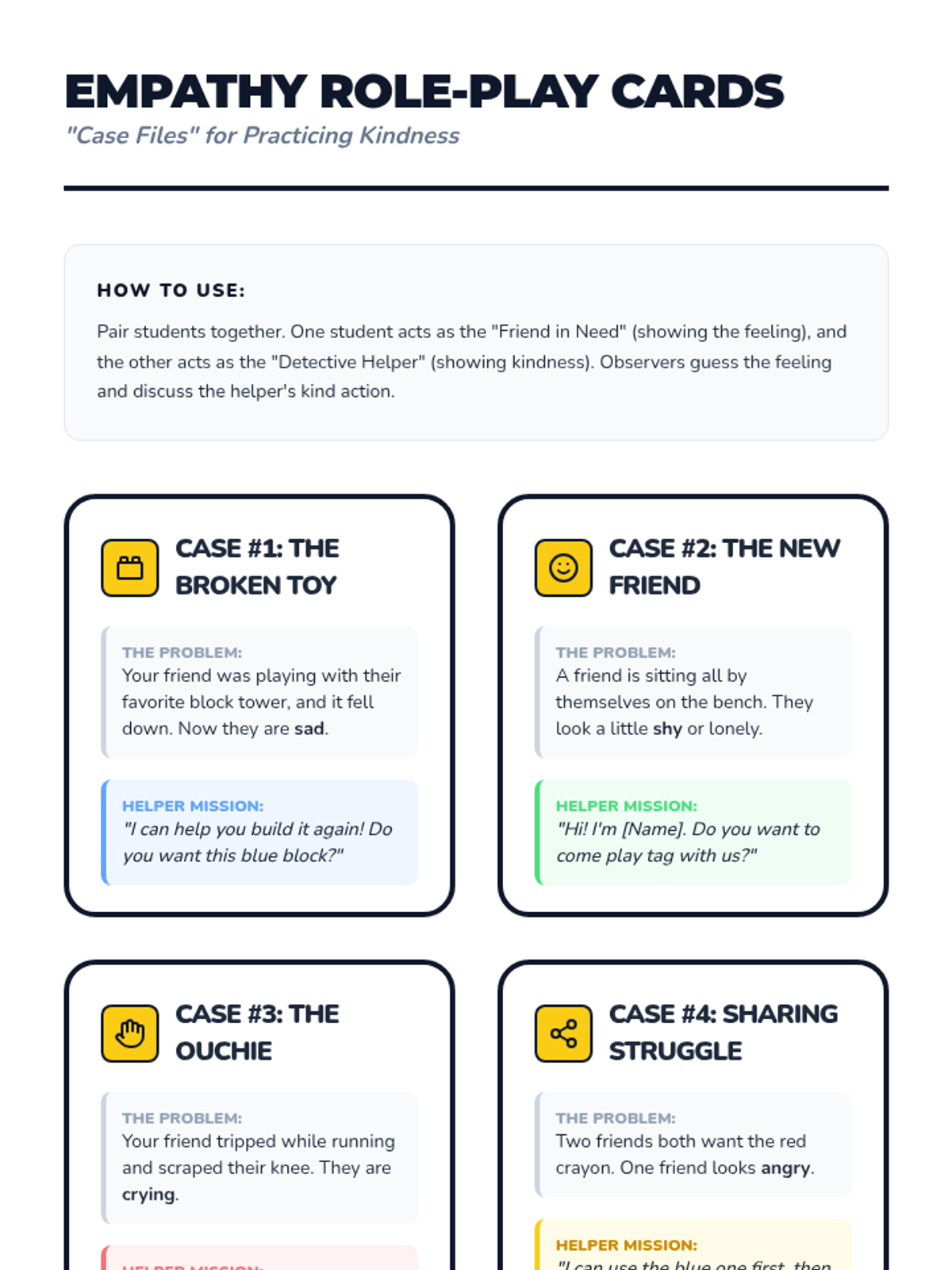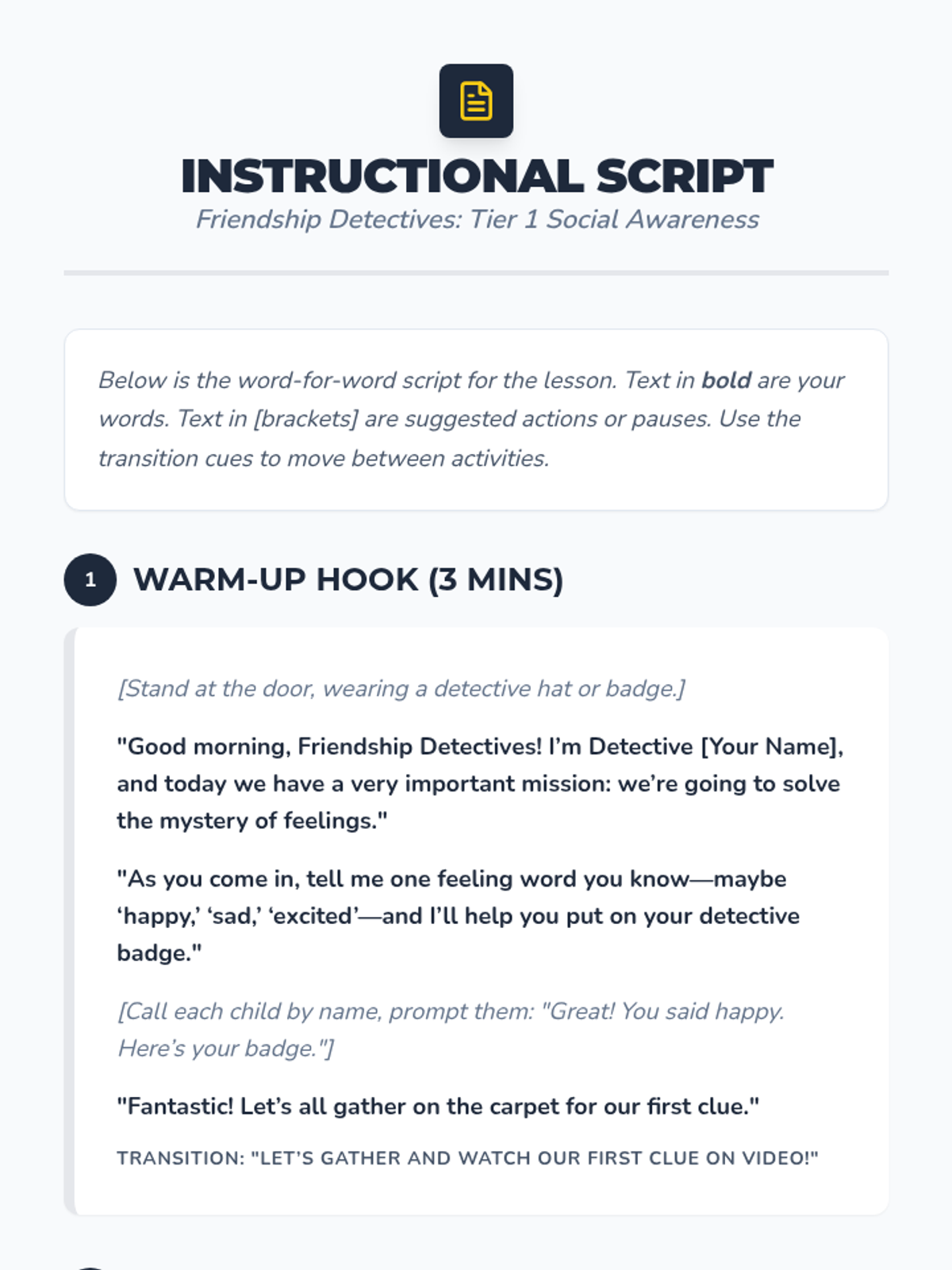 A 30-minute social awareness lesson for PreK-K students where they become 'Friendship Detectives' to identify emotions and practice empathy.