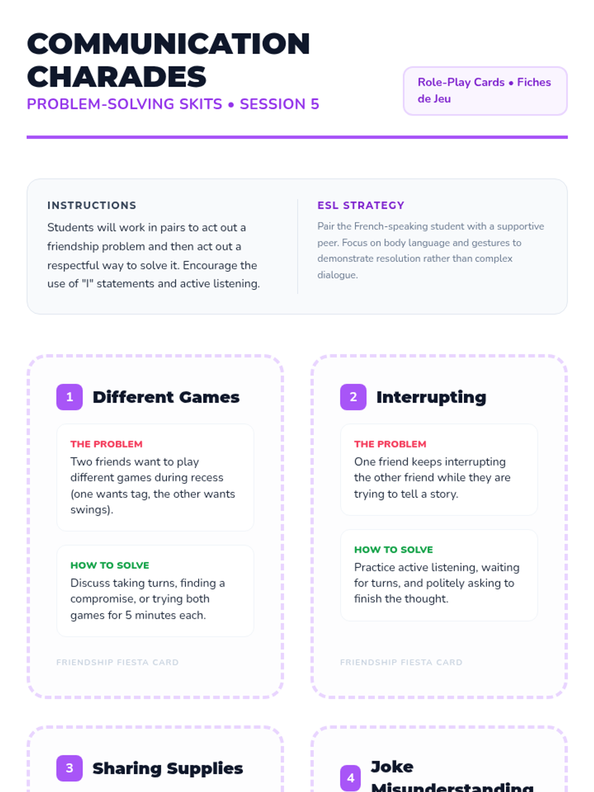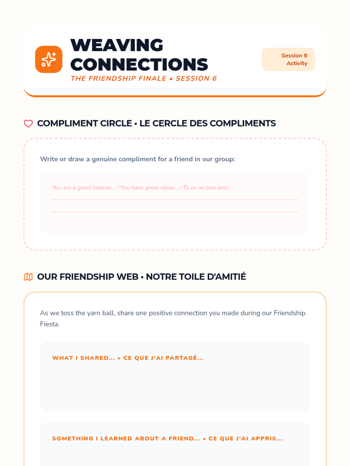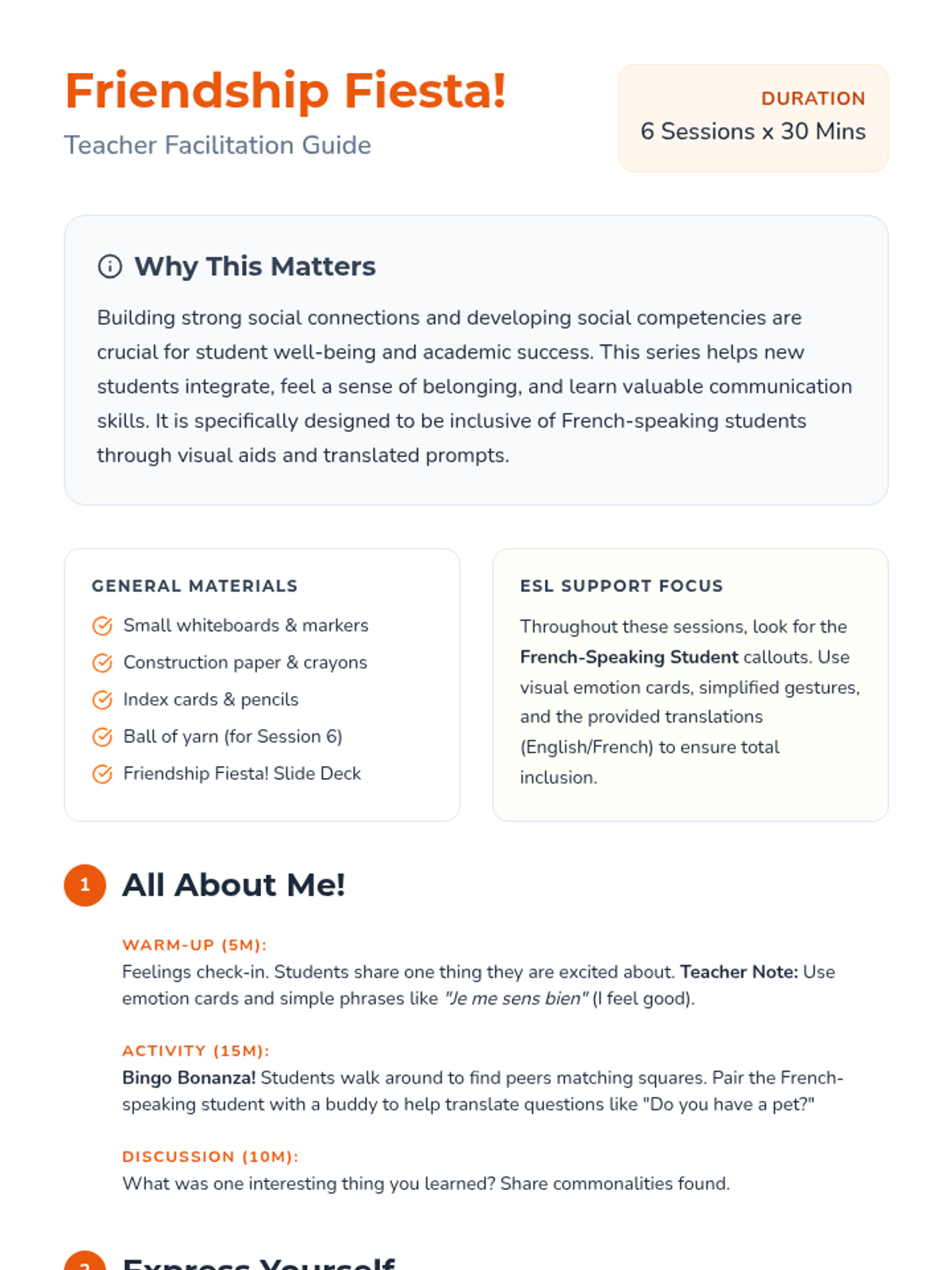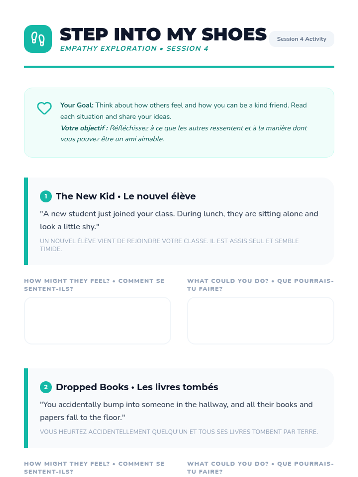 A six-session social skills series for 4th graders designed to build empathy, communication, and connection, with specialized support for ESL students.