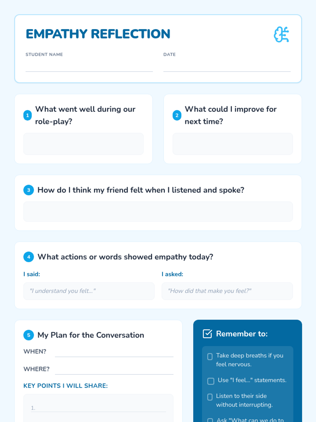 A 10-minute social-emotional learning lesson that helps 5th graders identify the scale of their conflicts and practice resolution through role-play, focusing on emotional awareness without the need for writing.