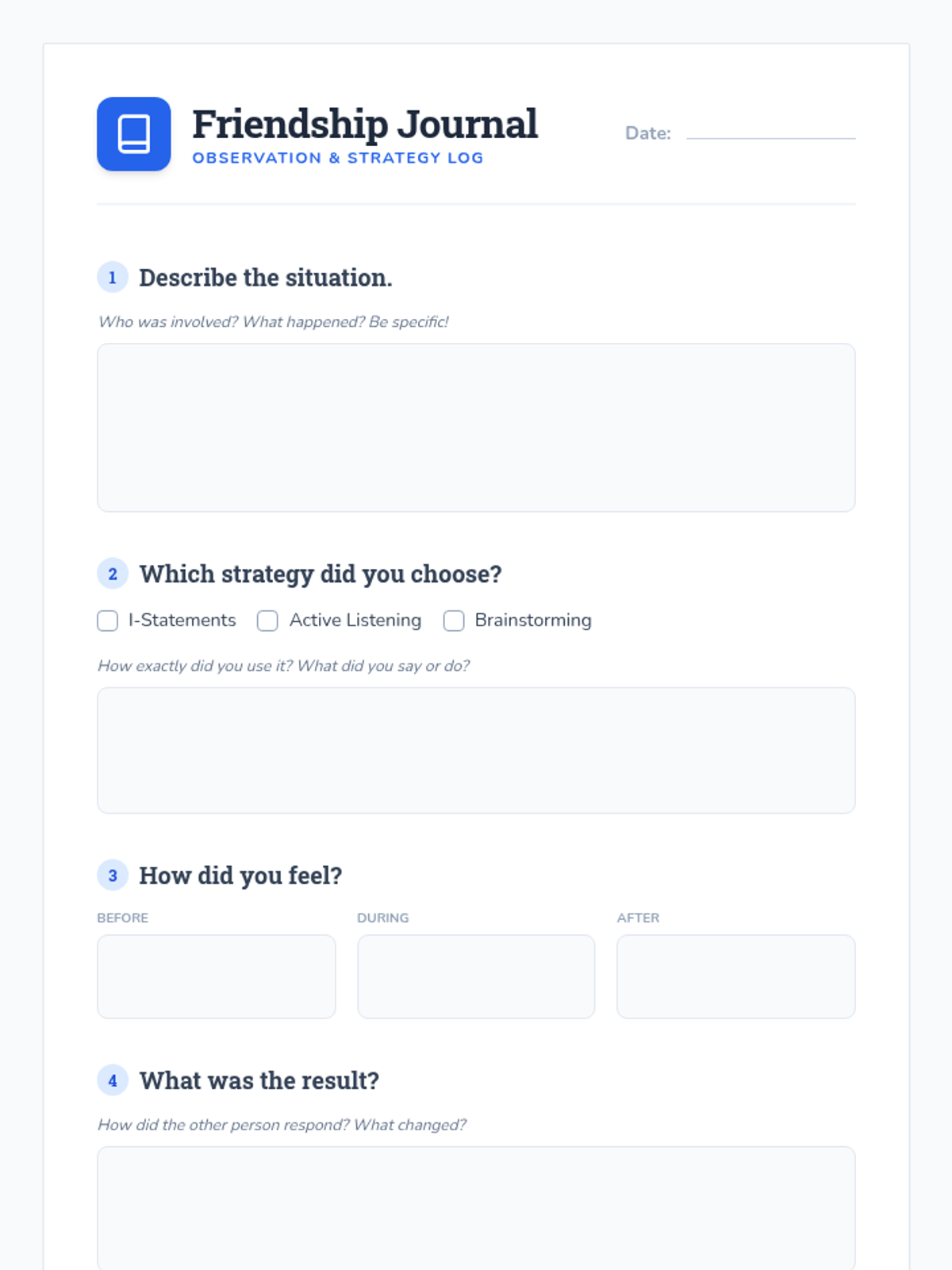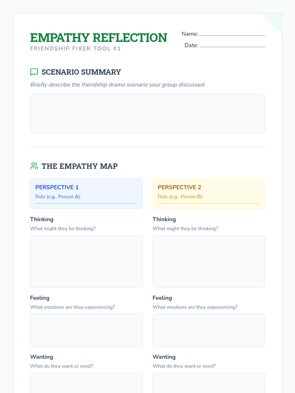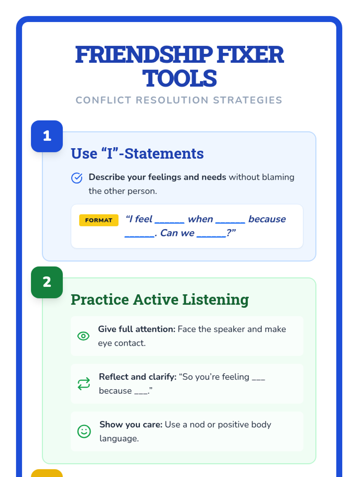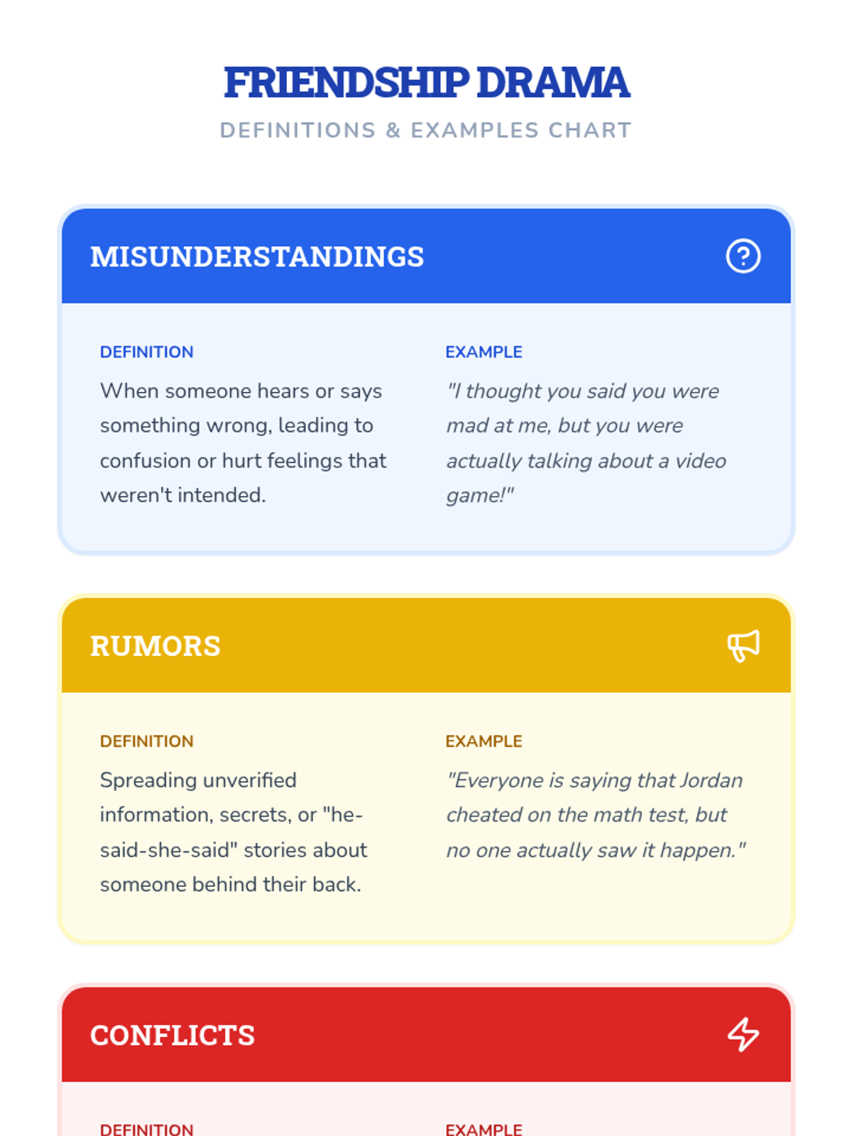 A 90-minute Tier 2 small-group lesson for 5th graders focused on identifying friendship dramas and practicing conflict resolution strategies like I-statements and active listening.