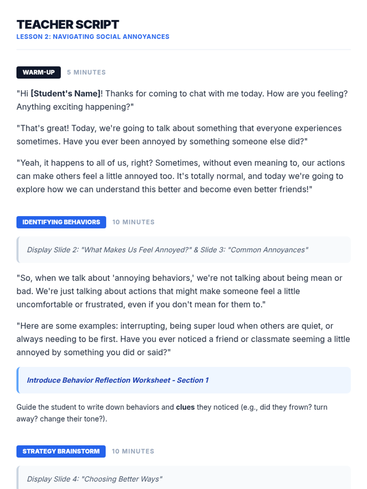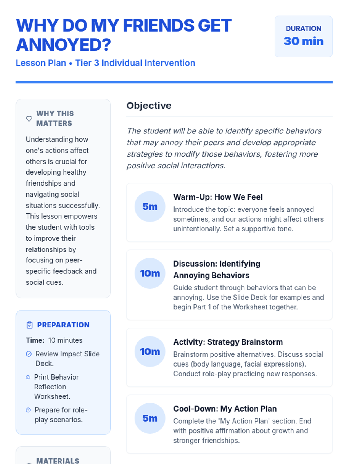 Focuses on identifying specific peer annoyances and developing an action plan to improve social dynamics and friendships.