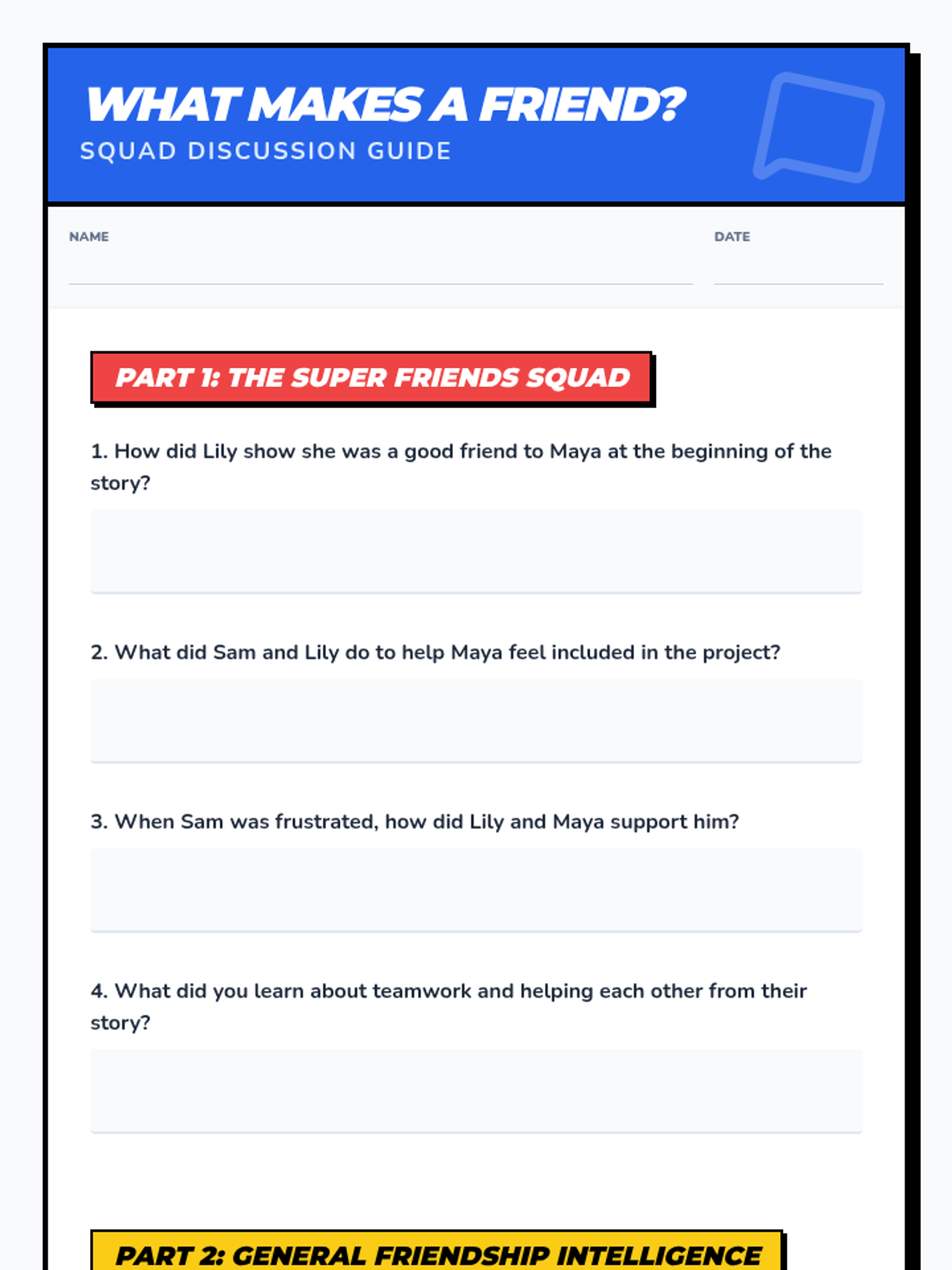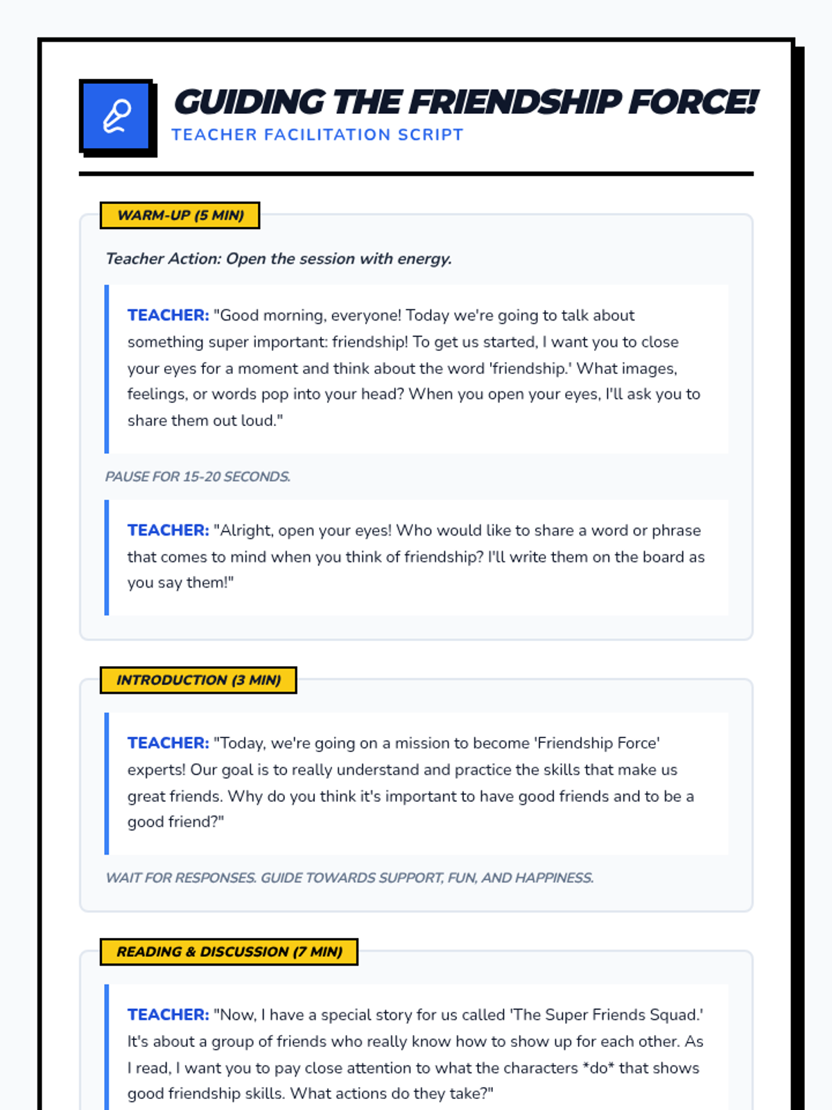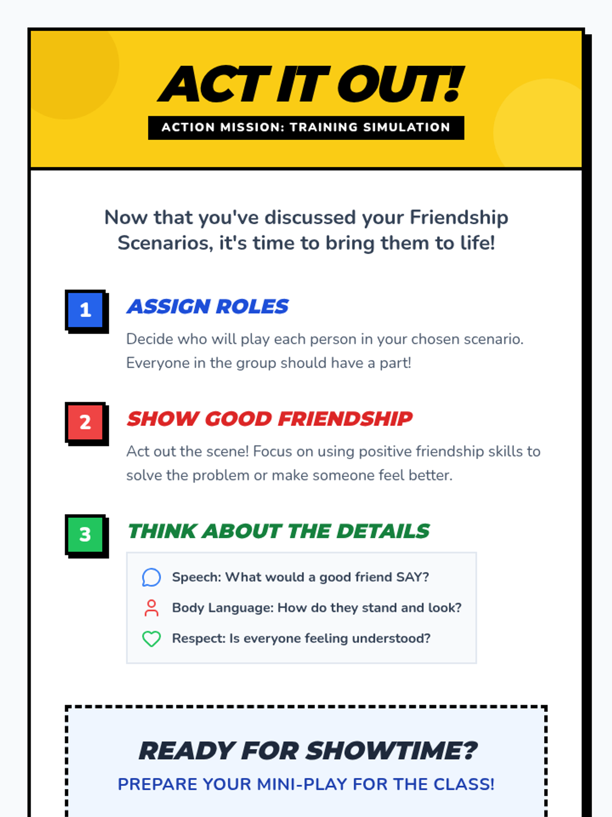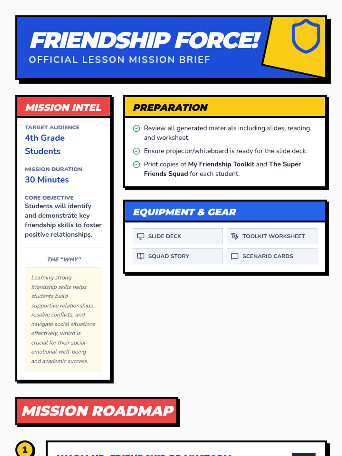 A 30-minute interactive lesson for 4th graders focusing on identifying and practicing key friendship skills through storytelling, role-play, and reflection.