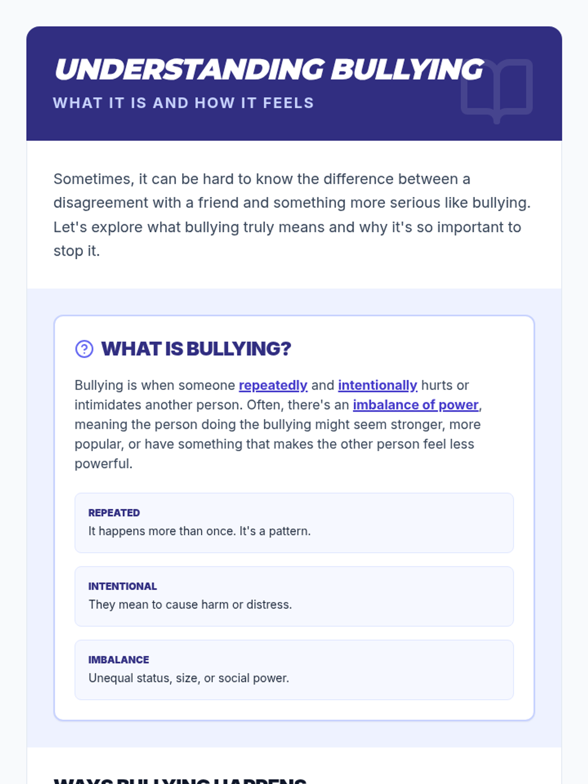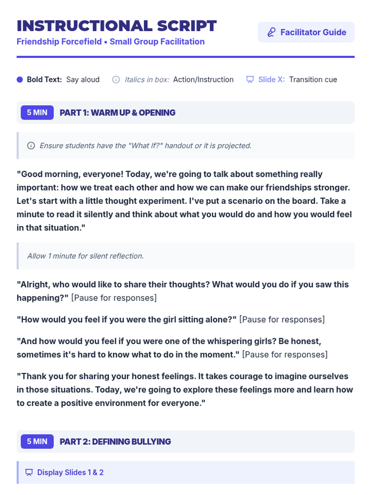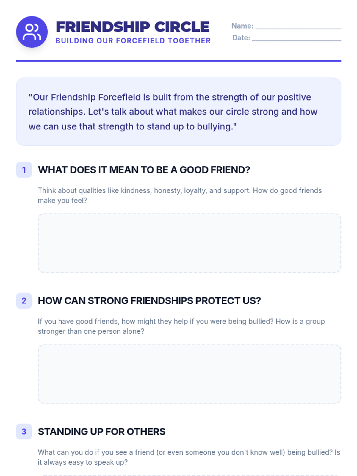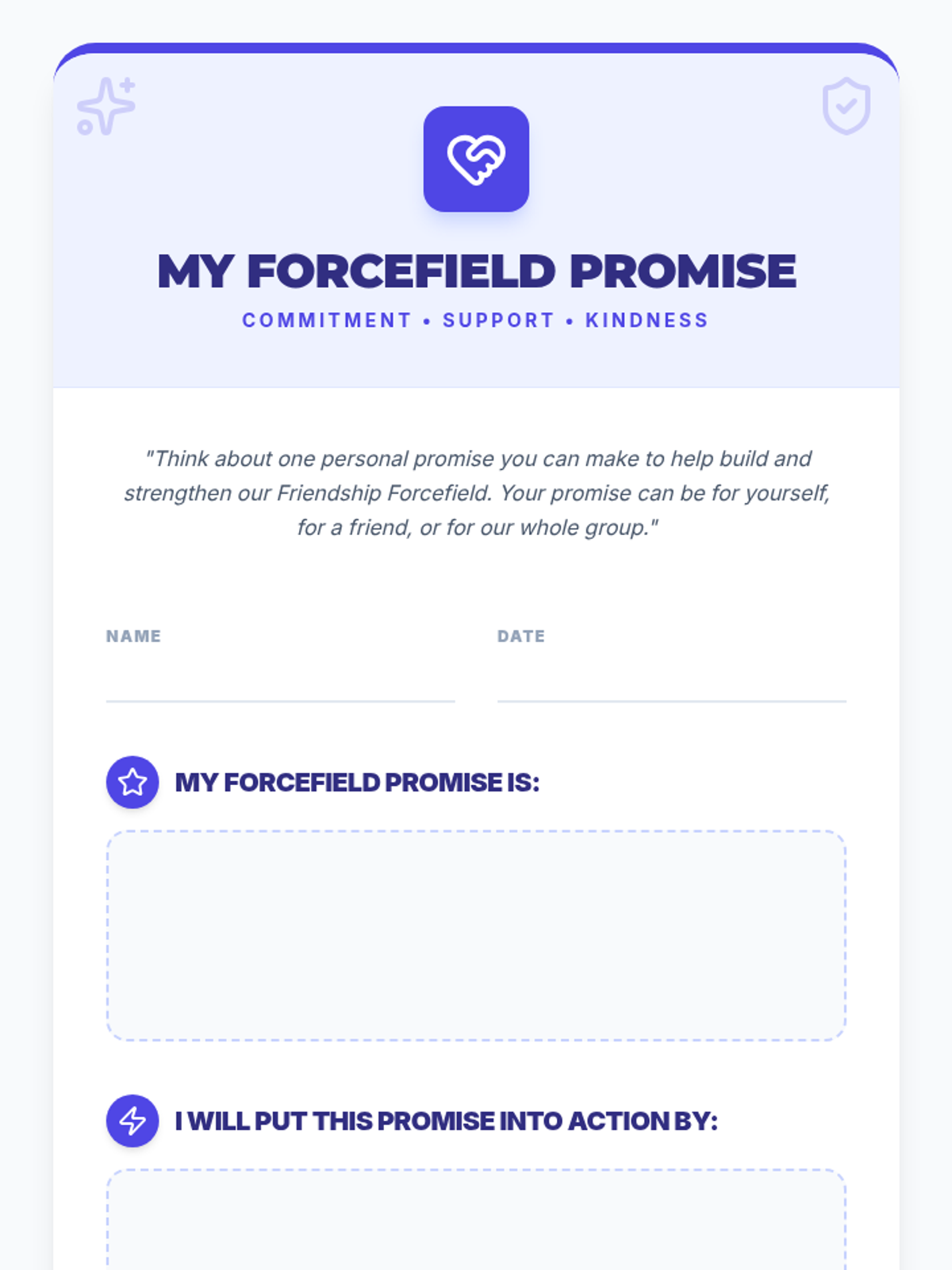 A 30-minute Tier 2 small group lesson for 5th-grade girls focusing on defining bullying, recognizing its types, and building a 'Friendship Forcefield' through proactive social strategies and role-playing.