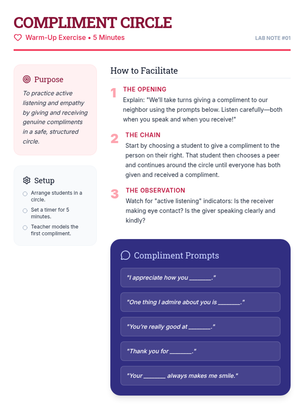 A social-emotional learning lesson using a compass metaphor to help K-5 students re-establish empathy, kindness, and community after time away from school. Students explore the four 'cardinal points' of connection: Notice Needs, Speak Kindness, Everyone's Invited, and Work Together.