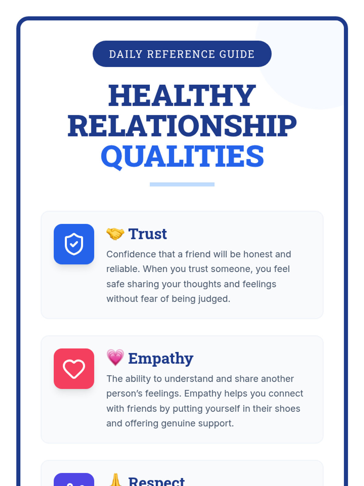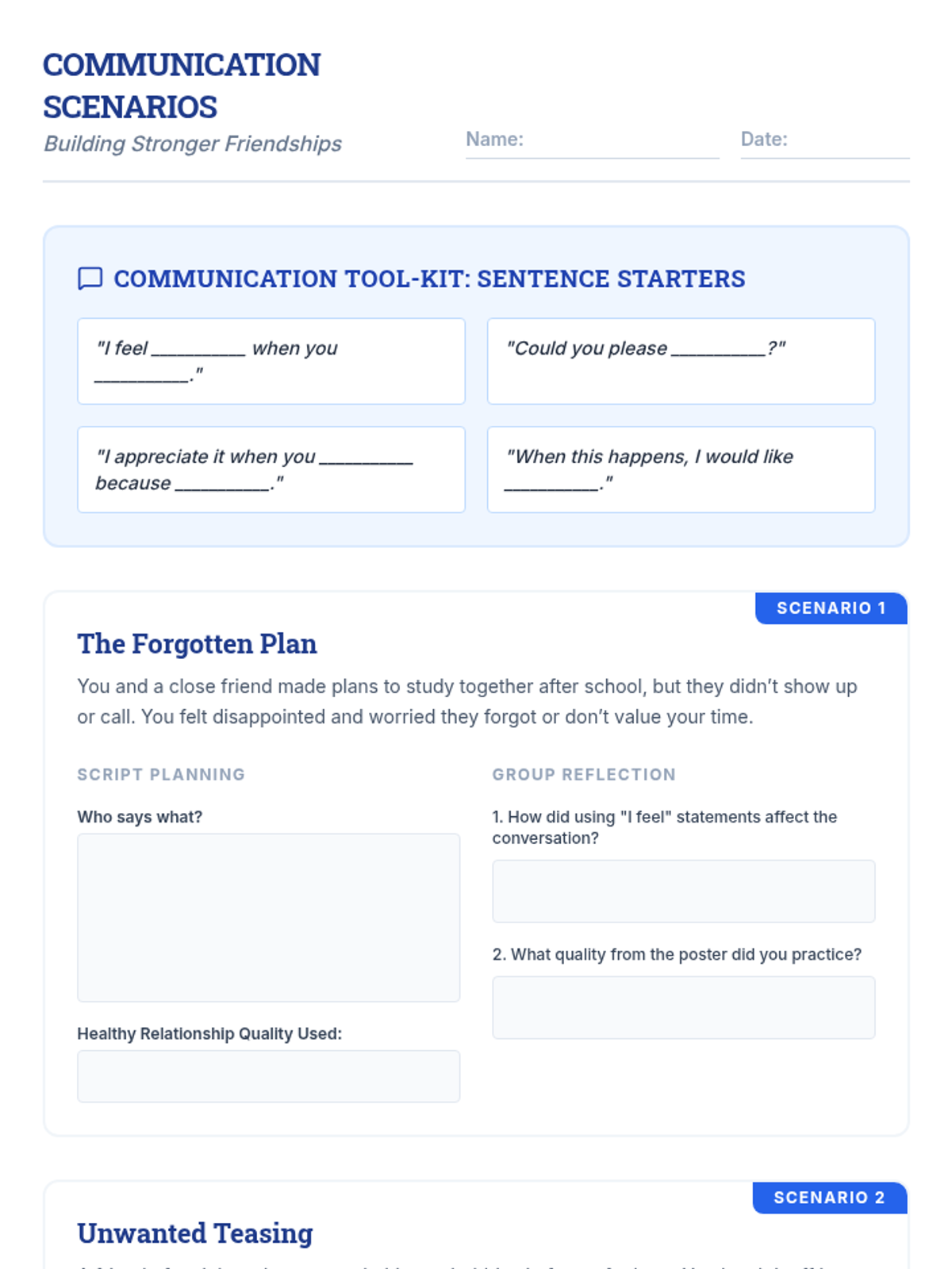 A 30-minute Tier 1 lesson for 9th graders focused on identifying healthy relationship qualities, practicing effective communication, and establishing personal boundaries.
