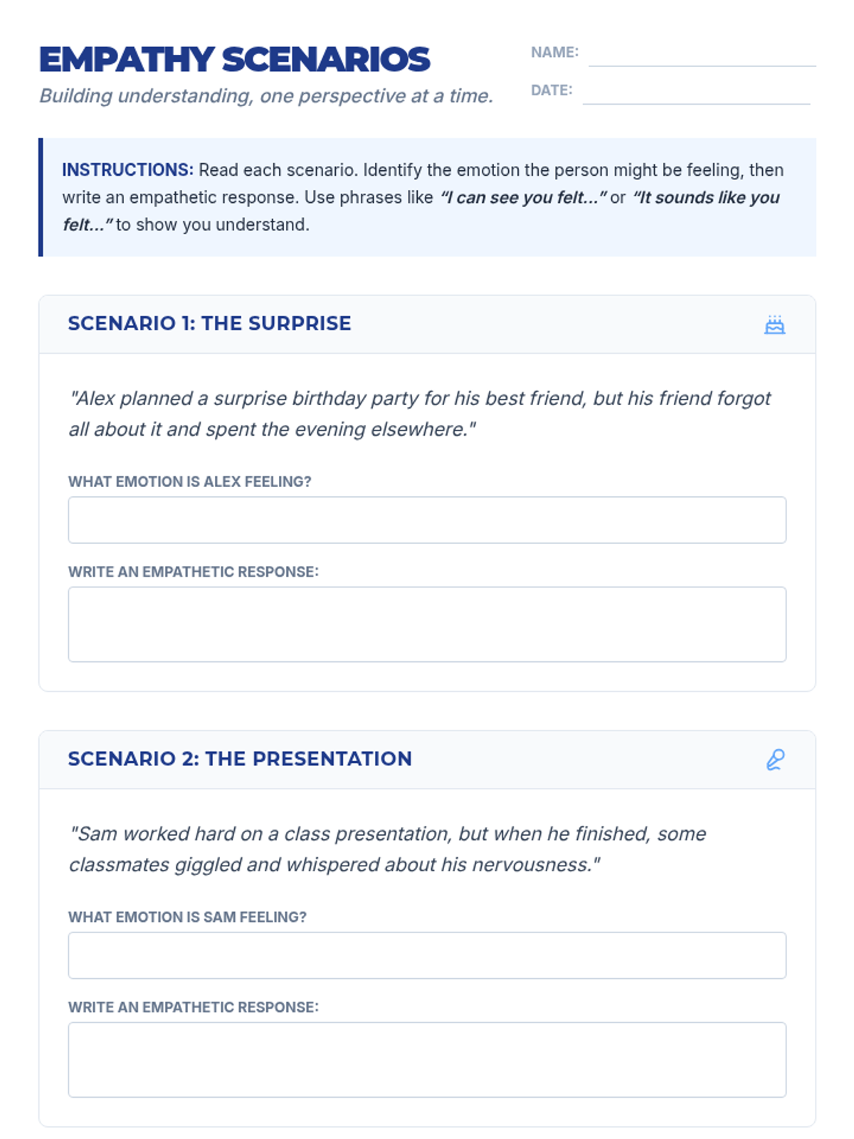 Focuses on empathetic response language in English to build stronger social connections.