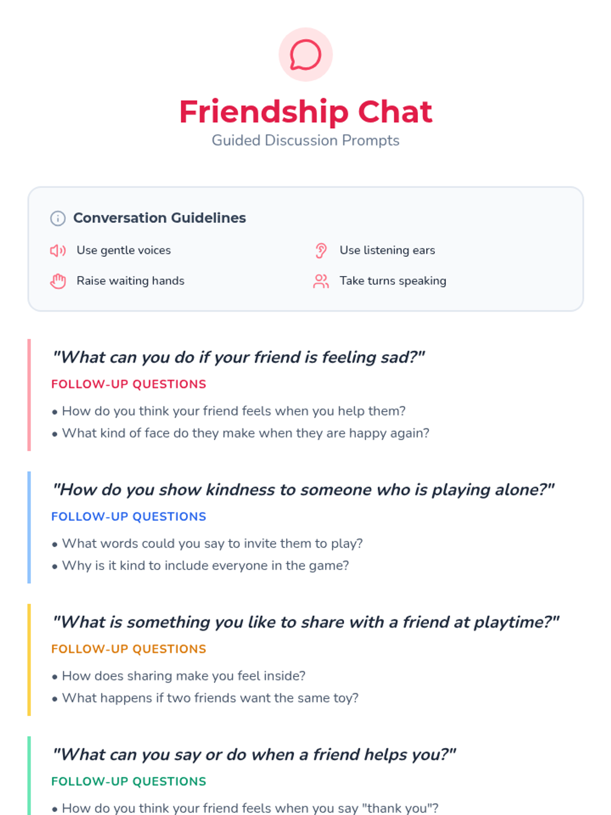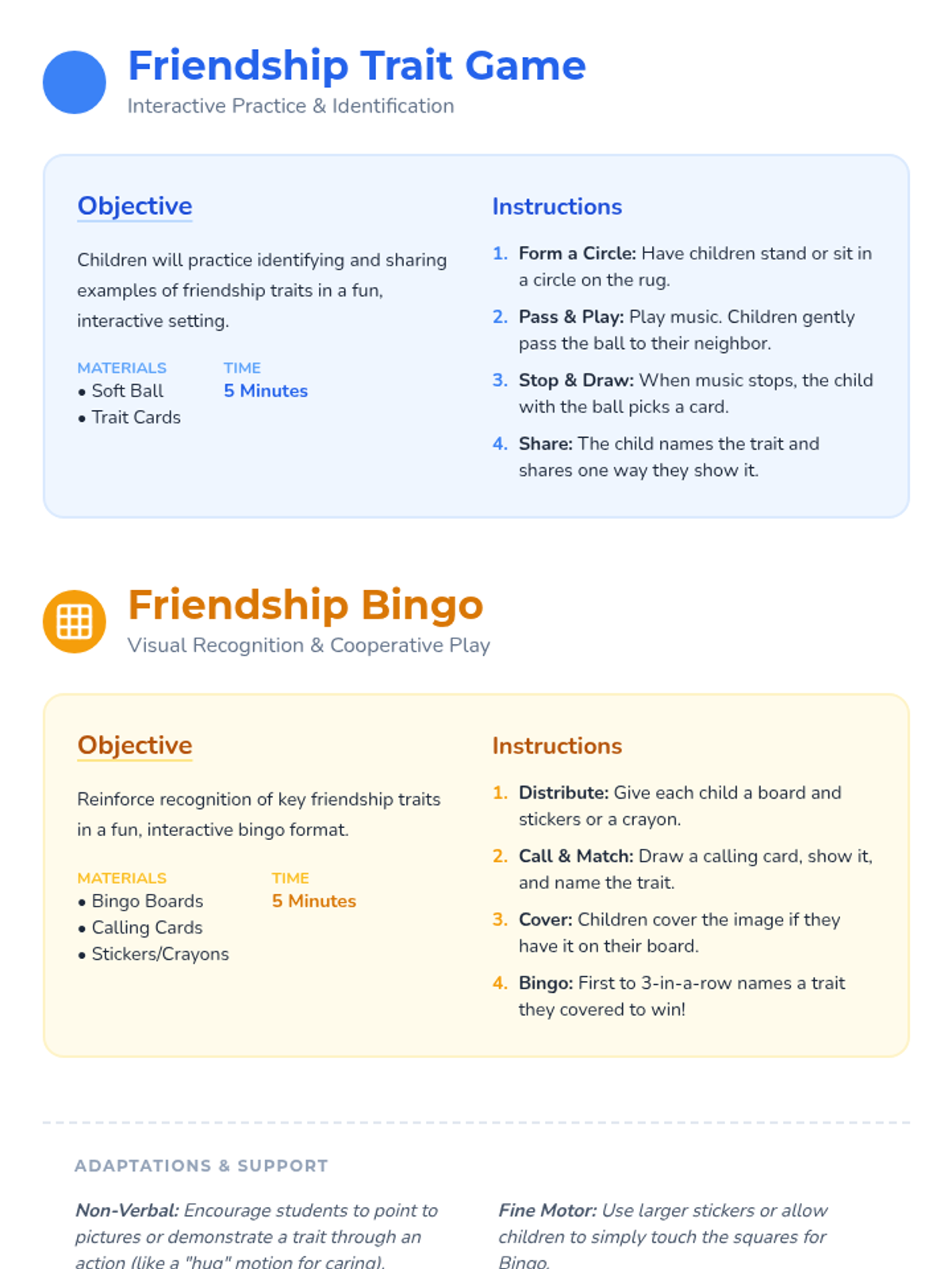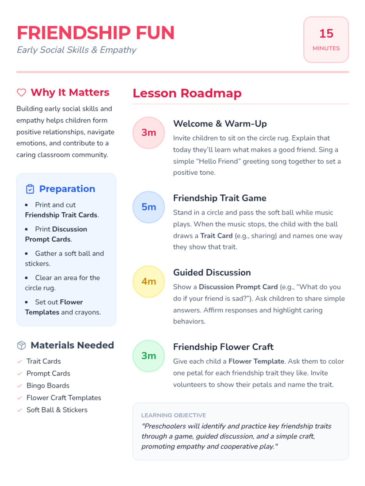 A playful 15-minute lesson for preschoolers to explore friendship through interactive games, discussions, and a simple craft.