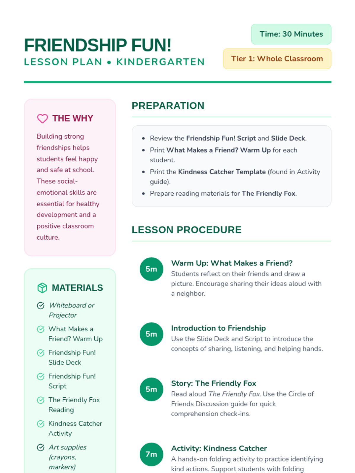 This lesson helps kindergarten students understand and practice positive relationship skills like sharing, listening, and helping others through interactive stories, games, and creative projects.