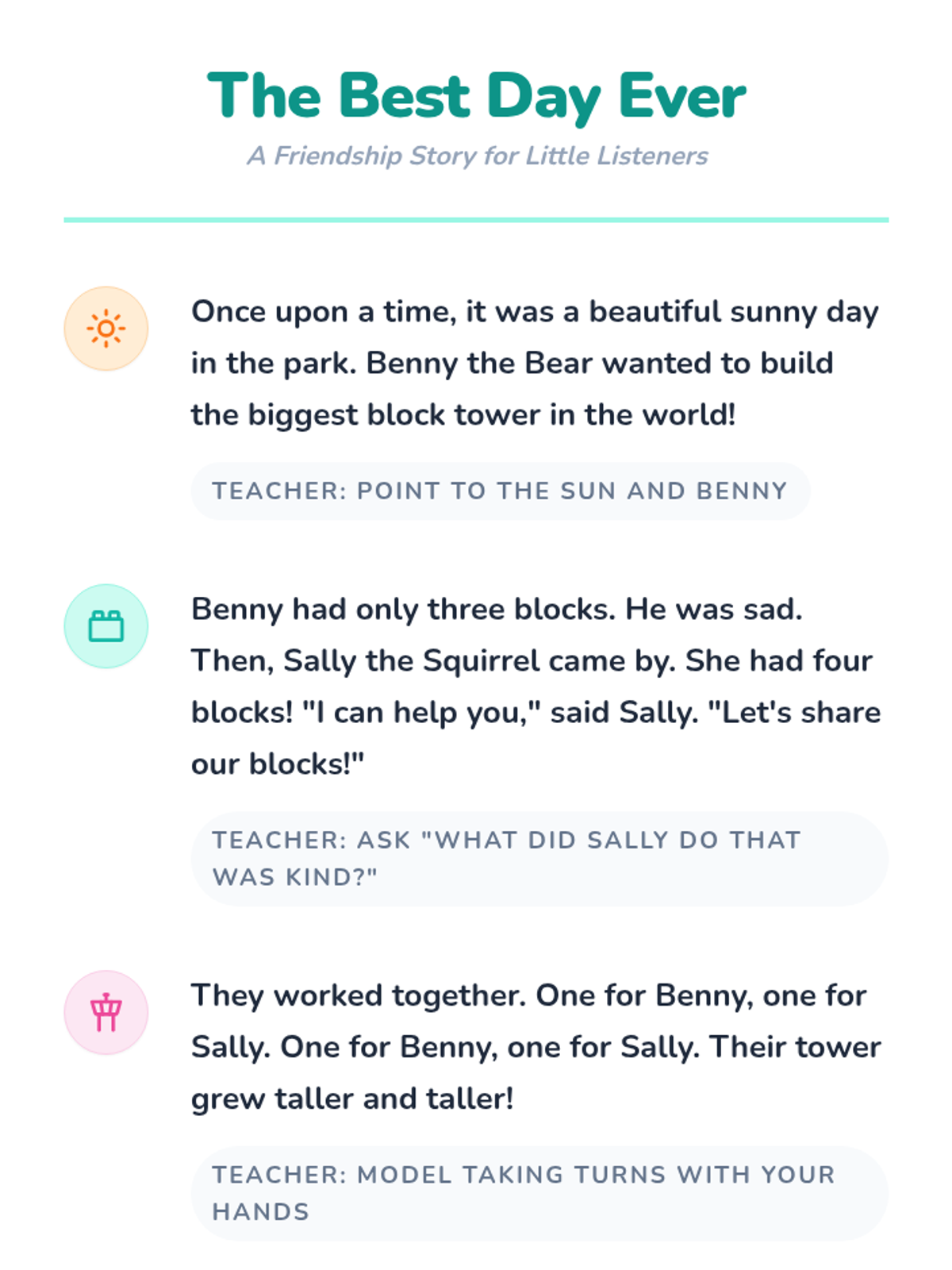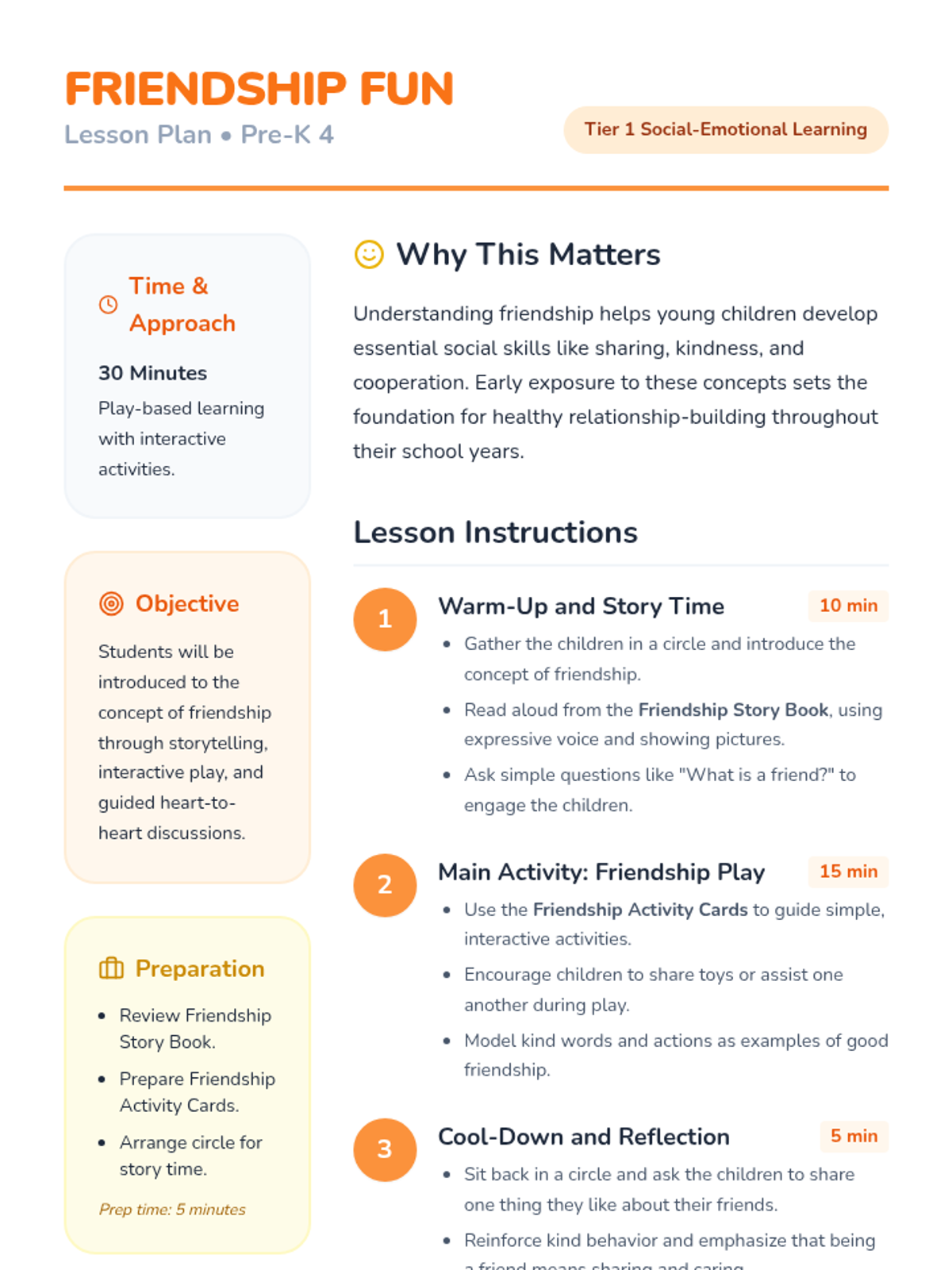 This lesson introduces Pre-K 4 students to the concept of friendship through playful activities and simple discussions about kindness and sharing.