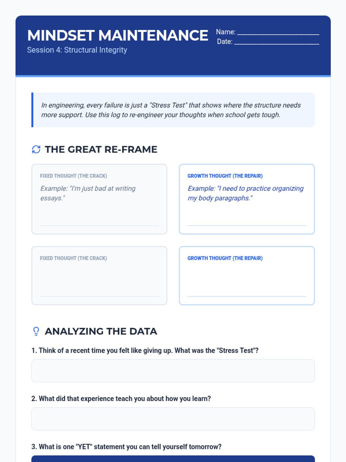 Developing a growth mindset and understanding how to view setbacks as data for improvement.