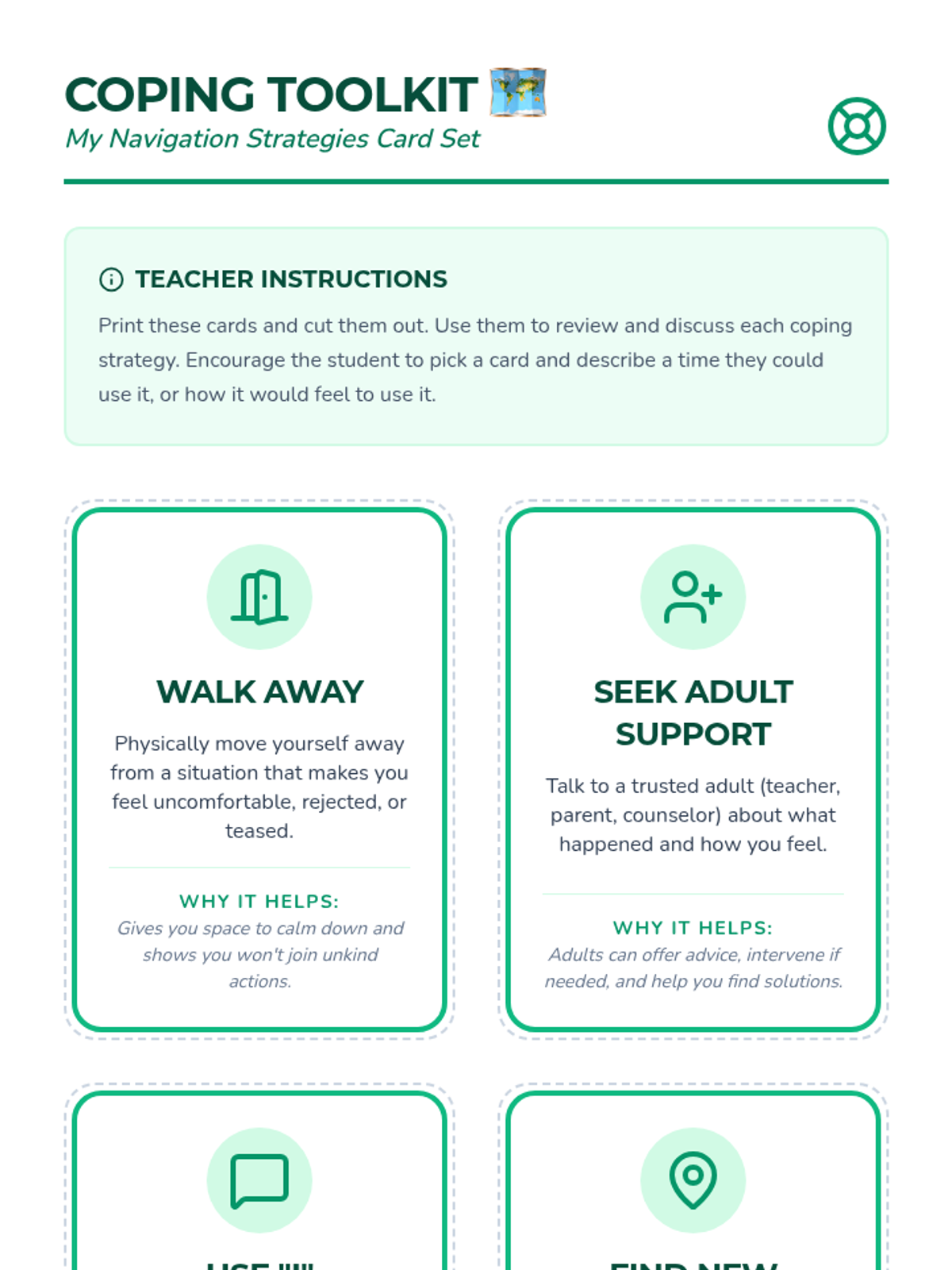 A social story and support toolkit designed to help students navigate frustration, manage physical impulses, and choose safe alternatives to eloping or aggression.