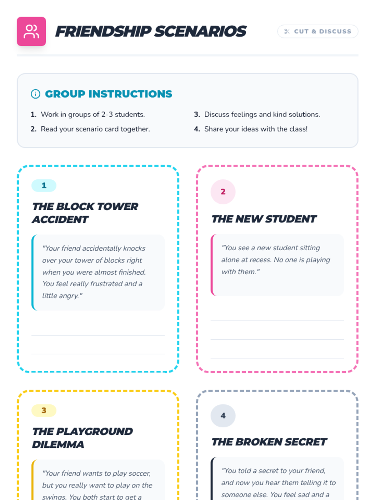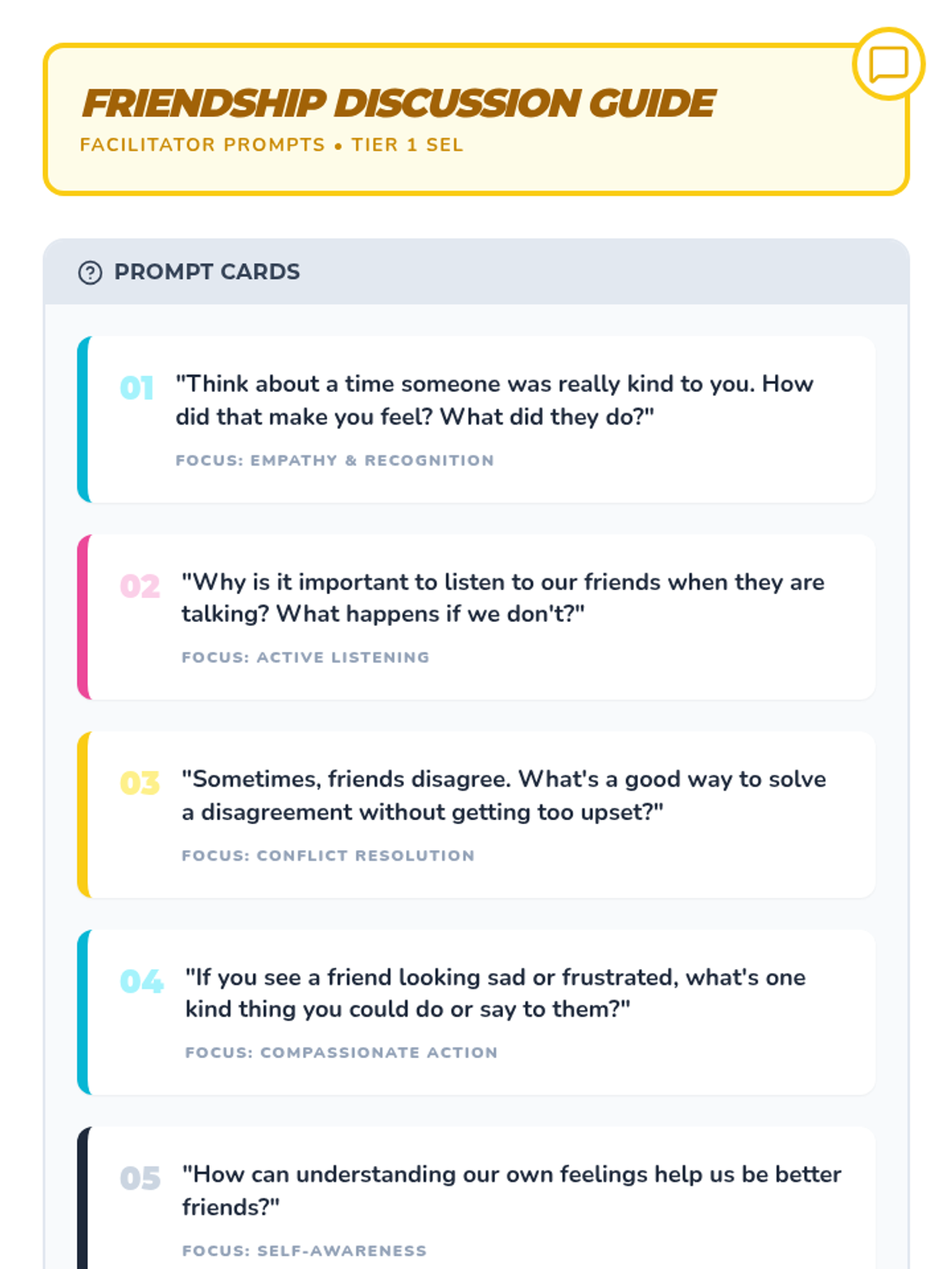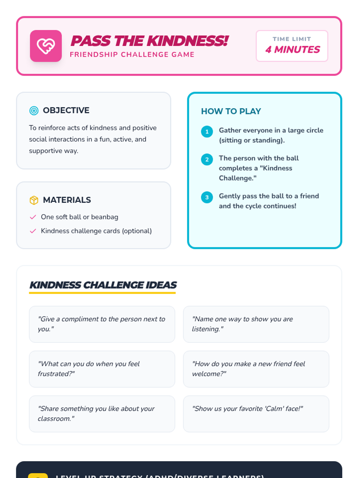 A high-energy, 20-minute Tier 1 lesson for 3rd graders focused on building friendships through kindness, emotional regulation, and social-emotional learning. Students engage in interactive games, discussions, and creative activities to "power up" their social skills.