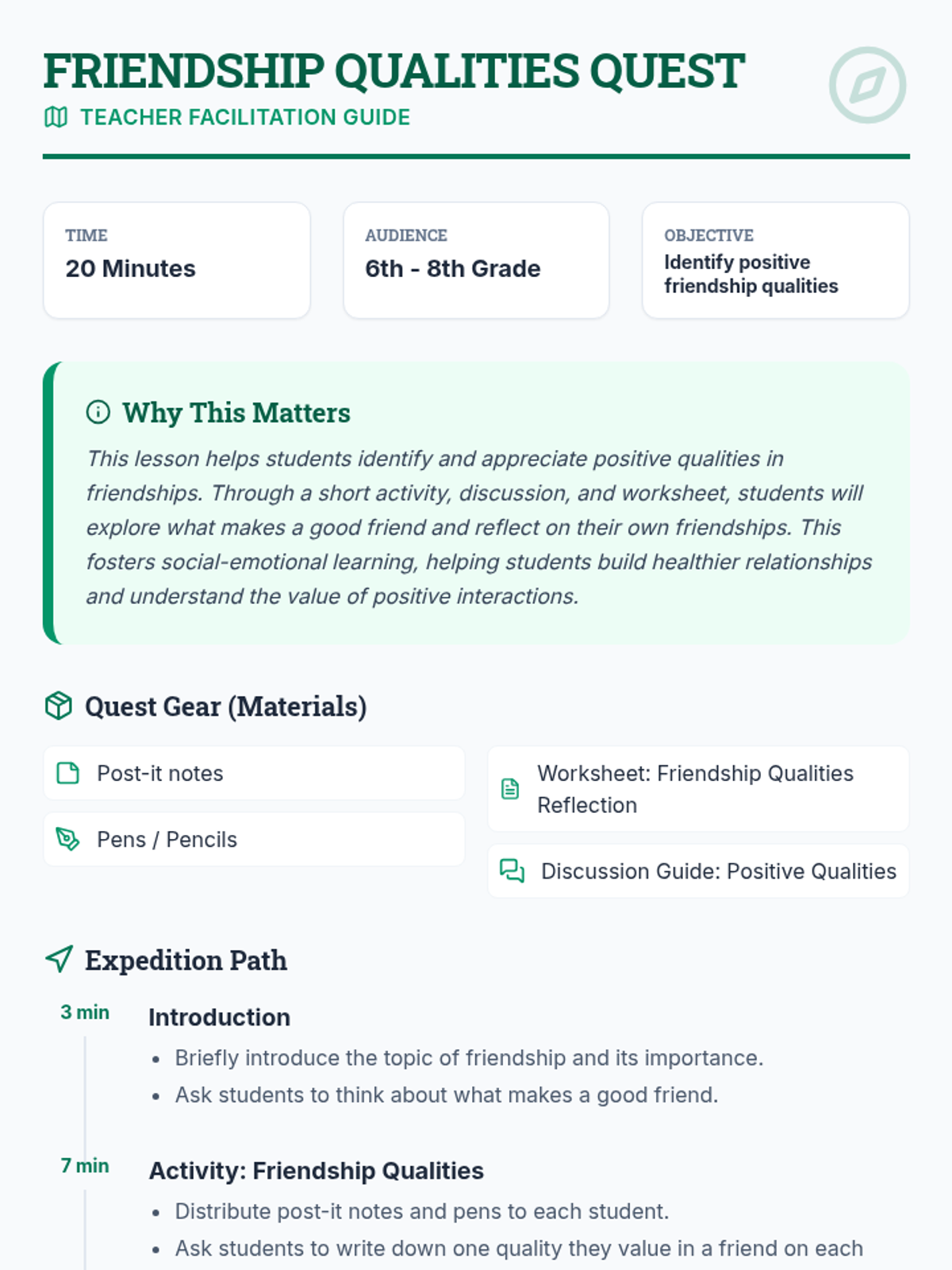A social-emotional learning lesson for middle schoolers to identify and appreciate the traits that build strong, healthy friendships through reflection and discussion.