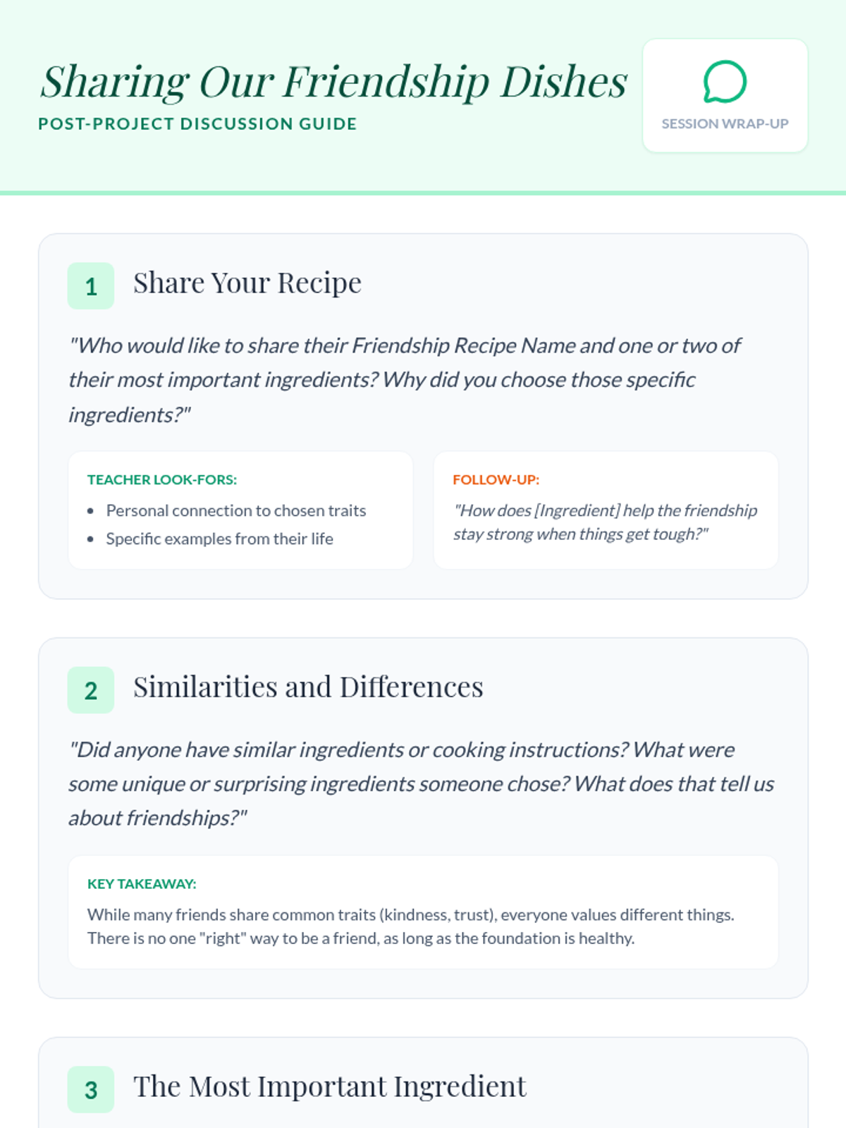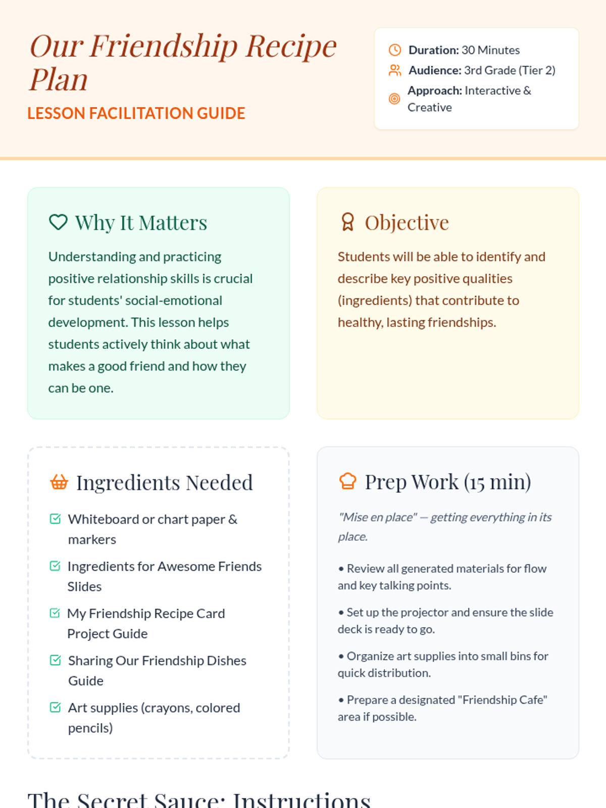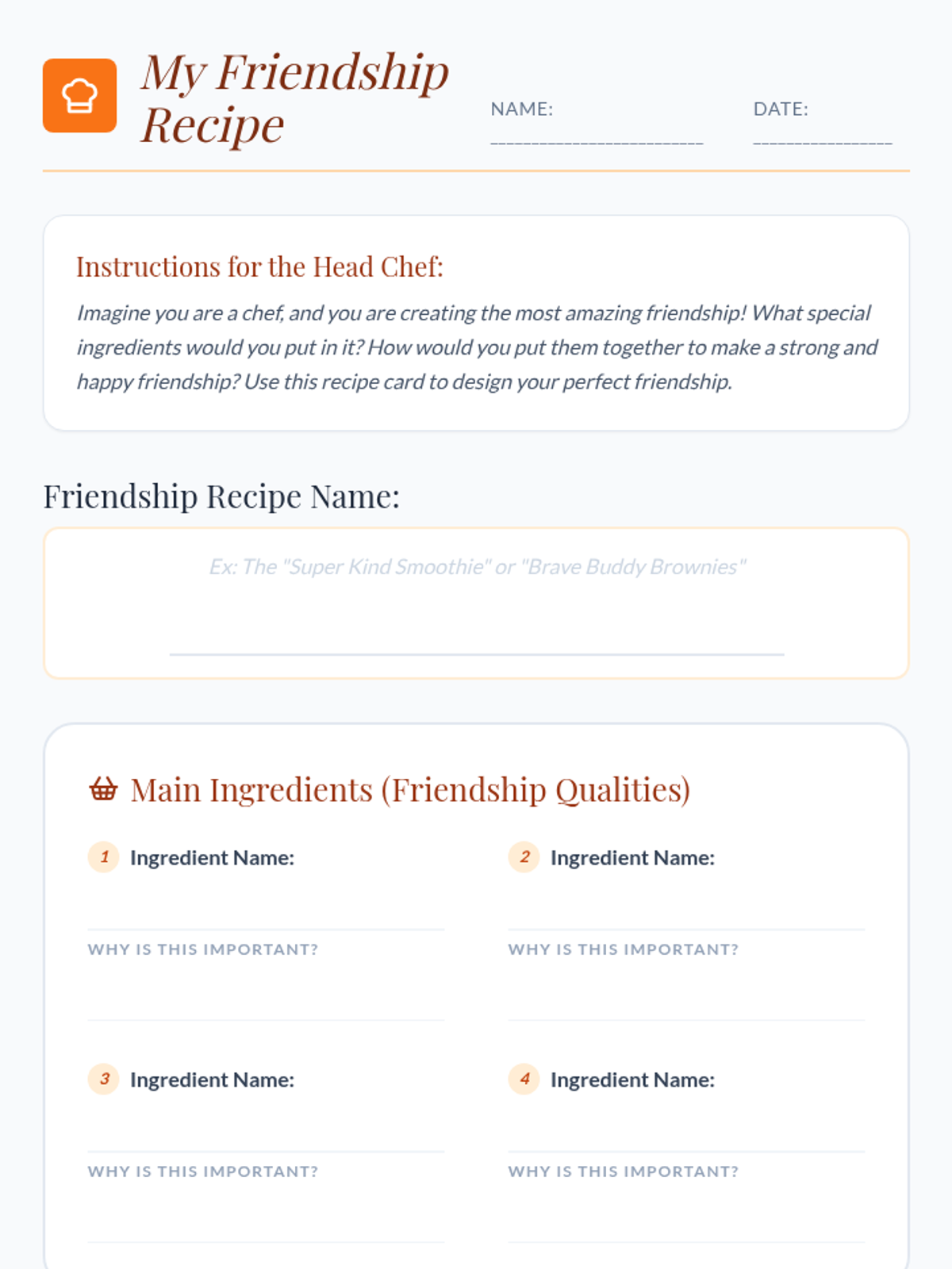 A creative, chef-themed lesson for 3rd graders to identify and practice key relationship skills by 'cooking up' their ideal friendship recipe.