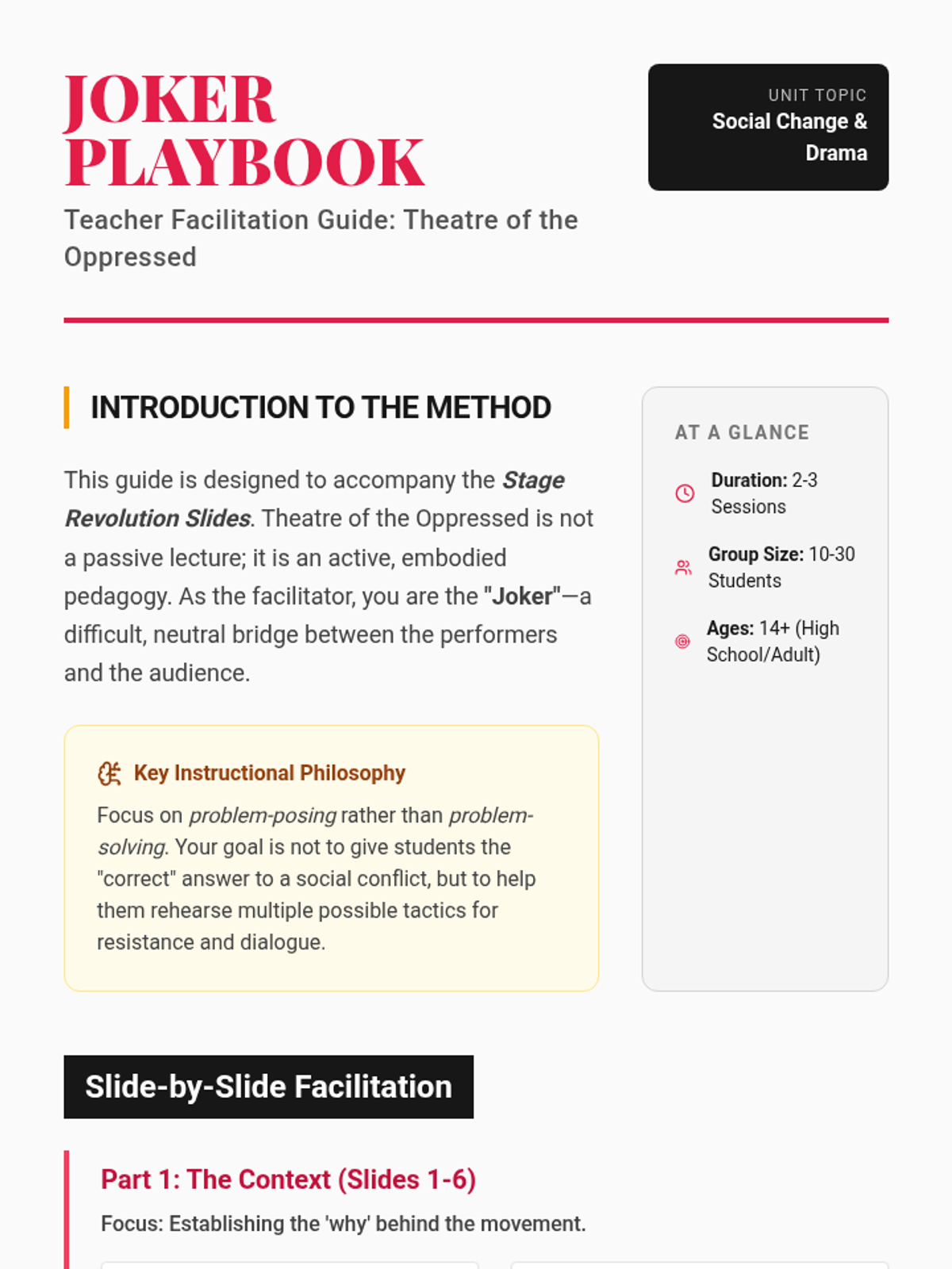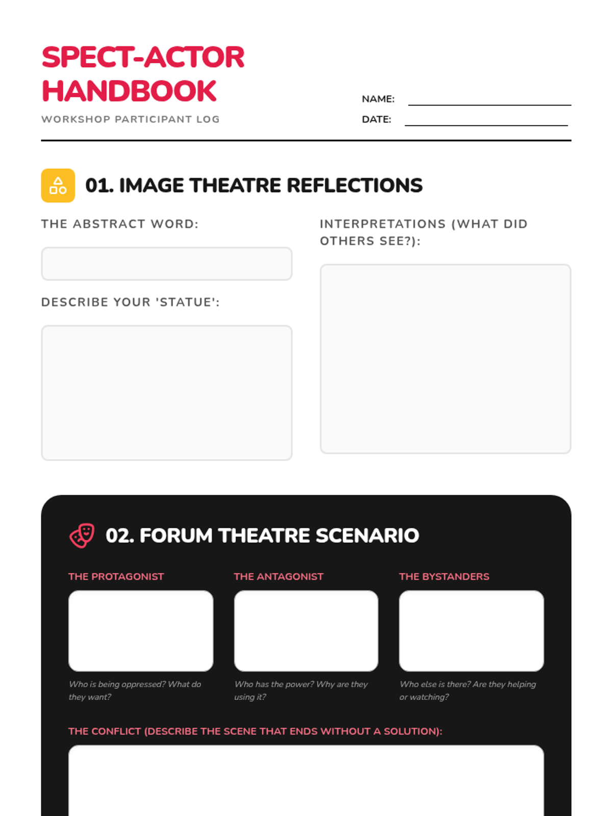 Deep dive into Image Theatre techniques, using the body as a language to explore internal and external oppressions.