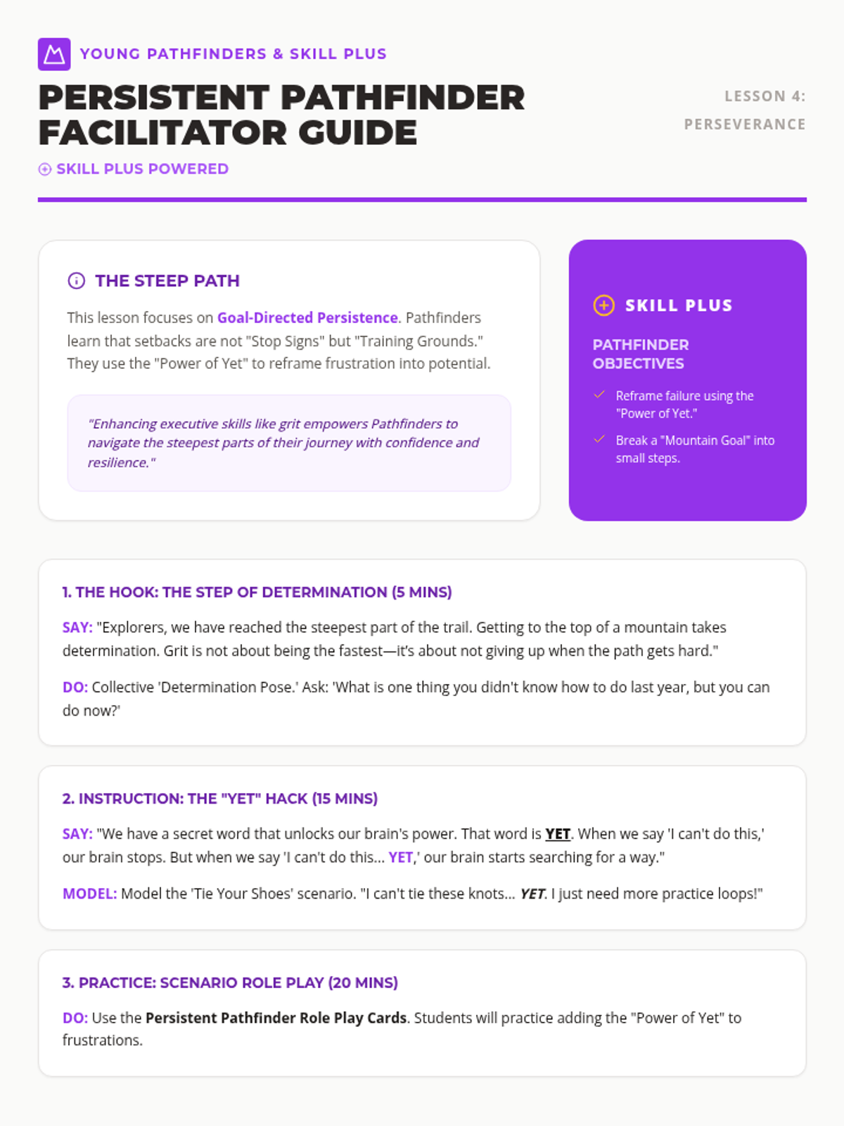 An introductory lesson to the Young Pathfinders Life Skills Program, providing parents and students with a clear roadmap of the social and emotional journey ahead, powered by Skill Plus.
