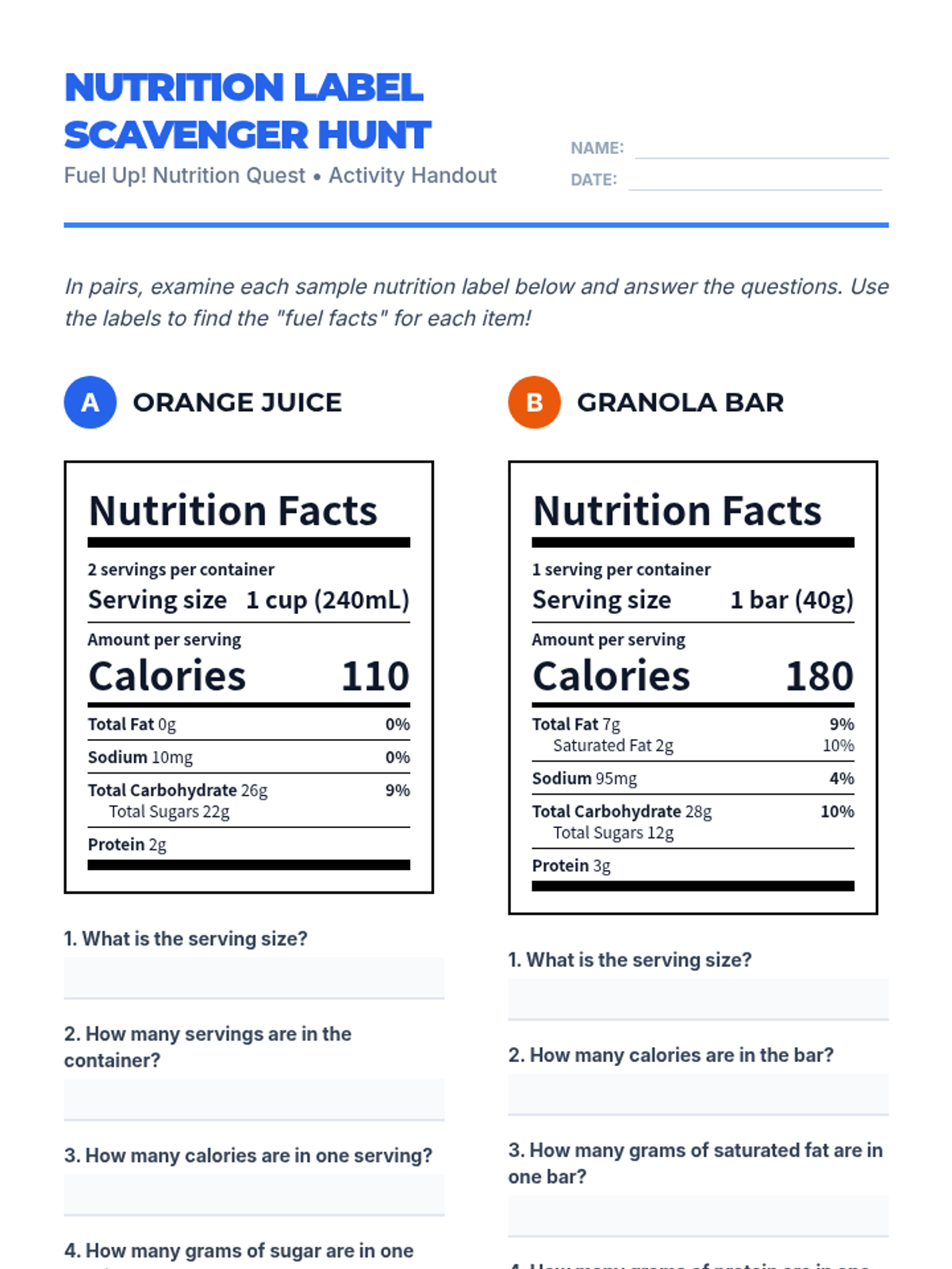 A hands-on lesson where students become 'Label Detectives' to decode nutrition facts, compare products, and make informed healthy eating choices.
