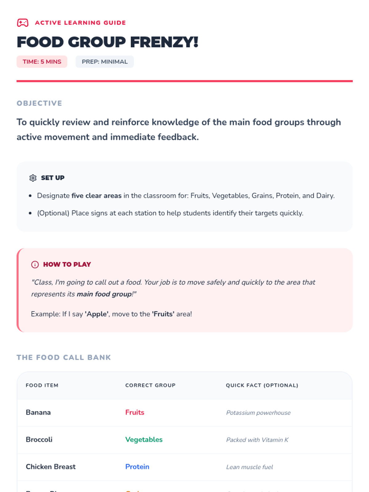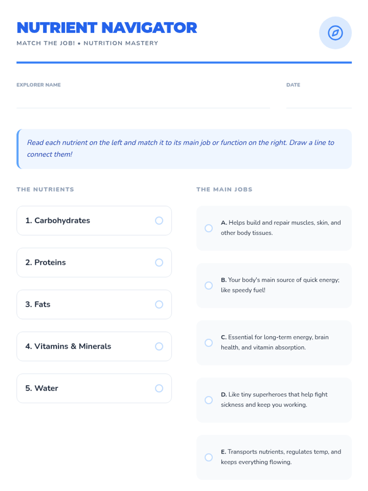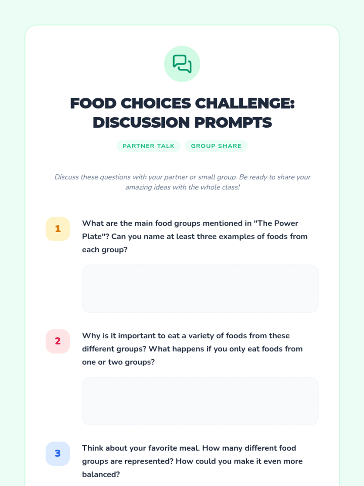 This interactive lesson introduces 6th-grade students to the fundamentals of nutrition, focusing on essential nutrients, balanced meals using the 'Power Plate' concept, and making healthy choices to energize their bodies.