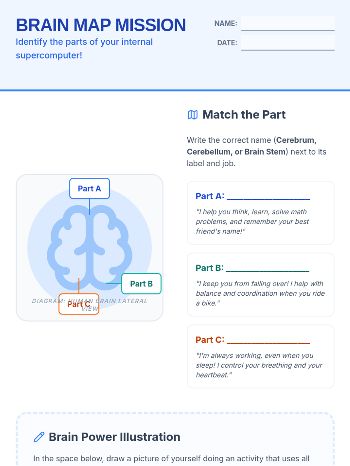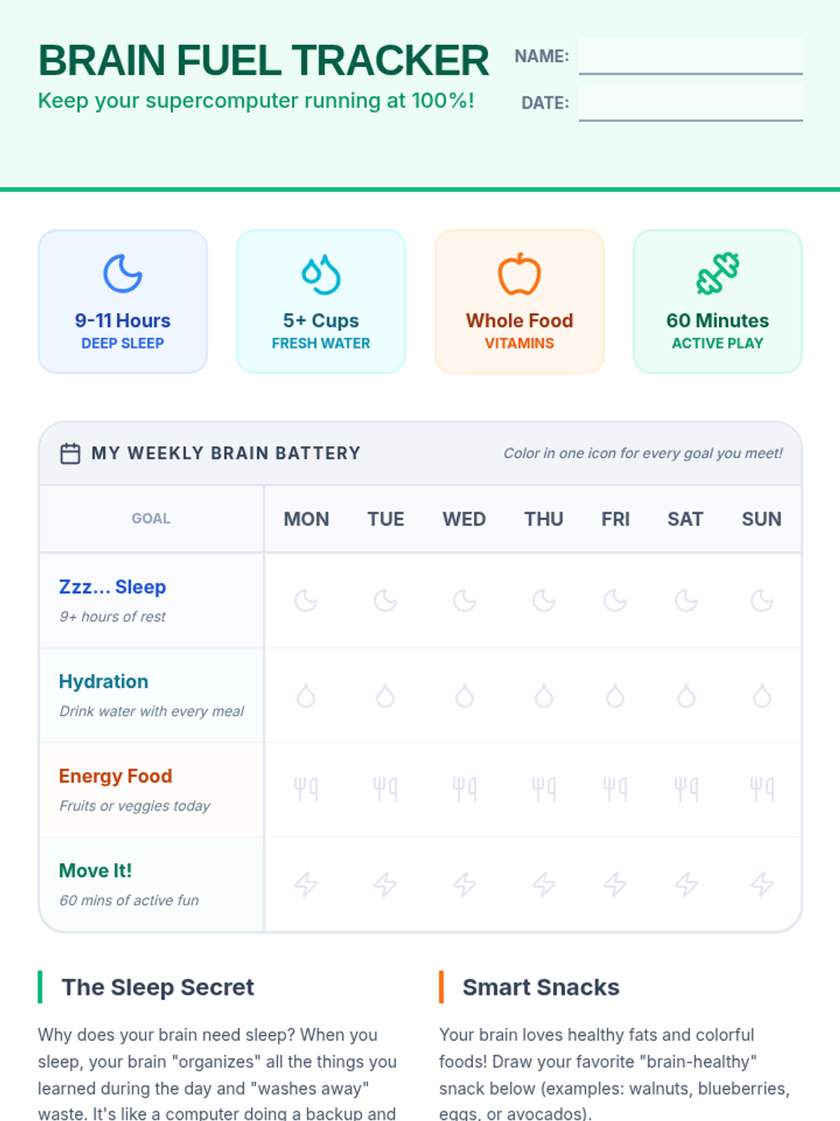 A series of interactive materials teaching elementary students about how their brain works, how to keep it healthy through nutrition and sleep, and how to protect it during physical activities.