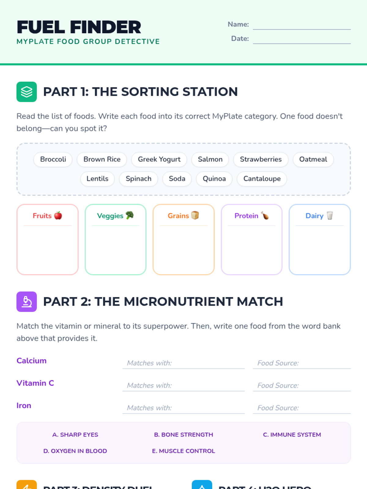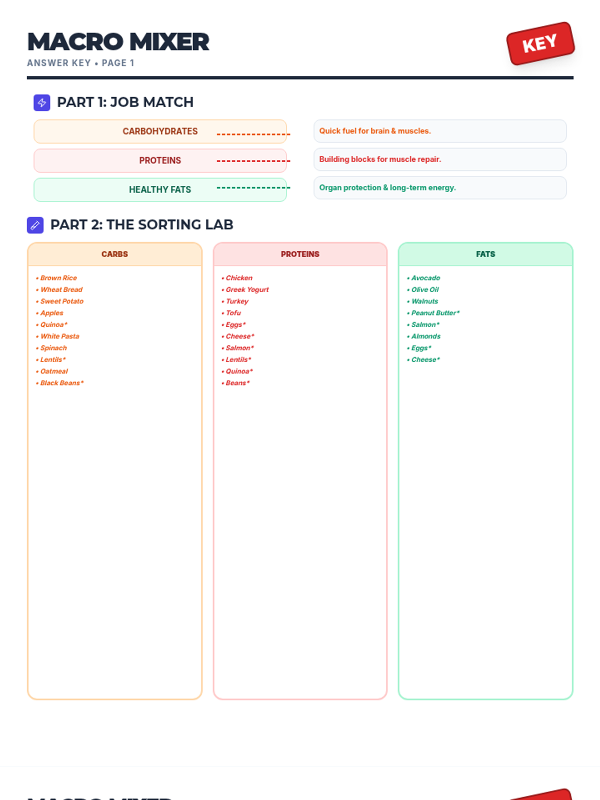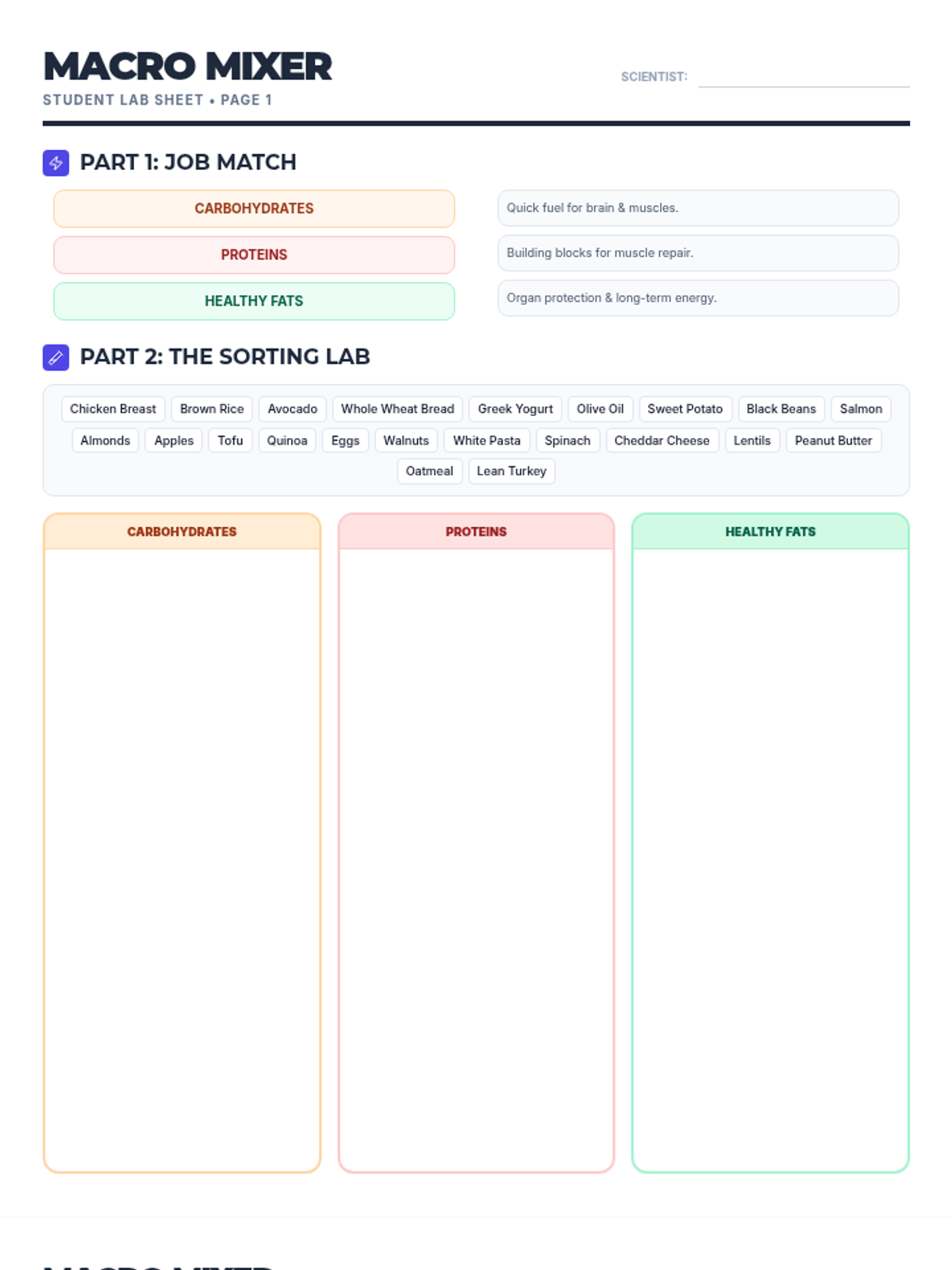 This lesson explores the three primary macronutrients—carbohydrates, proteins, and fats. Students will discover how these 'big nutrients' provide energy and support vital body functions through engaging visuals and a hands-on meal-building activity.