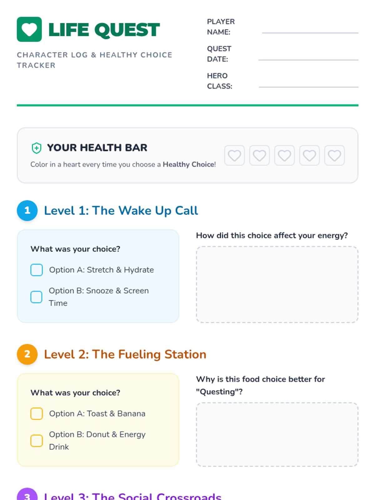 A dynamic station-based lesson exploring the five food groups, nutrition labels, macronutrients, and portion control for 6th-grade students. Students rotate through hands-on activities to build a comprehensive understanding of how to fuel their bodies effectively.