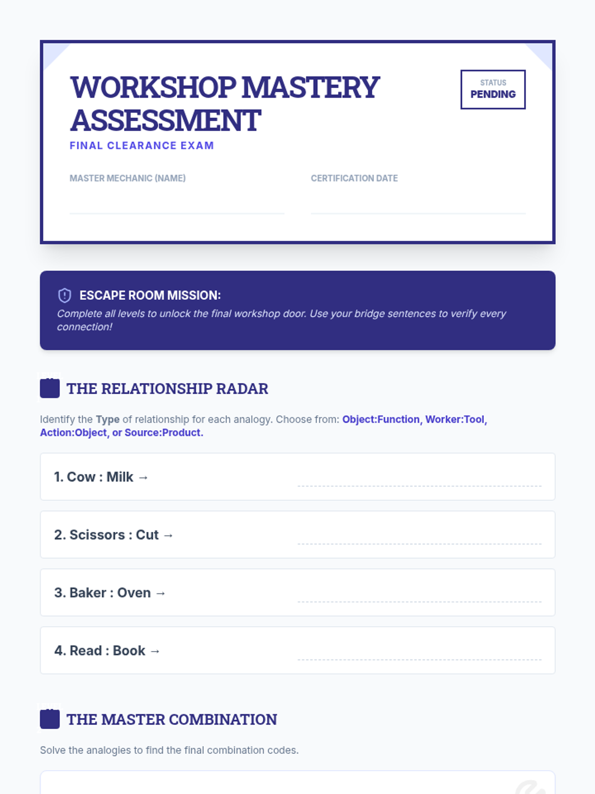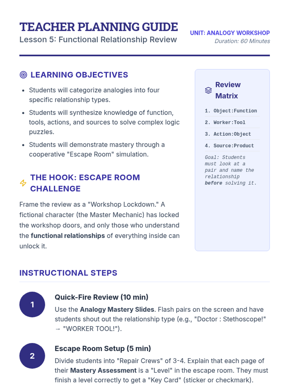 A cumulative review where students synthesize all functional relationship types through an analogy-based escape room challenge.