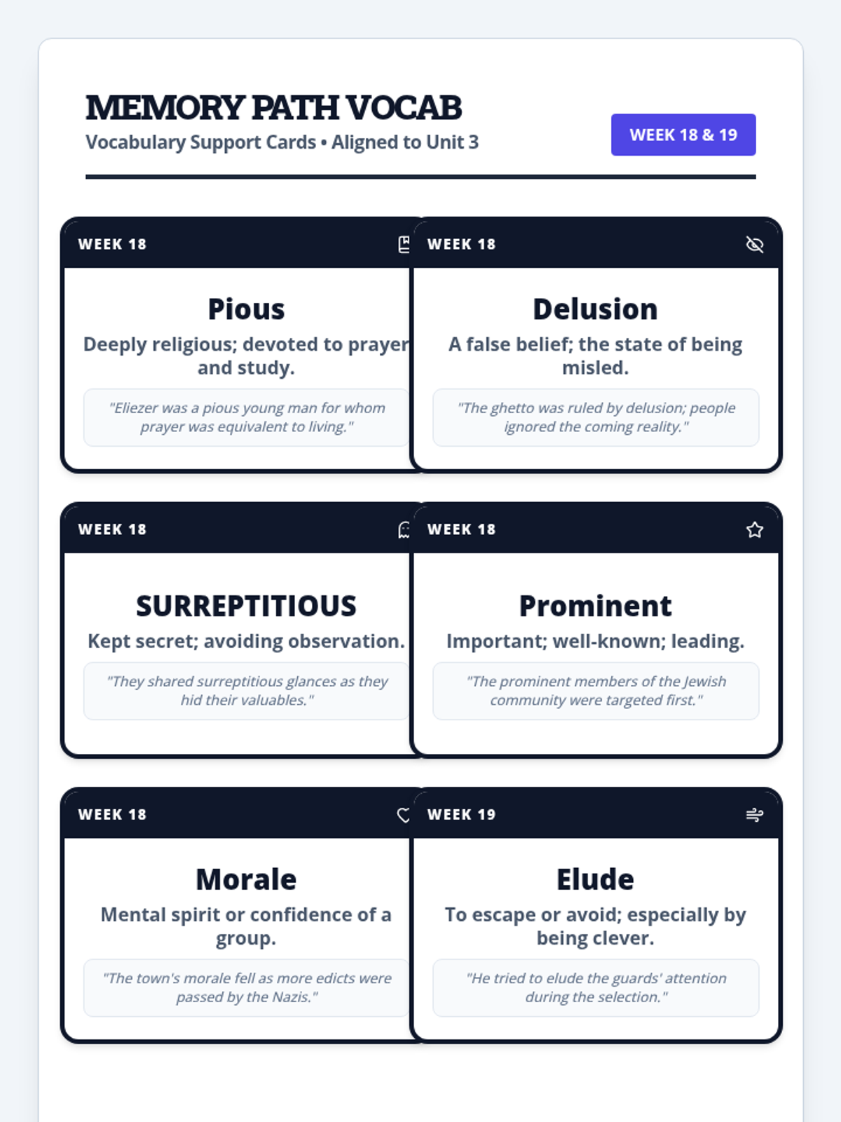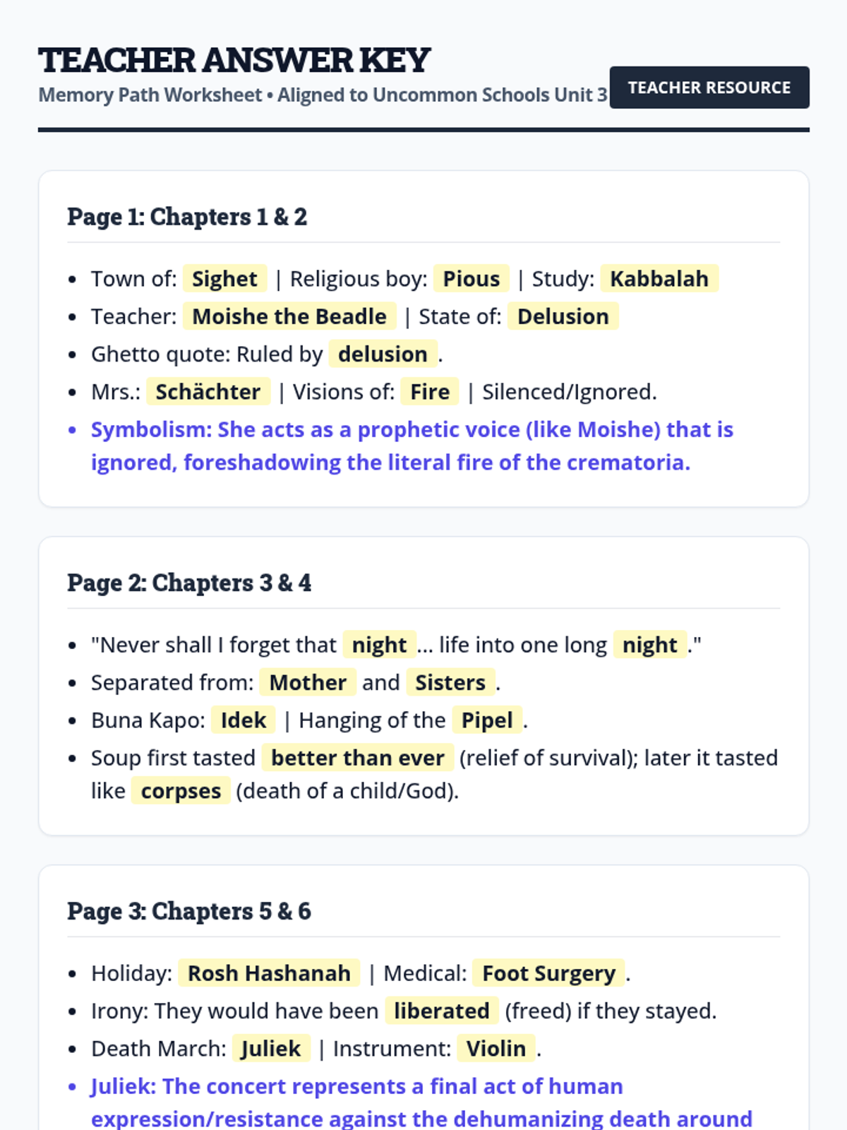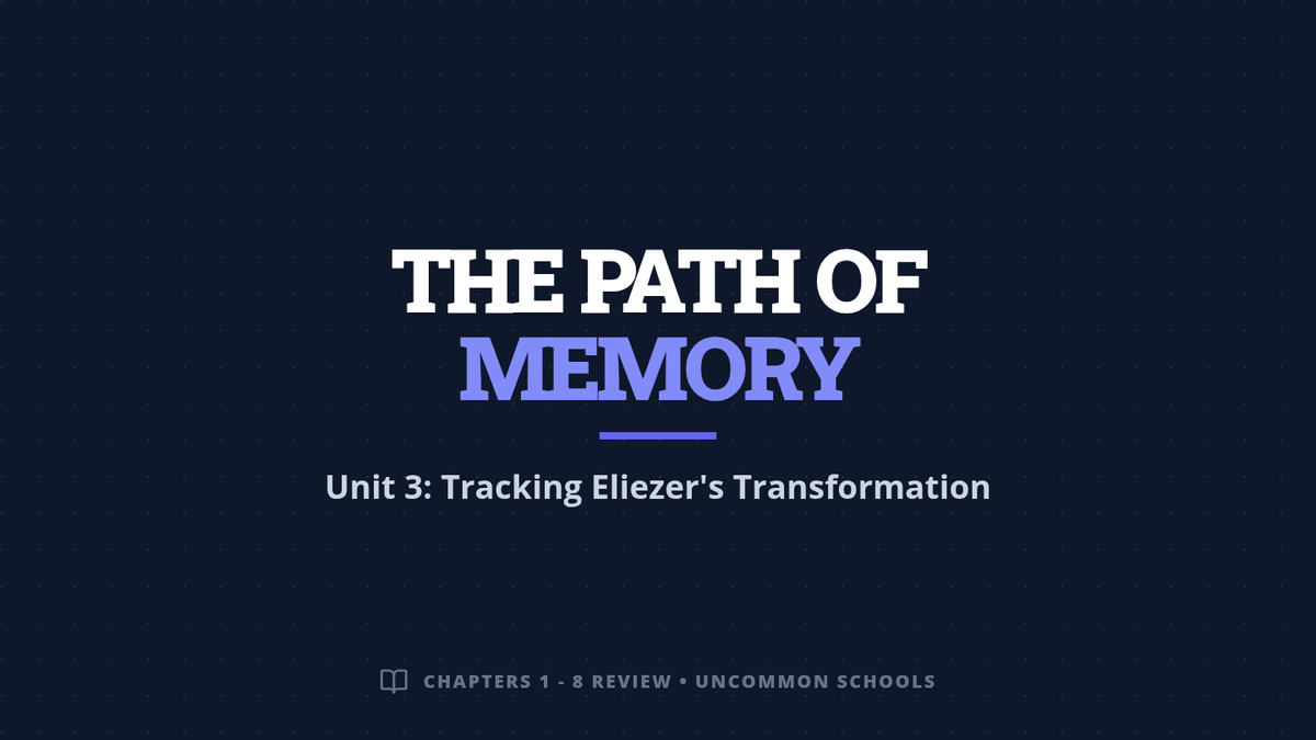 A specialized support lesson for students reading 'Night' by Elie Wiesel, focusing on memory retrieval, chronological tracking, and visual mapping of key events.