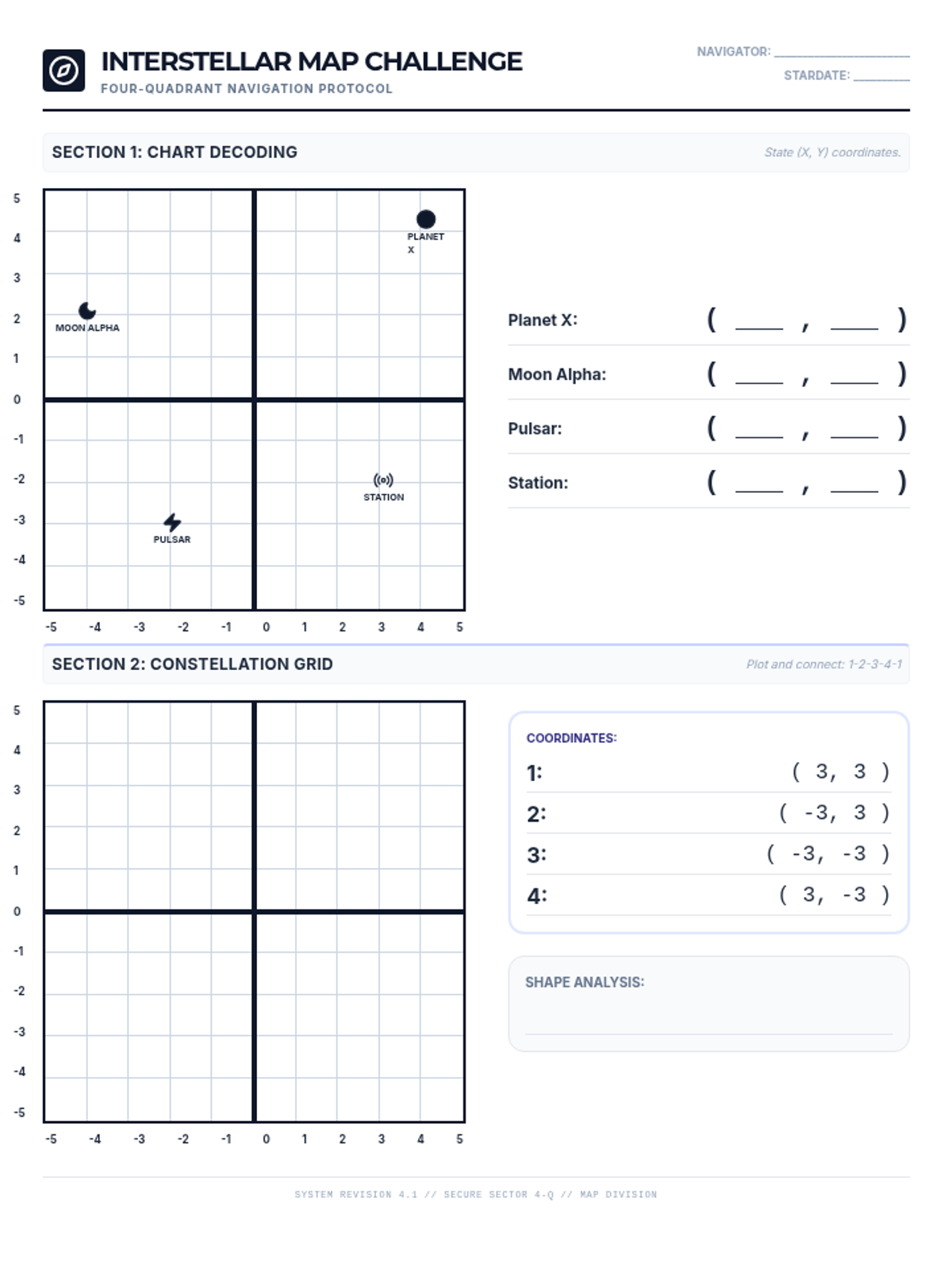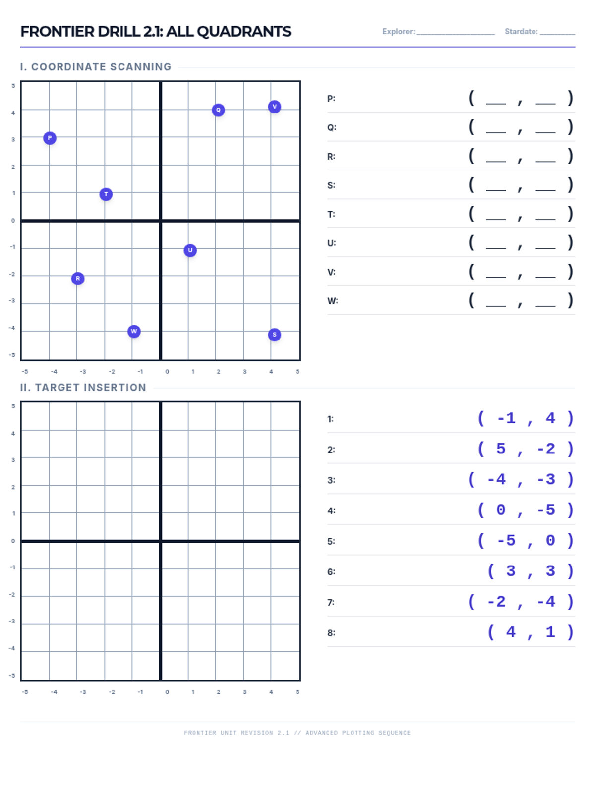 Expanding the coordinate plane to all four quadrants, introducing negative numbers and the origin as the starting point.