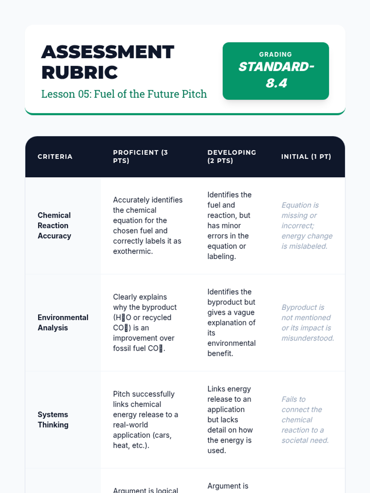 Energy Pitch Rubric