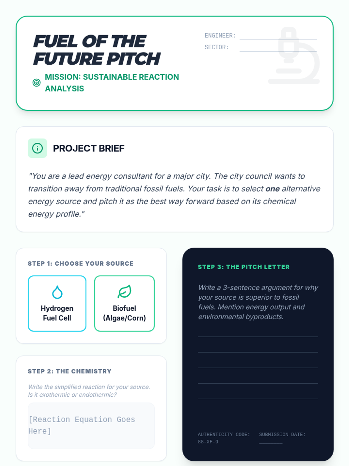 Fuel of the Future Pitch Worksheet