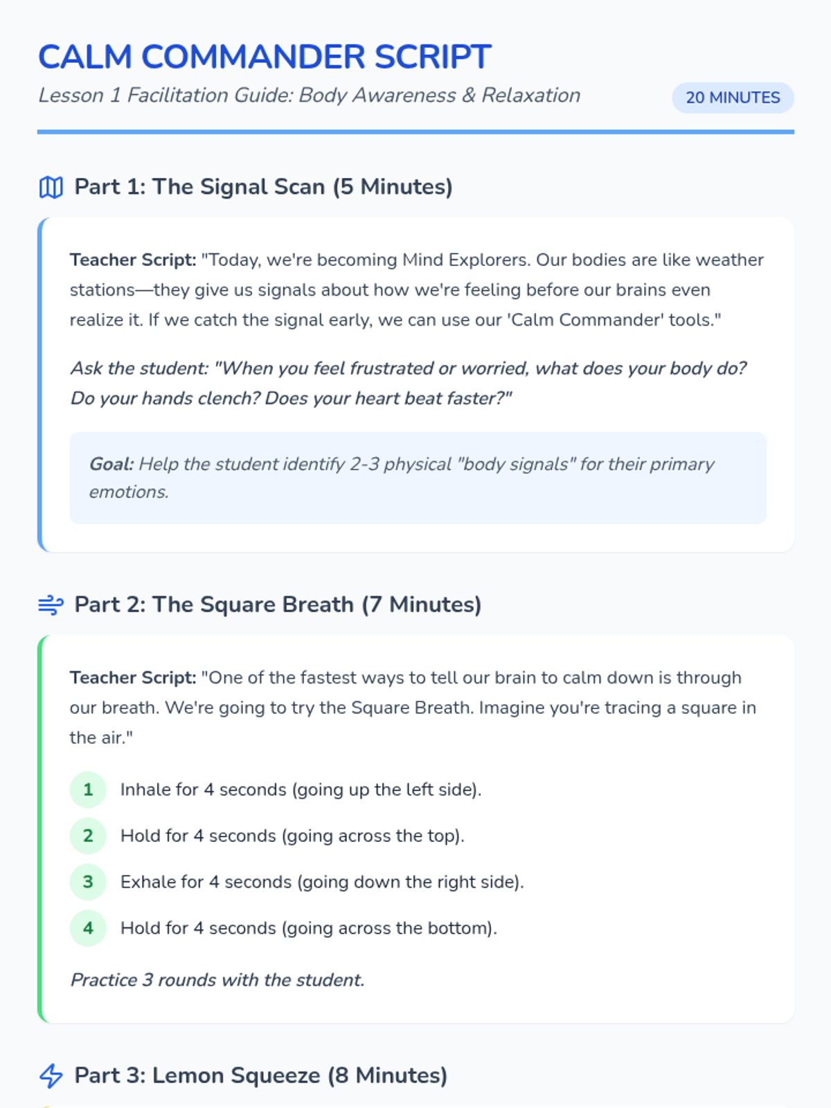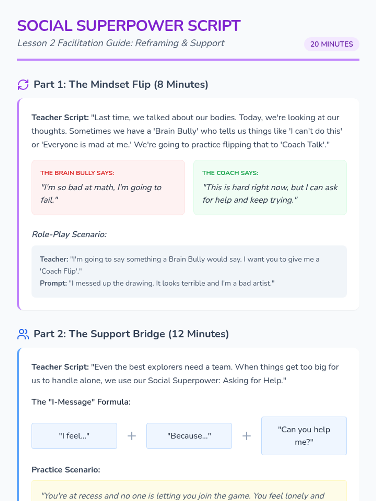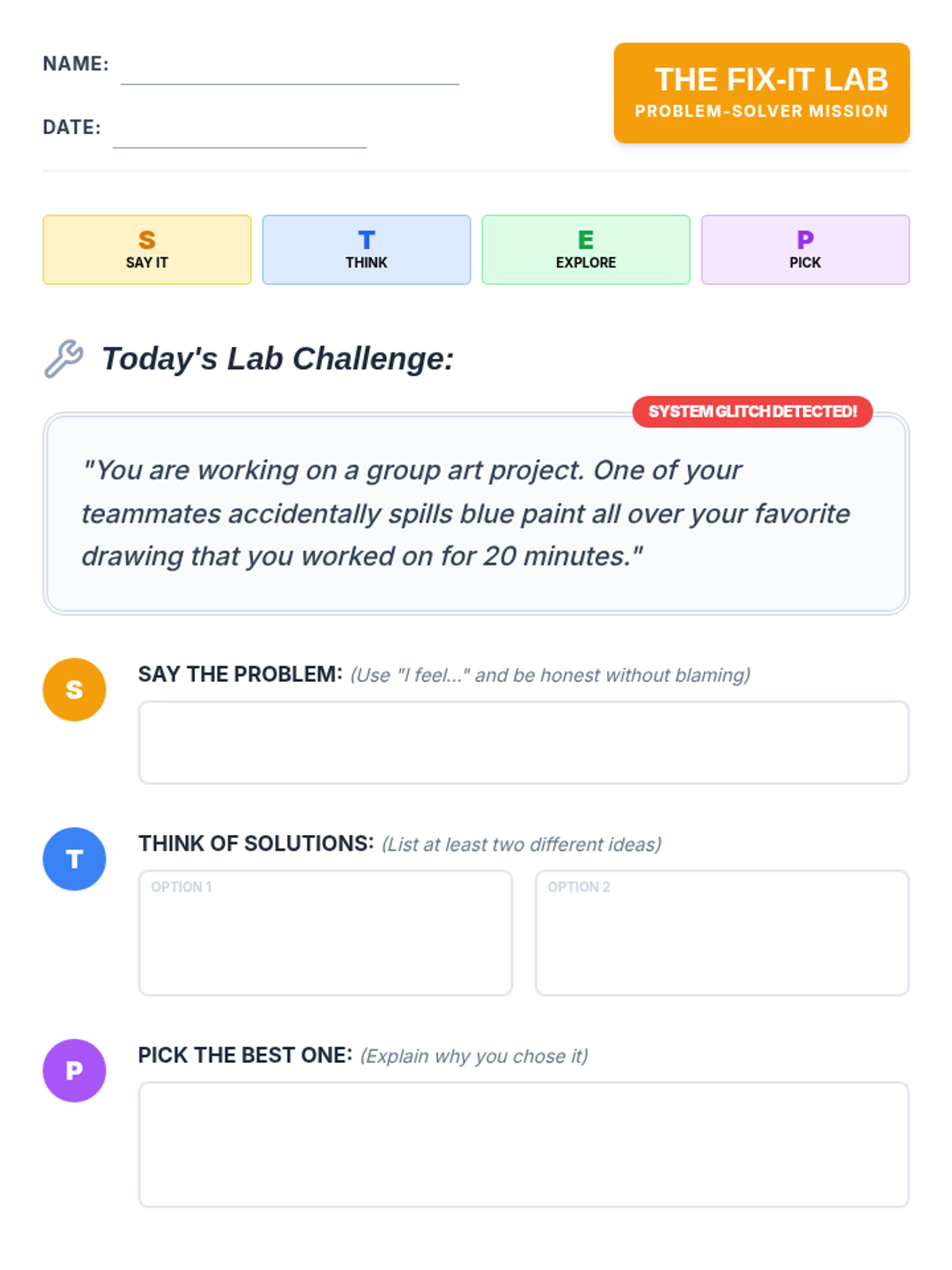 A comprehensive lesson on active listening that teaches students to identify communication barriers and practice empathy through perspective-taking. Students learn to distinguish between the 'signal' (meaning) and 'noise' (distractions) in conversations.