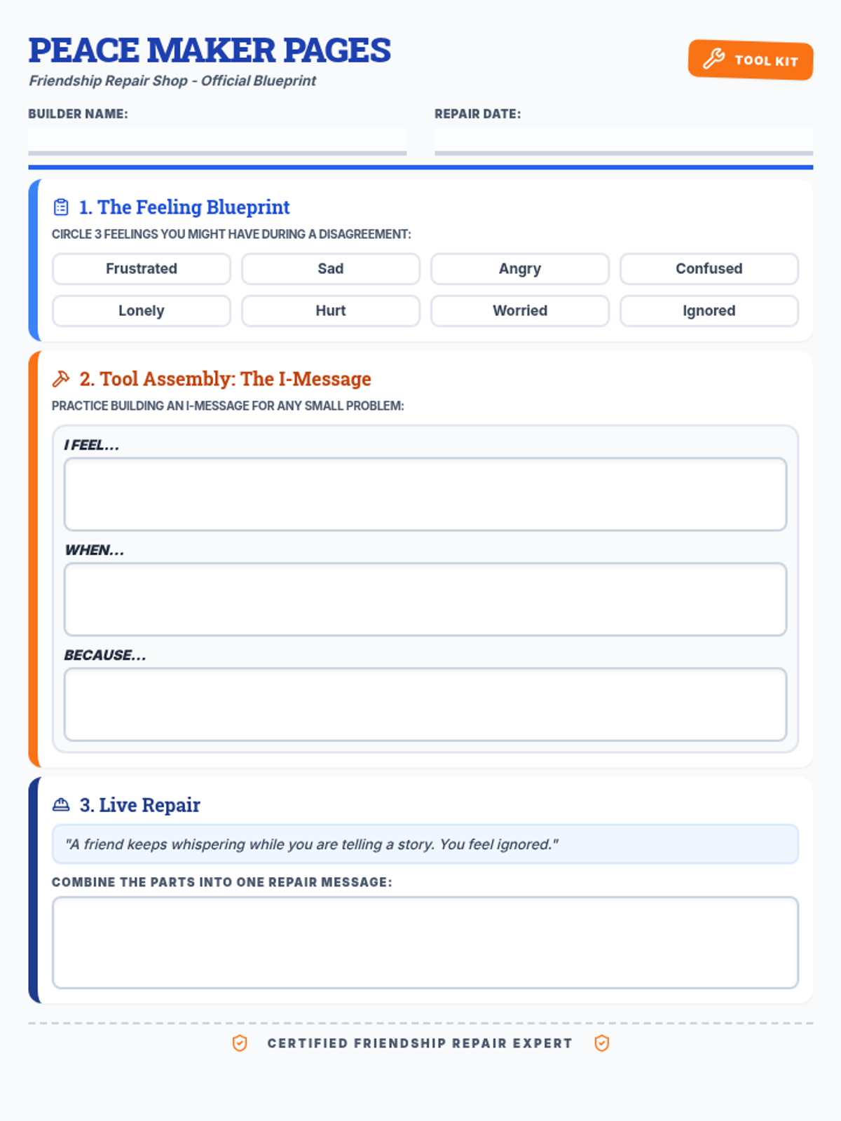 A 30-minute lesson for 3rd-5th graders on maintaining friendships and resolving conflicts using the I-Message technique. Students will identify friendship qualities and practice healthy communication tools.