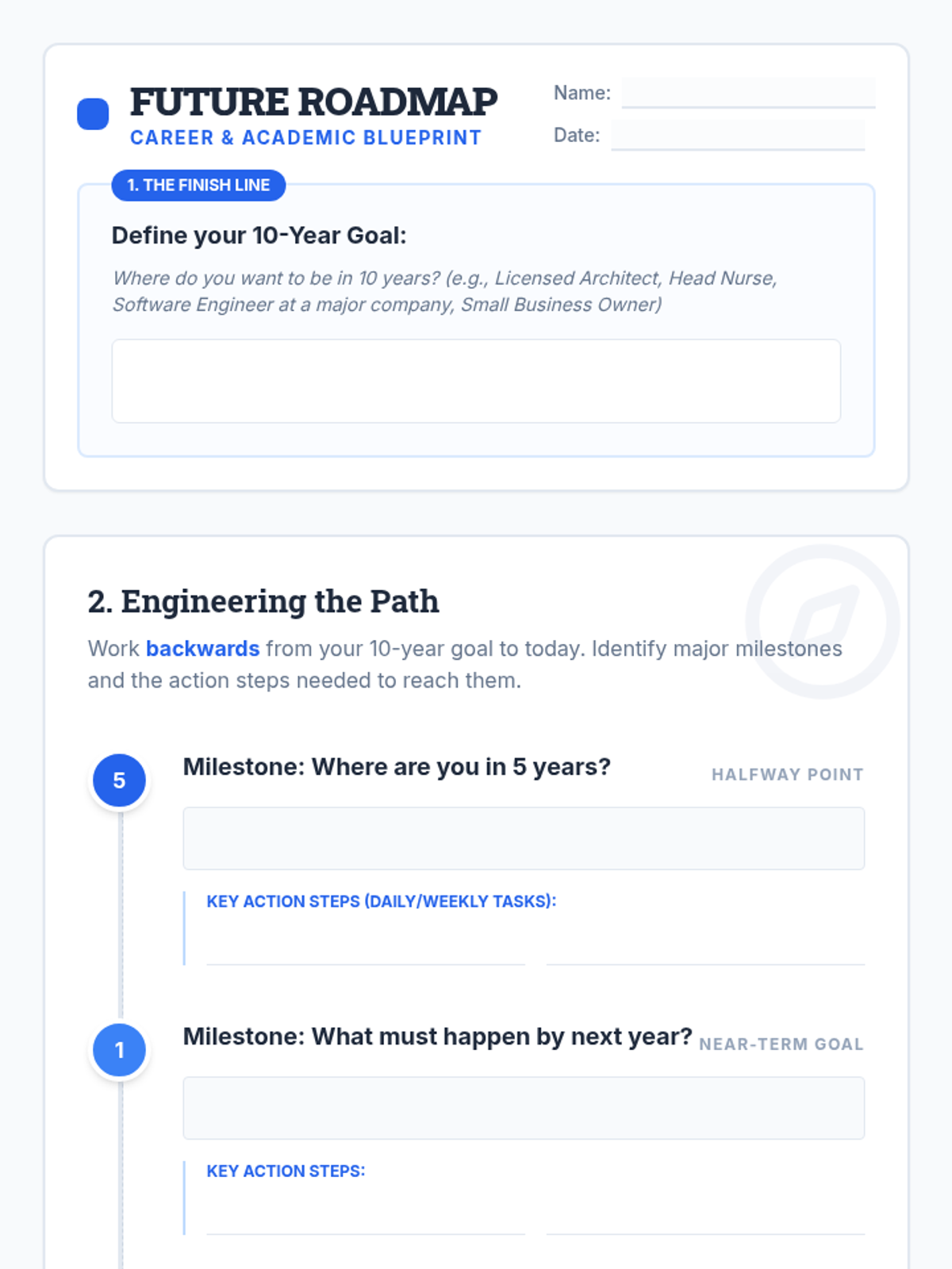 Visualizes the 'Ripple Effect' of choices on graduation timelines and future earnings. Students analyze case studies of peers navigating high-stakes decisions to understand the compounding nature of consistency.