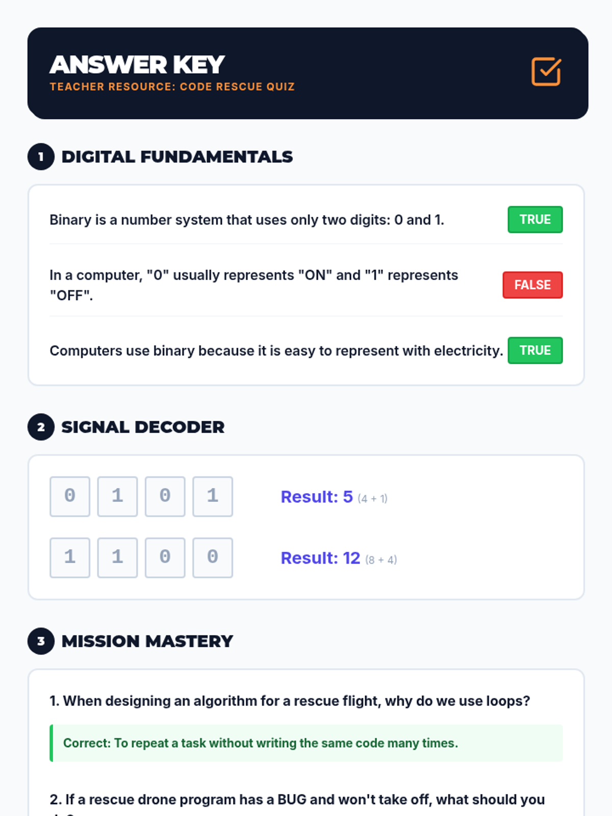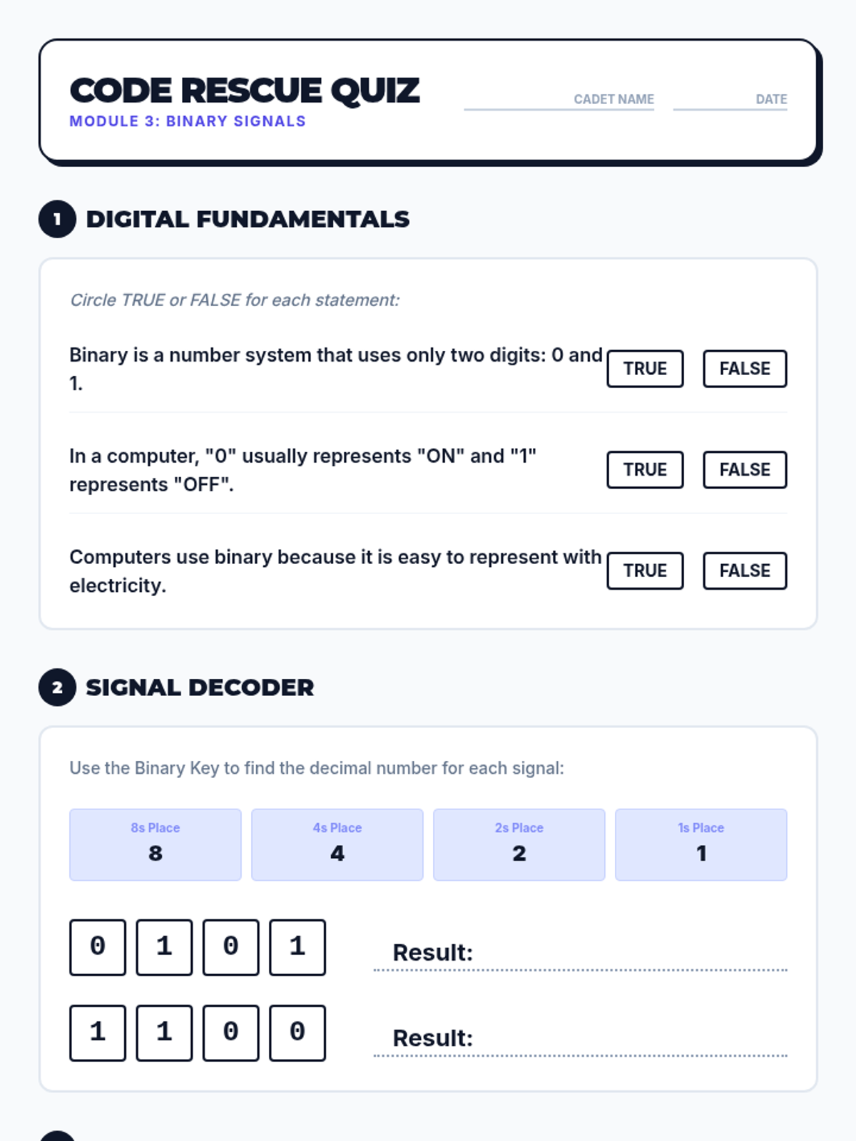 Understanding how digital information is sent via binary code and assessing student knowledge of these concepts.