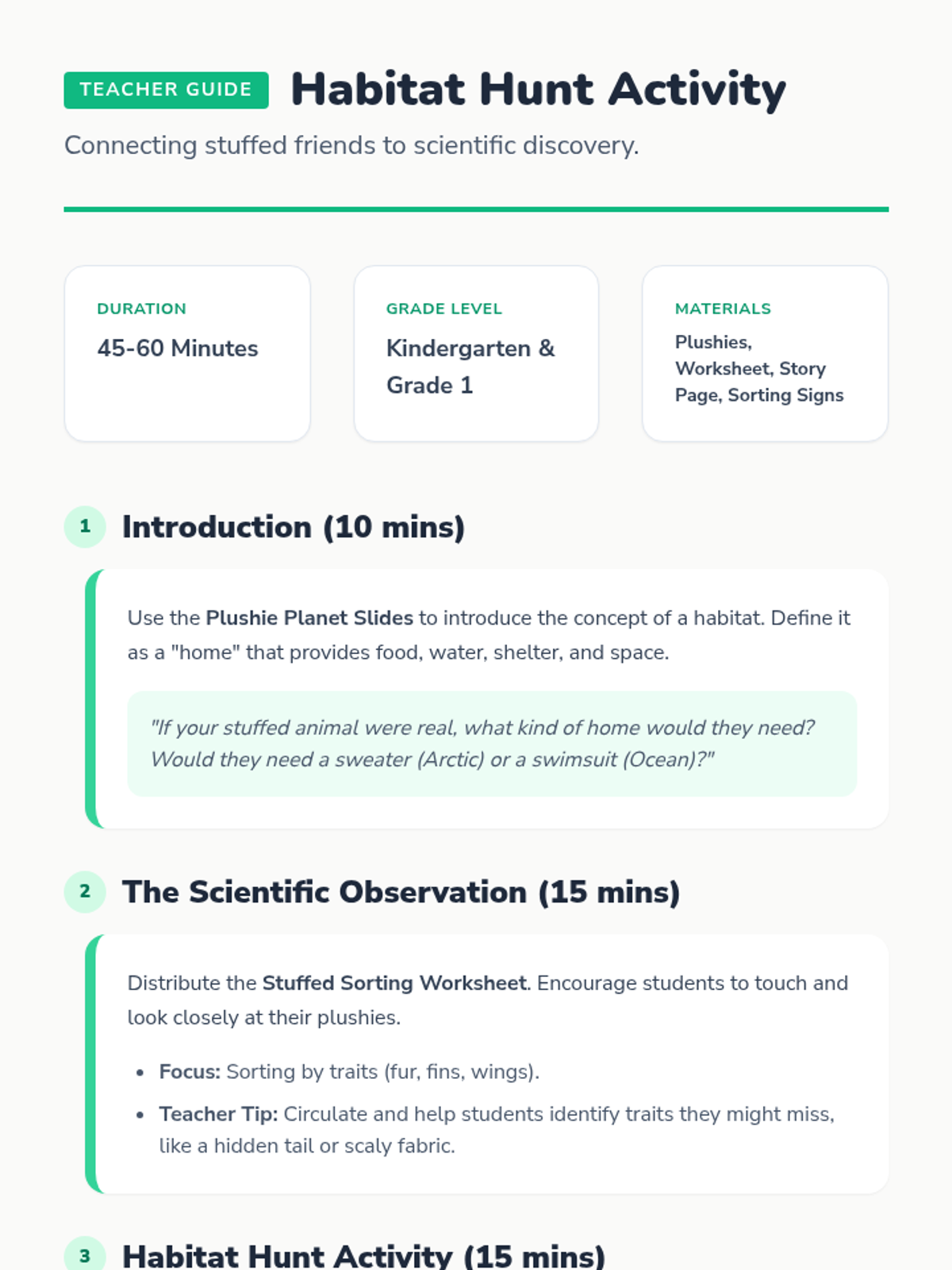 A playful exploration of animal habitats and characteristics using students' own stuffed animals to bridge the gap between imagination and scientific observation.