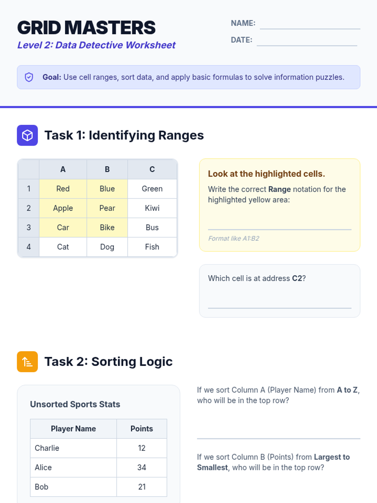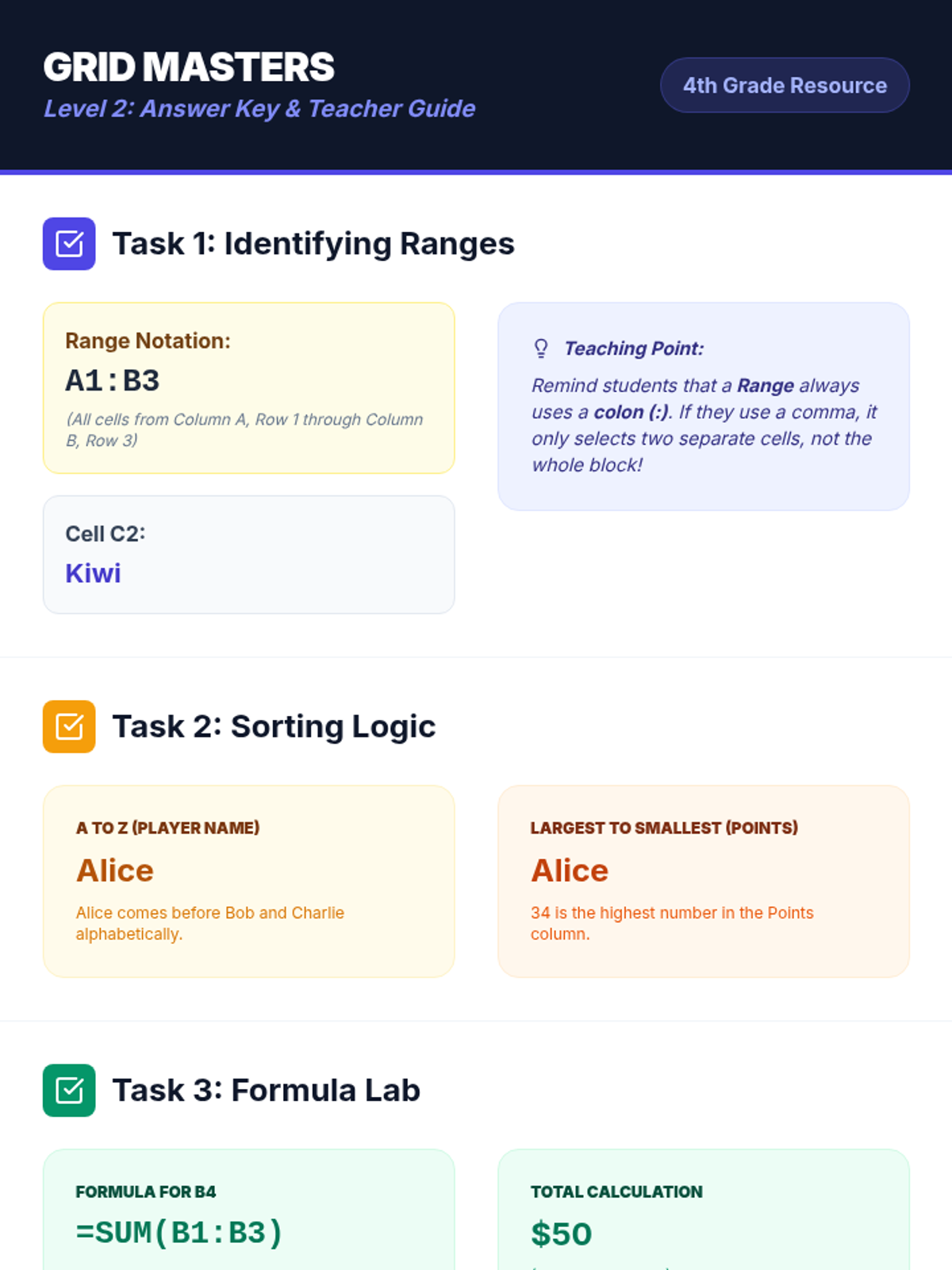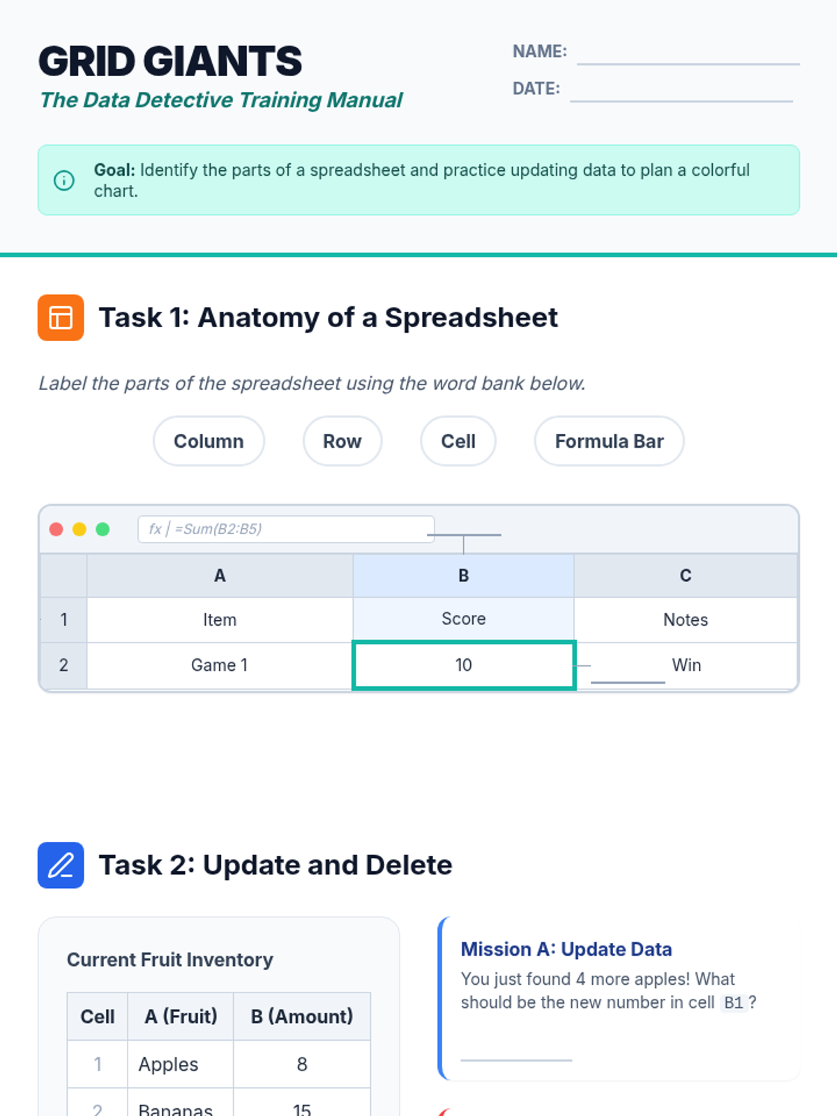 This lesson advances 4th-grade students' spreadsheet skills, moving beyond basic data entry to explore sorting, formatting, and the power of simple formulas.